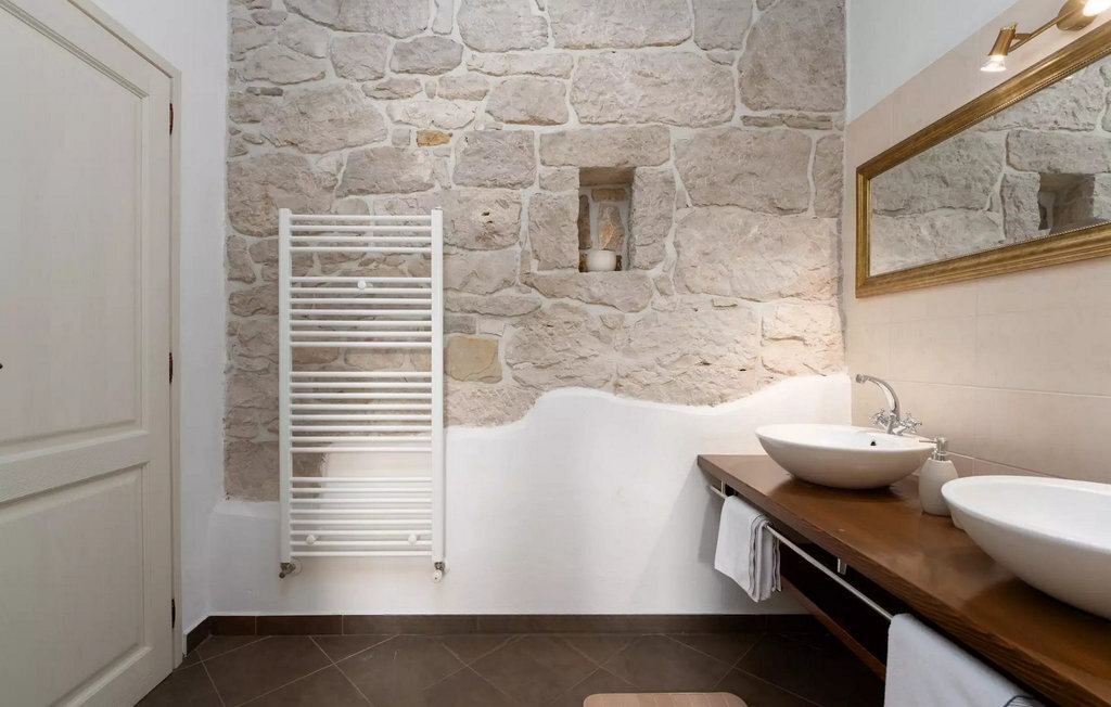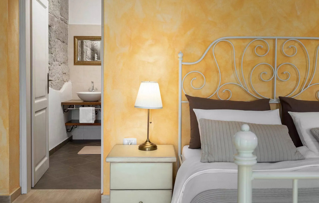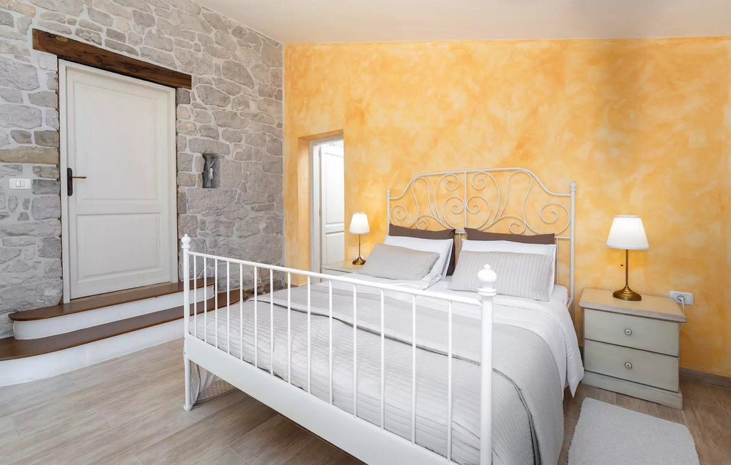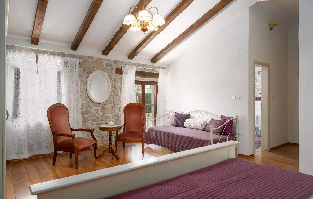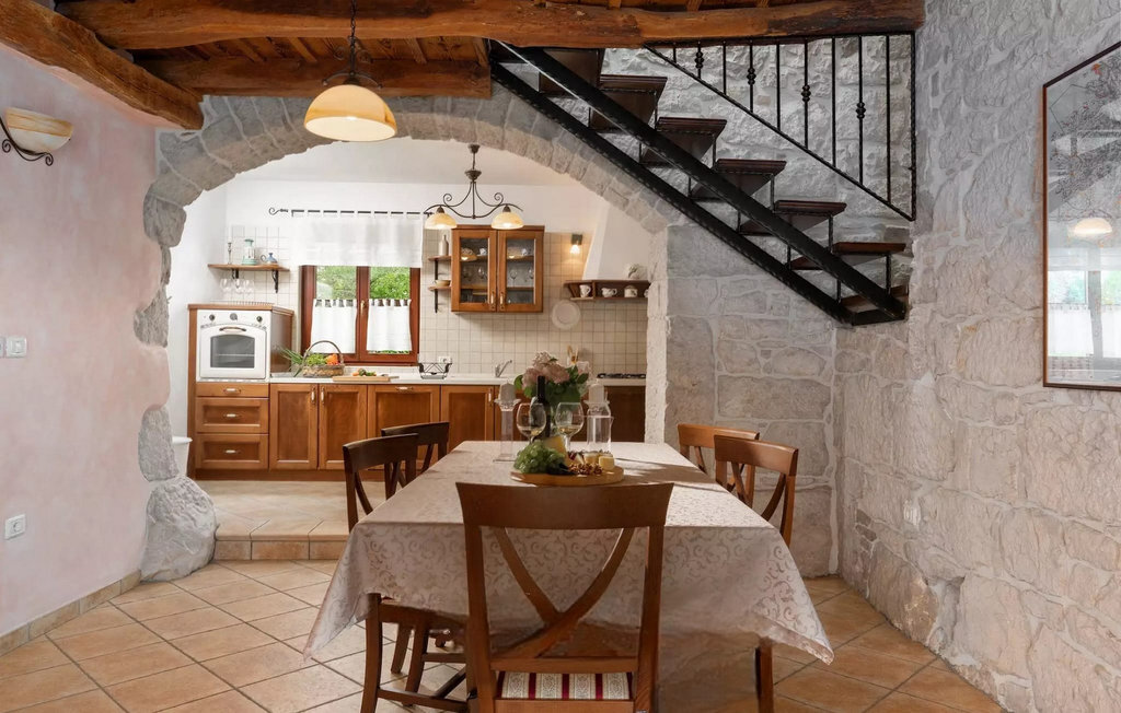 La teinte chaude du bois contrastant avec la pierre claire et l'aménagement confortable, composé en partie de meubles anciens, créent une belle atmosphère qui invite à la détente. Jusqu'à 8 personnes peuvent se détendre dans un total de trois chambres à coucher confortables. Le salon et la salle à manger ouverts séduisent par leur élégance sobre. Dans la cuisine entièrement équipée, vous pouvez préparer de bons petits plats comme à la maison. Prenez vos repas dans la spacieuse salle à manger avec accès direct à la terrasse couverte avec espace lounge.
