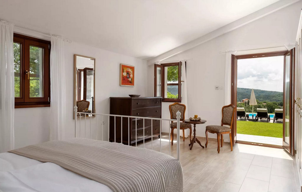 L'espace extérieur de la villa offre beaucoup de place pour se détendre. Rafraîchissez-vous dans la piscine privée et profitez du grand jardin. La Villa Garibaldi est un refuge parfait pour tous ceux qui souhaitent échapper à l'agitation de la vie quotidienne.La villa est située dans l'ancienne ville de Buzet, au nord de l'Istrie, près de la frontière avec la Slovénie. Son centre-ville médiéval est situé sur une colline surplombant la vallée fertile de la plus longue rivière d'Istrie, la Mirna.