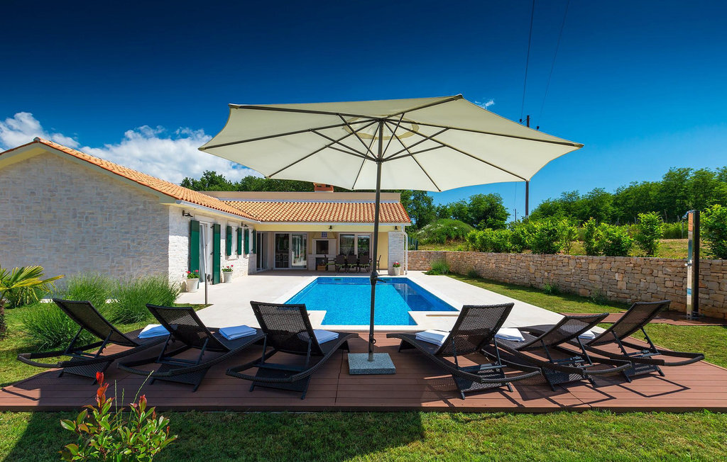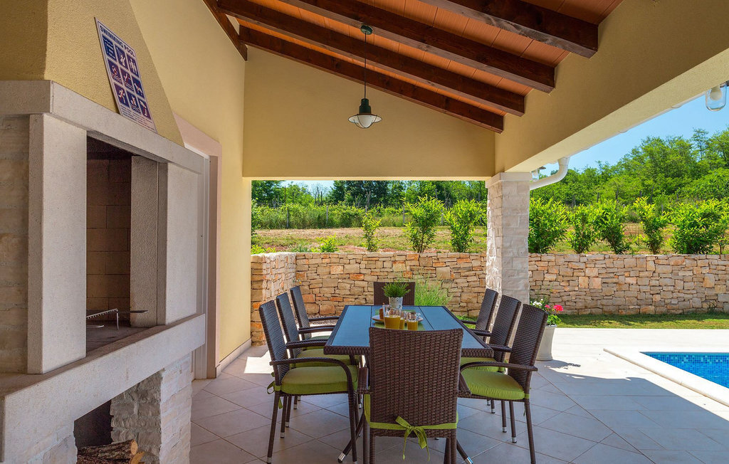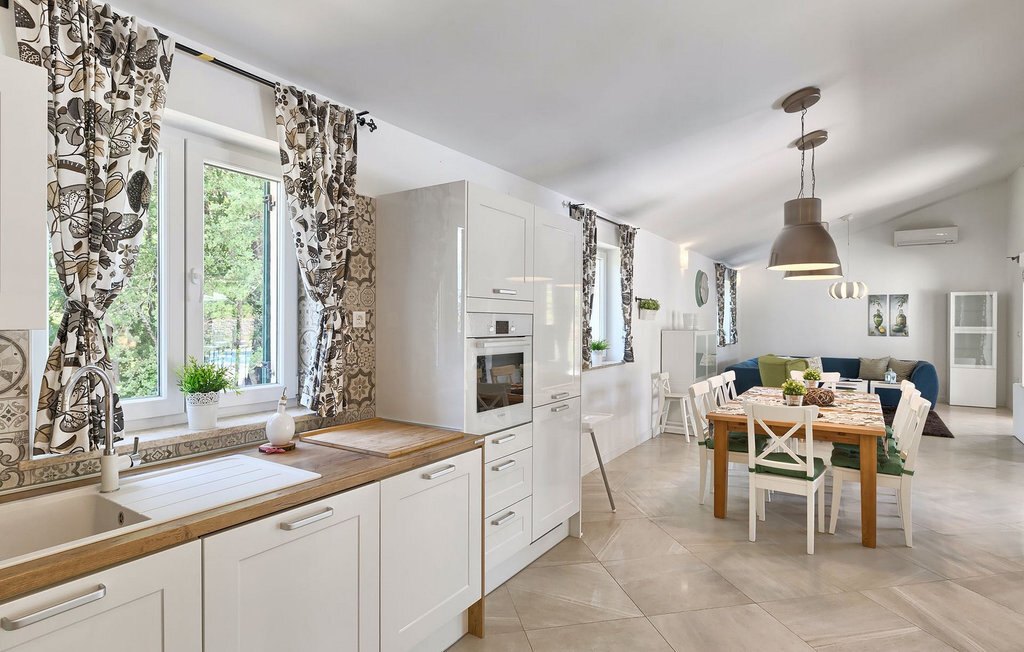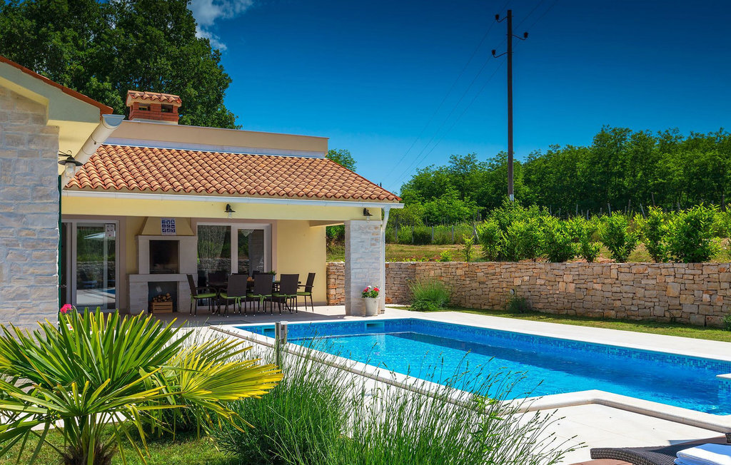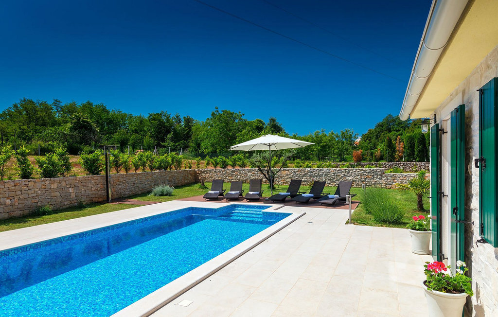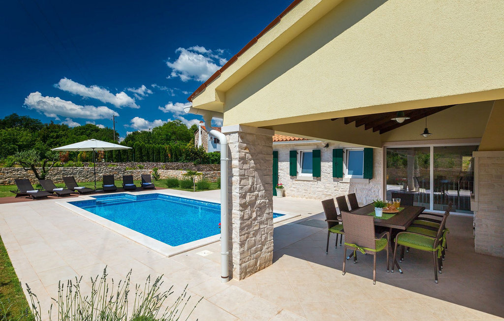 Située à l'est de l'Istrie, à une courte distance en voiture de Rabac, la villa Lucia attend votre arrivée. Cette charmante villa a été construite et aménagée pour vous permettre de passer des vacances relaxantes et paisibles dans la belle campagne istrienne. La villa dispose de 4 chambres à coucher et de 4 salles de bain en suite. Cette villa entièrement climatisée dispose d'une télévision et de 2 récepteurs SAT, d'une PlayStation 3 et d'une cuisine entièrement équipée avec coin repas. Passez vos journées dans le charmant paysage istrien en prenant le soleil à côté de la piscine ou amusez-vous en jouant au baby-foot et aux fléchettes dans la villa. Pendant les mois d'avril, mai, juin, septembre ou octobre, la piscine privée dans le jardin peut être chauffée, à condition d'être annoncée à l'avance.