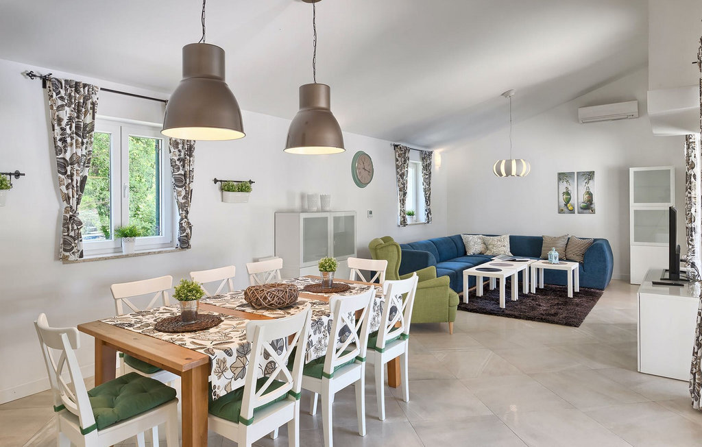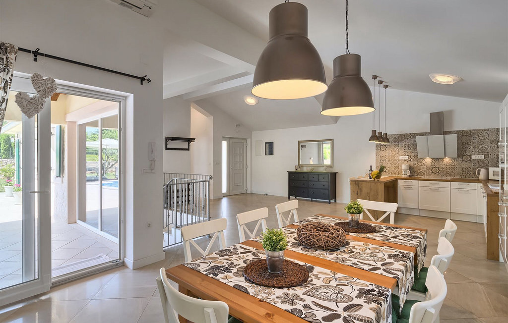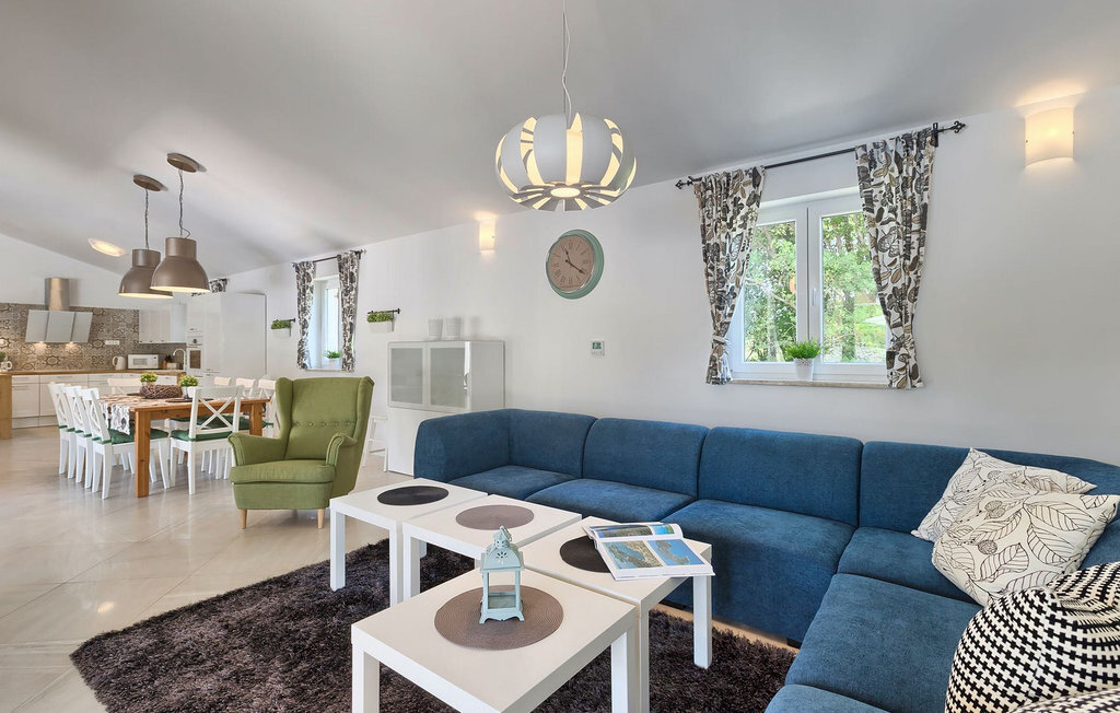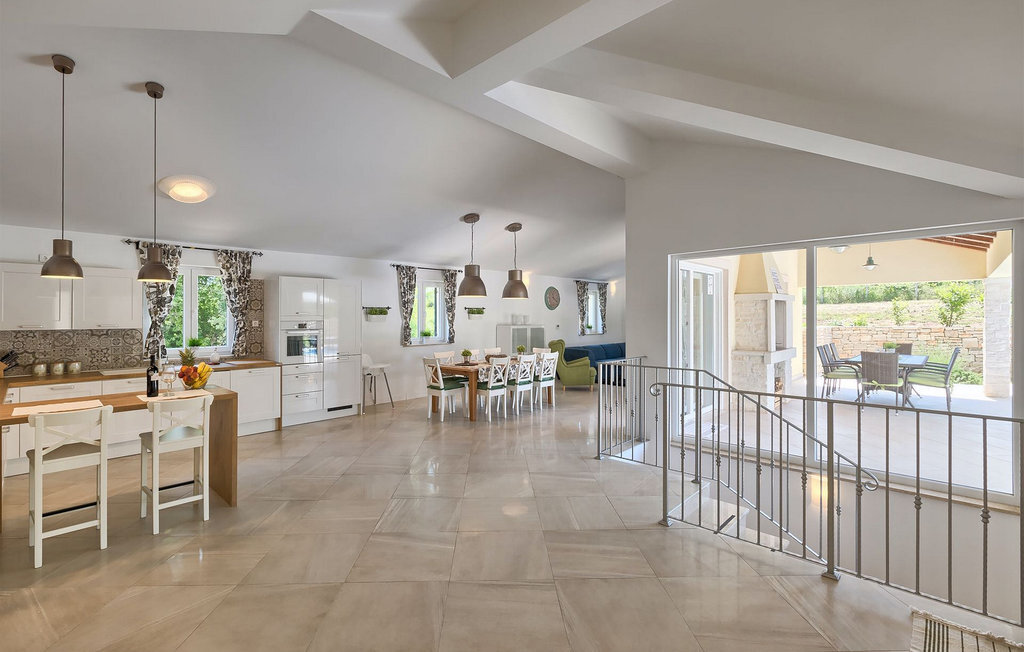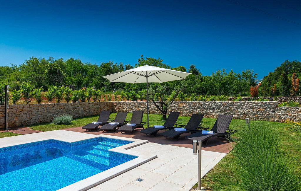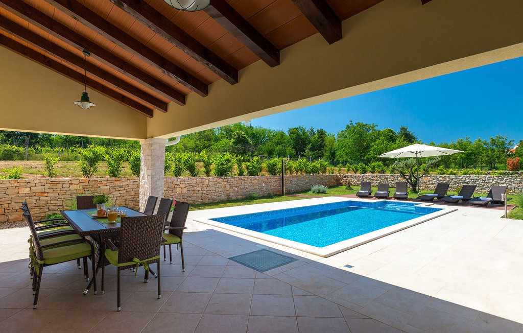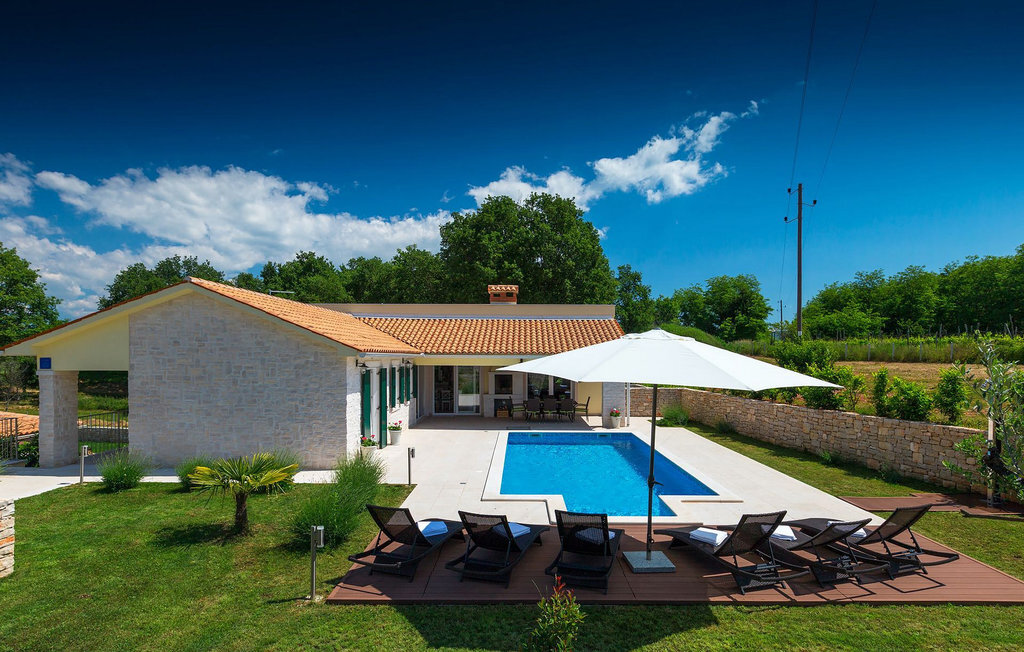 Située à l'est de l'Istrie, à une courte distance en voiture de Rabac, la villa Lucia attend votre arrivée. Cette charmante villa a été construite et aménagée pour vous permettre de passer des vacances relaxantes et paisibles dans la belle campagne istrienne. La villa dispose de 4 chambres à coucher et de 4 salles de bain en suite. Cette villa entièrement climatisée dispose d'une télévision et de 2 récepteurs SAT, d'une PlayStation 3 et d'une cuisine entièrement équipée avec coin repas. Passez vos journées dans le charmant paysage istrien en prenant le soleil à côté de la piscine ou amusez-vous en jouant au baby-foot et aux fléchettes dans la villa. Pendant les mois d'avril, mai, juin, septembre ou octobre, la piscine privée dans le jardin peut être chauffée, à condition d'être annoncée à l'avance.