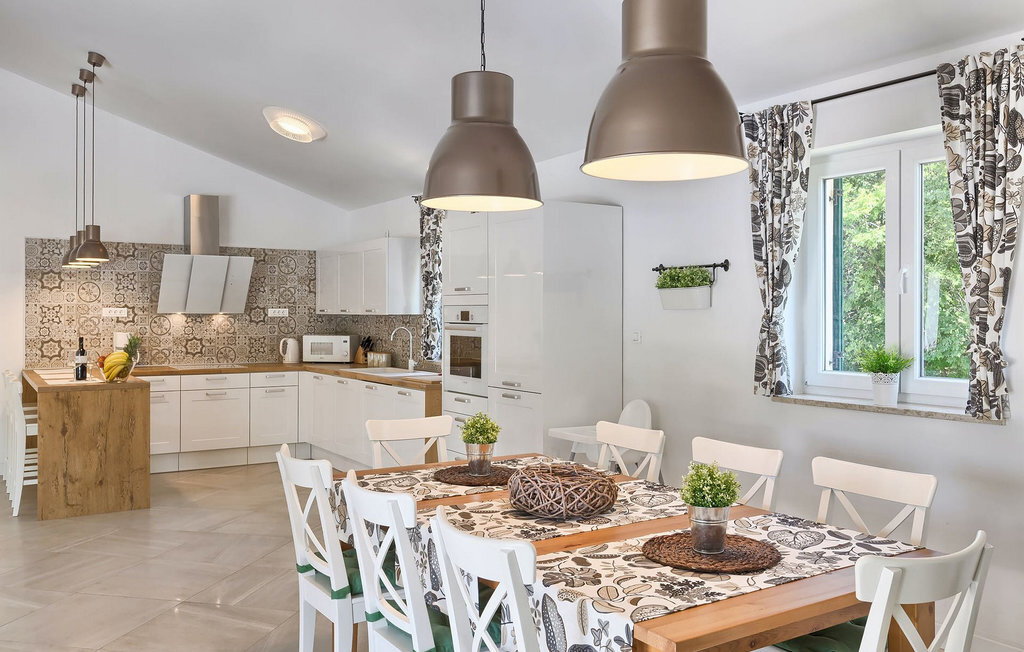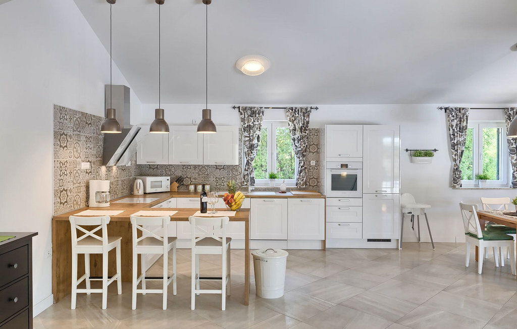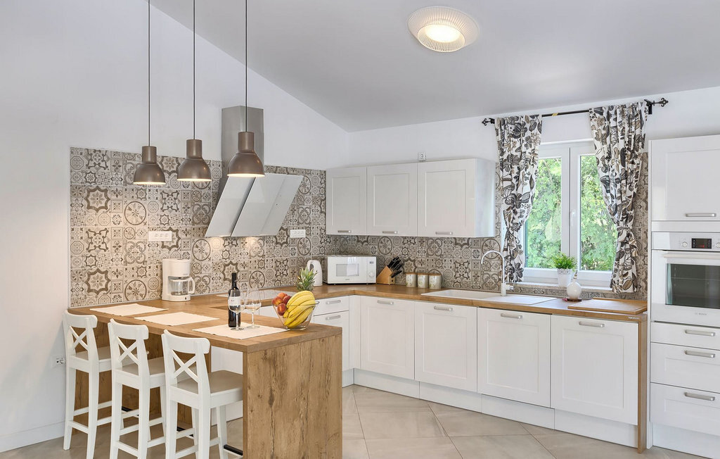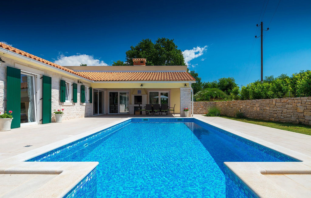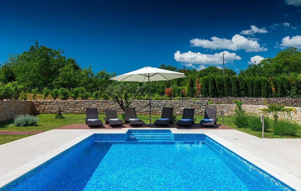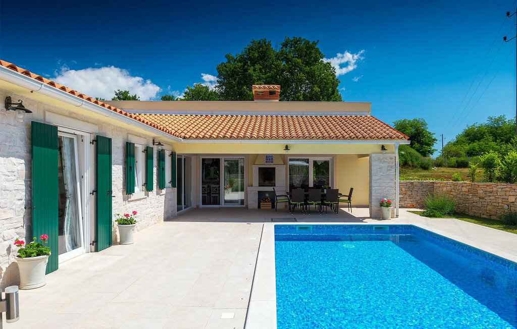 Située à l'est de l'Istrie, à une courte distance en voiture de Rabac, la villa Lucia attend votre arrivée. Cette charmante villa a été construite et aménagée pour vous permettre de passer des vacances relaxantes et paisibles dans la belle campagne istrienne. La villa dispose de 4 chambres à coucher et de 4 salles de bain en suite. Cette villa entièrement climatisée dispose d'une télévision et de 2 récepteurs SAT, d'une PlayStation 3 et d'une cuisine entièrement équipée avec coin repas. Passez vos journées dans le charmant paysage istrien en prenant le soleil à côté de la piscine ou amusez-vous en jouant au baby-foot et aux fléchettes dans la villa. Pendant les mois d'avril, mai, juin, septembre ou octobre, la piscine privée dans le jardin peut être chauffée, à condition d'être annoncée à l'avance.