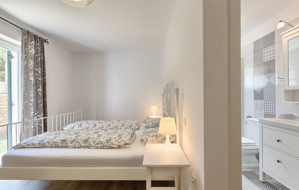 La première plage est accessible après un court trajet en voiture et se trouve à Rabac, à dix kilomètres de là, sur la côte est de la péninsule istrienne.