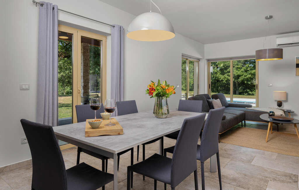 La villa a une situation vraiment unique. Elle se trouve dans une petite région paisible dans la partie orientale de l'Istrie. Les charmantes villes de Labin et Rabac ne sont qu'à quelques kilomètres de la villa. Labin est le centre historique et administratif de l'Est de l'Istrie. C'est une belle ville médiévale, riche en histoire mais pas très envahie par les touristes. Les ruelles escarpées et sinueuses de la vieille ville abritent des palais historiques bien conservés, des galeries d'art et des ateliers. Pendant les mois d'été, différents festivals de jazz et de musique classique sont organisés. Comme la ville est située sur une colline, elle offre une vue enchanteresse sur l'ancienne petite ville de la plage - Rabac. Rabac était autrefois un ancien village de pêcheurs, mais il offre aujourd'hui de belles plages et de nombreux restaurants.