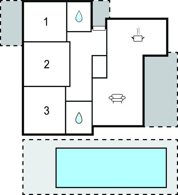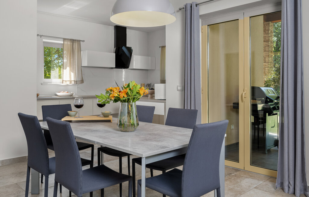 La villa peut accueillir 6 personnes dans 3 chambres confortables. Deux chambres disposent chacune d'un lit double, tandis que la troisième chambre est composée de deux lits simples. Il y a deux salles de bains, l'une avec douche et l'autre avec baignoire. La cuisine est équipée de tout ce dont vous pourriez avoir besoin et la salle à manger peut accueillir 6 personnes.