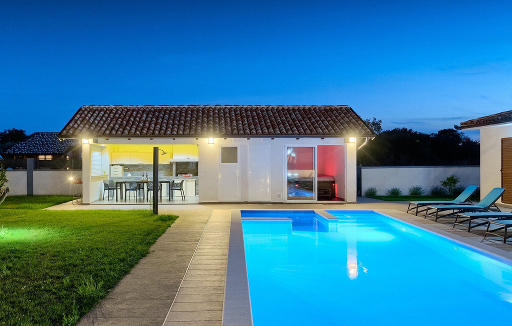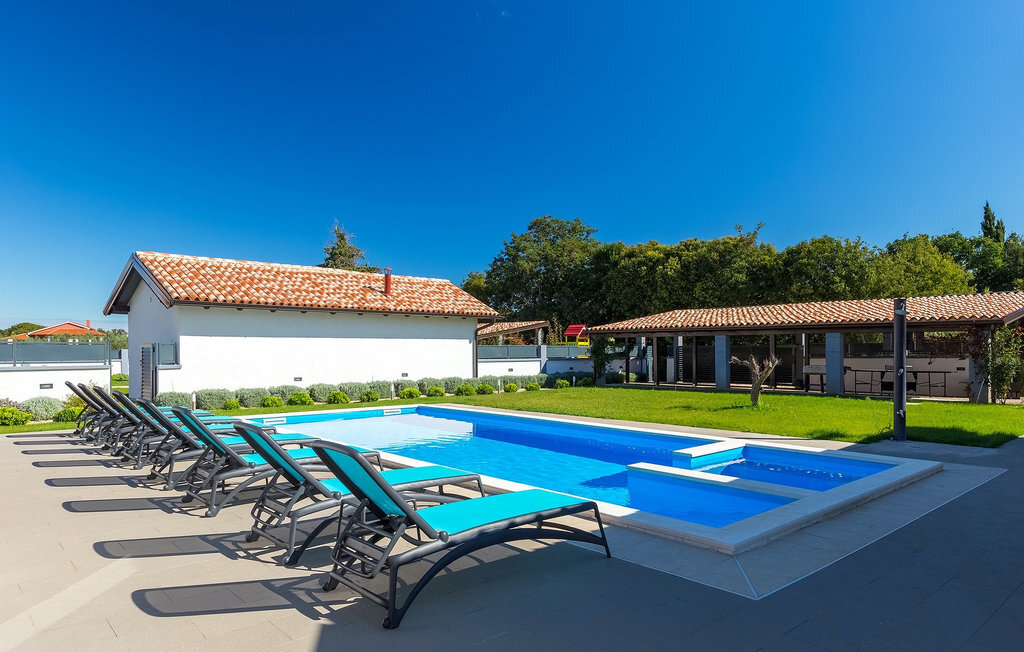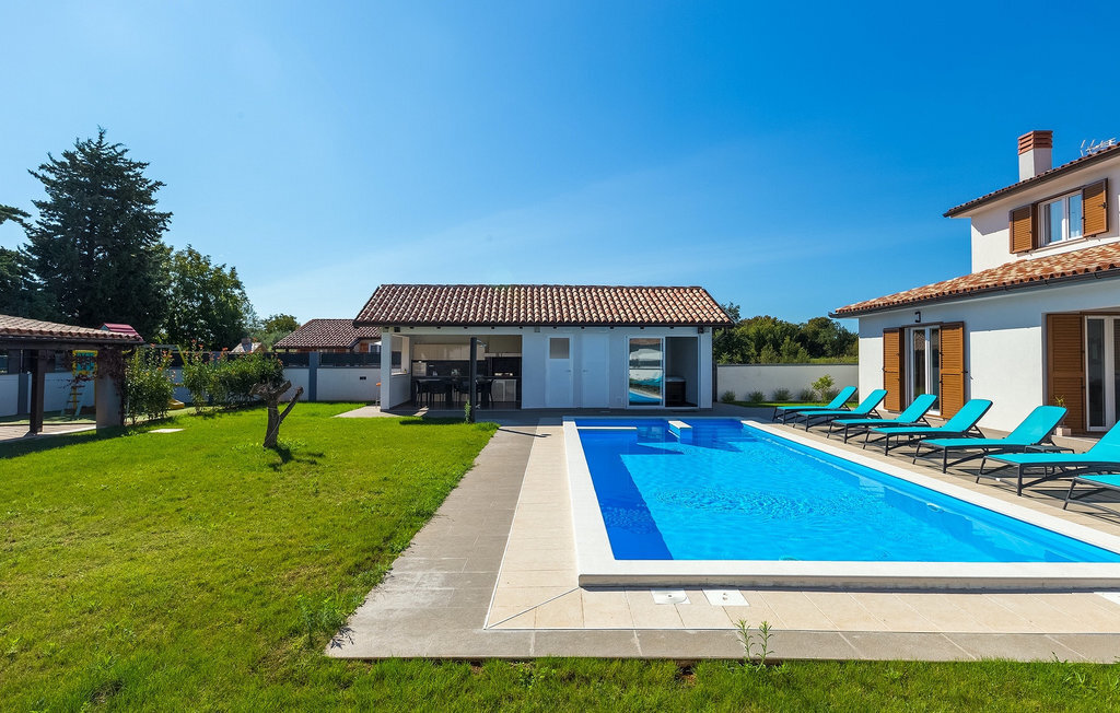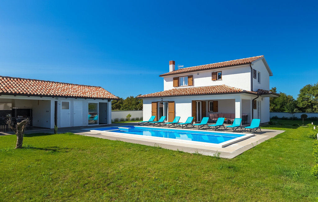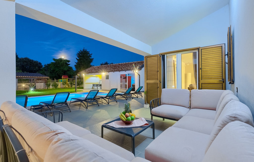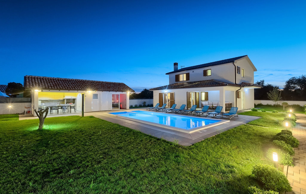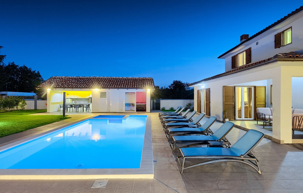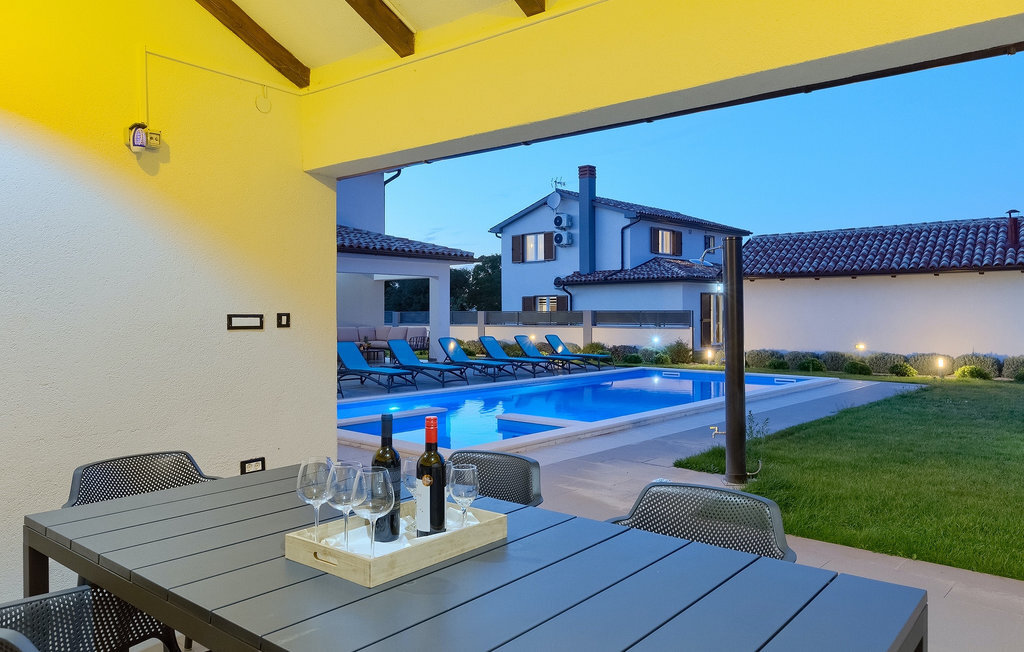 Cette magnifique et luxueuse villa Alba Bianca se trouve à ian, près de Pula. La villa peut accueillir jusqu'à 8 personnes. La magnifique villa Alba Bianca offre tout ce dont vous avez besoin pour des vacances parfaites en famille. Au rez-de-chaussée de la villa se trouvent un salon moderne, une cuisine et un coin repas ainsi qu'une chambre à coucher avec des lits séparés. Au premier étage se trouvent deux chambres doubles avec salle de bain privée. Toutes les chambres sont équipées de la climatisation et d'une télévision. Si vous souhaitez goûter aux plats traditionnels d'Istrie, vous trouverez dans la cuisine d'été en plein air tout ce dont vous avez besoin pour préparer un délicieux repas pour toute la famille, ainsi qu'un barbecue à gaz. Si vous voulez vous amuser, vous n'avez pas à vous inquiéter, car la Villa Alba Bianca vous propose un baby-foot, une table de ping-pong, des fléchettes, une Playstation 4 et un beau jardin avec une aire de jeux pour les enfants où vos plus petits pourront jouer. Si vous souhaitez vous détendre, nous vous recommandons d'essayer le sauna ou de nager dans la belle piscine. La villa Alba Bianca est un choix idéal pour vos vacances en Istrie.