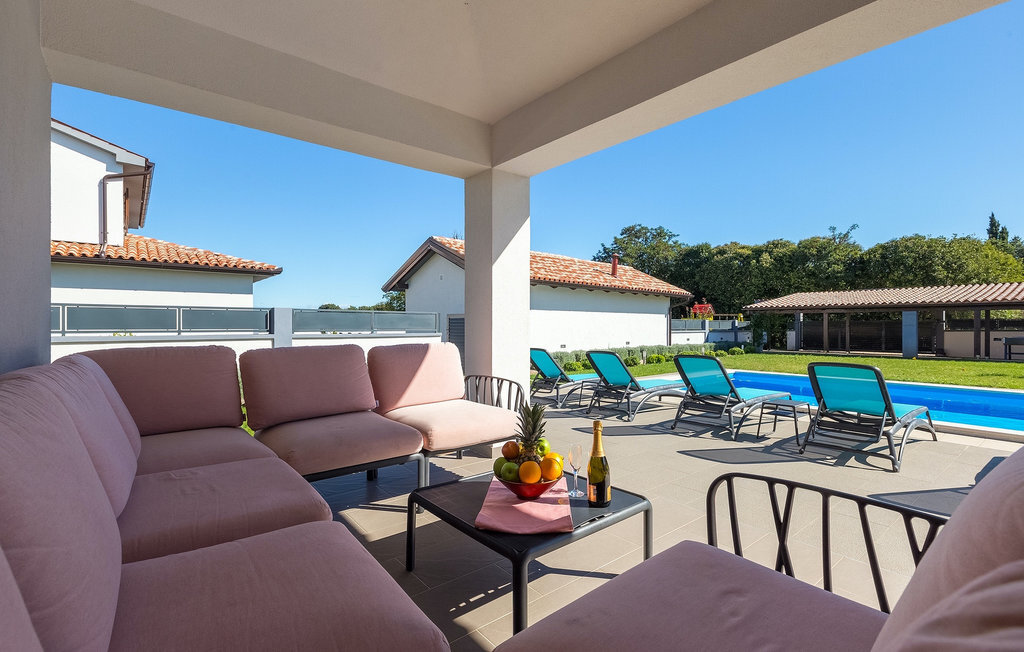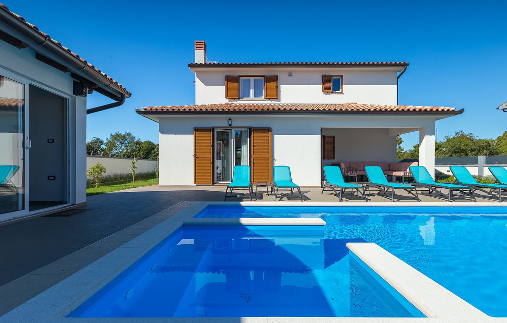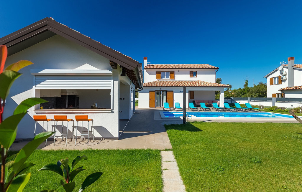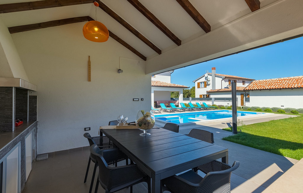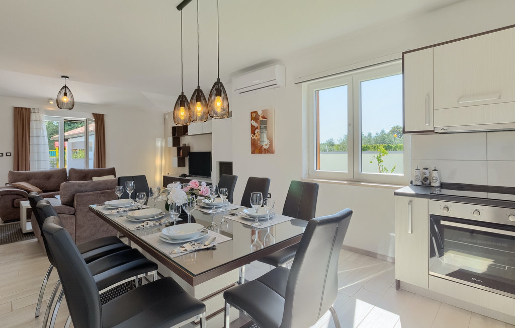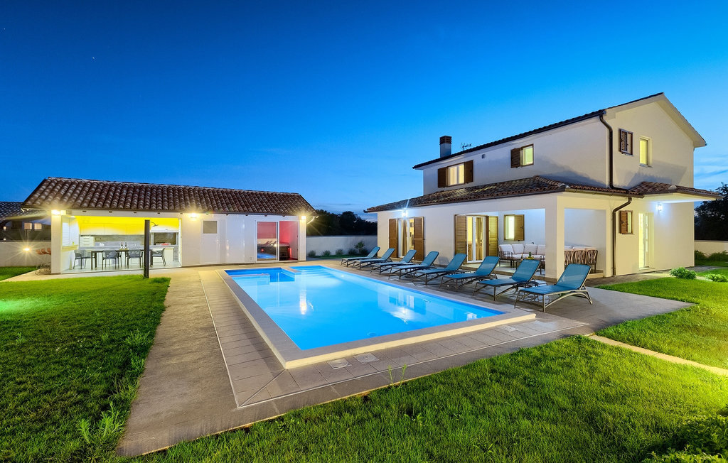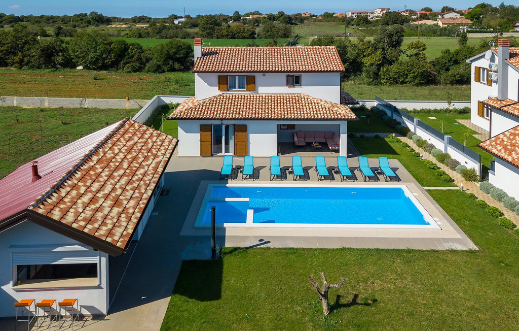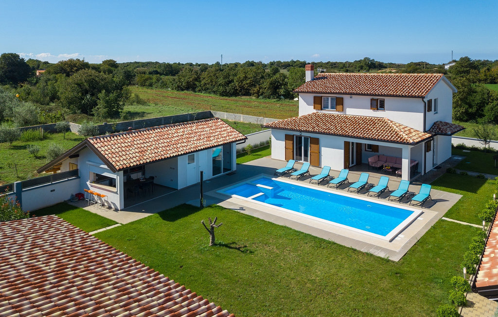 Cette magnifique et luxueuse villa Alba Bianca se trouve à ian, près de Pula. La villa peut accueillir jusqu'à 8 personnes. La magnifique villa Alba Bianca offre tout ce dont vous avez besoin pour des vacances parfaites en famille. Au rez-de-chaussée de la villa se trouvent un salon moderne, une cuisine et un coin repas ainsi qu'une chambre à coucher avec des lits séparés. Au premier étage se trouvent deux chambres doubles avec salle de bain privée. Toutes les chambres sont équipées de la climatisation et d'une télévision. Si vous souhaitez goûter aux plats traditionnels d'Istrie, vous trouverez dans la cuisine d'été en plein air tout ce dont vous avez besoin pour préparer un délicieux repas pour toute la famille, ainsi qu'un barbecue à gaz. Si vous voulez vous amuser, vous n'avez pas à vous inquiéter, car la Villa Alba Bianca vous propose un baby-foot, une table de ping-pong, des fléchettes, une Playstation 4 et un beau jardin avec une aire de jeux pour les enfants où vos plus petits pourront jouer. Si vous souhaitez vous détendre, nous vous recommandons d'essayer le sauna ou de nager dans la belle piscine. La villa Alba Bianca est un choix idéal pour vos vacances en Istrie.