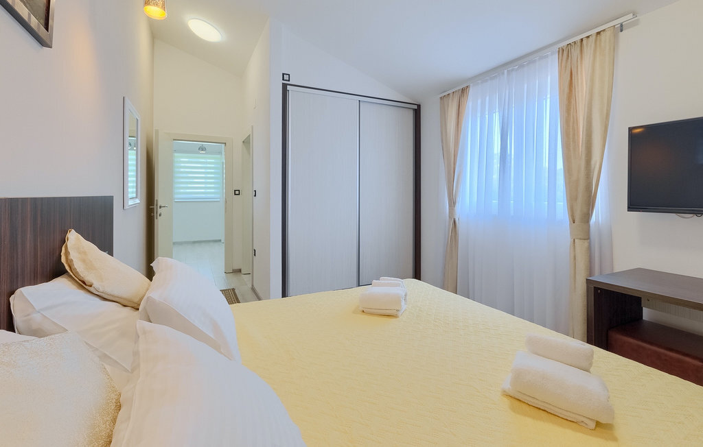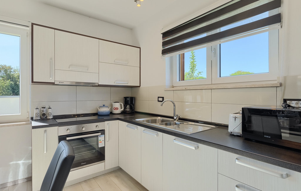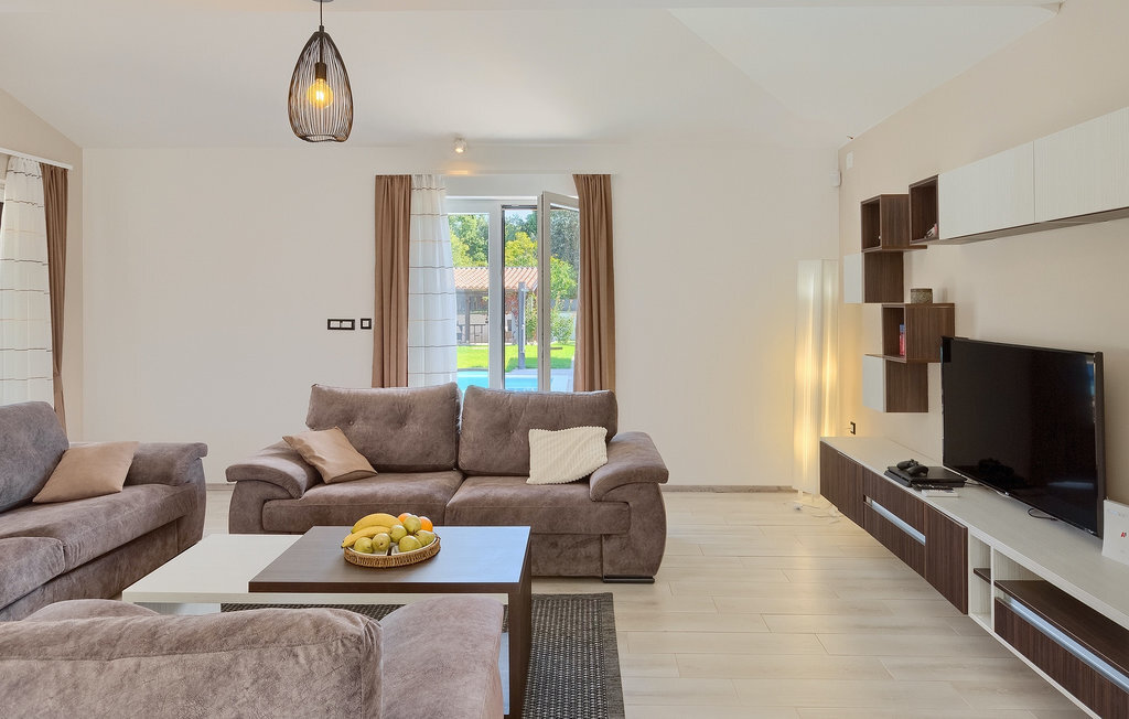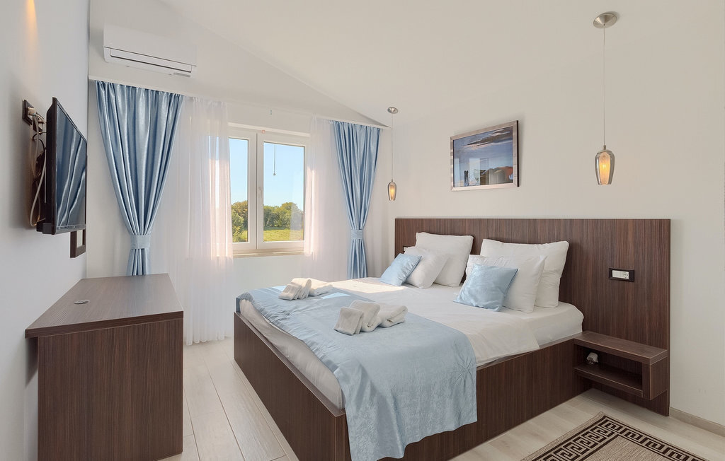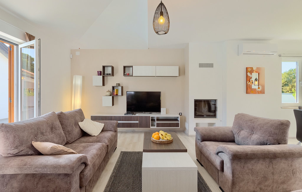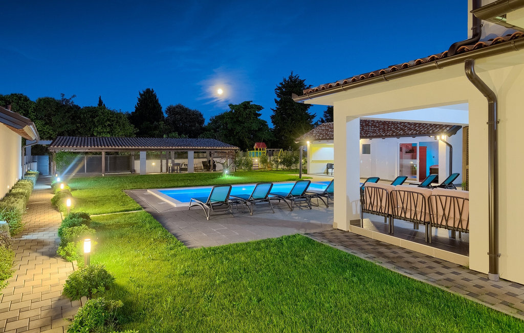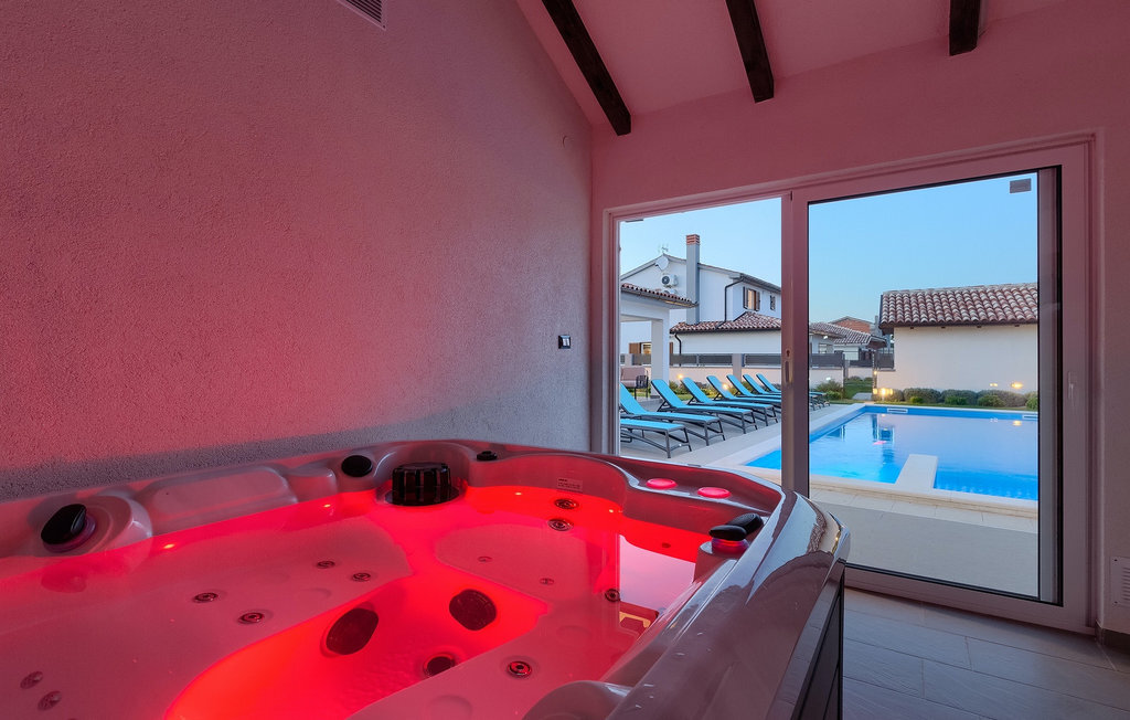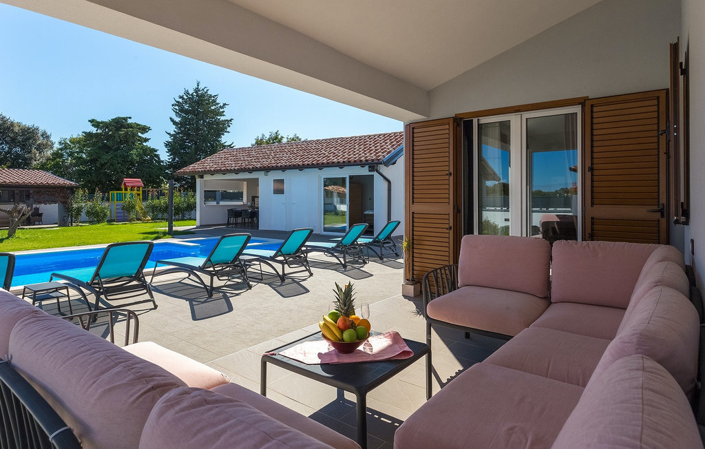 Cette magnifique et luxueuse villa Alba Bianca se trouve à ian, près de Pula. La villa peut accueillir jusqu'à 8 personnes. La magnifique villa Alba Bianca offre tout ce dont vous avez besoin pour des vacances parfaites en famille. Au rez-de-chaussée de la villa se trouvent un salon moderne, une cuisine et un coin repas ainsi qu'une chambre à coucher avec des lits séparés. Au premier étage se trouvent deux chambres doubles avec salle de bain privée. Toutes les chambres sont équipées de la climatisation et d'une télévision. Si vous souhaitez goûter aux plats traditionnels d'Istrie, vous trouverez dans la cuisine d'été en plein air tout ce dont vous avez besoin pour préparer un délicieux repas pour toute la famille, ainsi qu'un barbecue à gaz. Si vous voulez vous amuser, vous n'avez pas à vous inquiéter, car la Villa Alba Bianca vous propose un baby-foot, une table de ping-pong, des fléchettes, une Playstation 4 et un beau jardin avec une aire de jeux pour les enfants où vos plus petits pourront jouer. Si vous souhaitez vous détendre, nous vous recommandons d'essayer le sauna ou de nager dans la belle piscine. La villa Alba Bianca est un choix idéal pour vos vacances en Istrie.