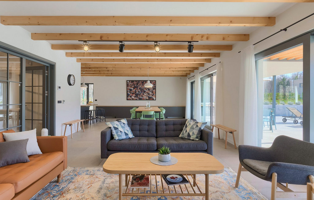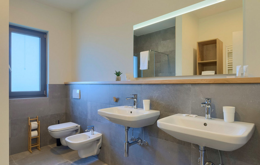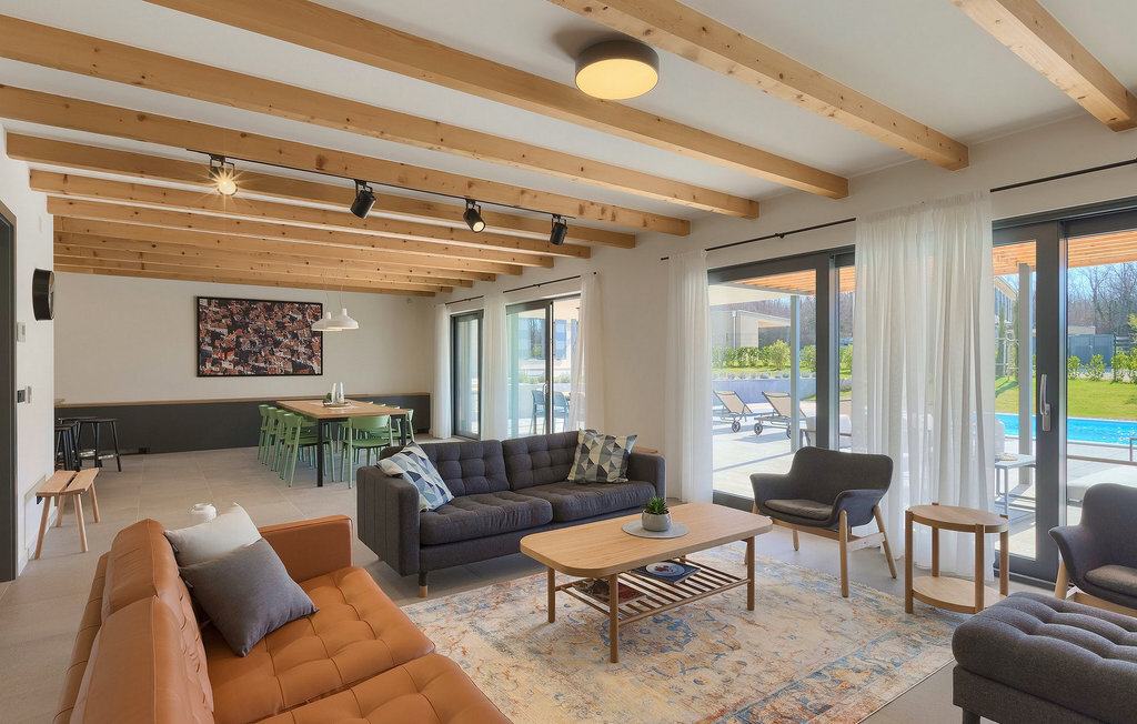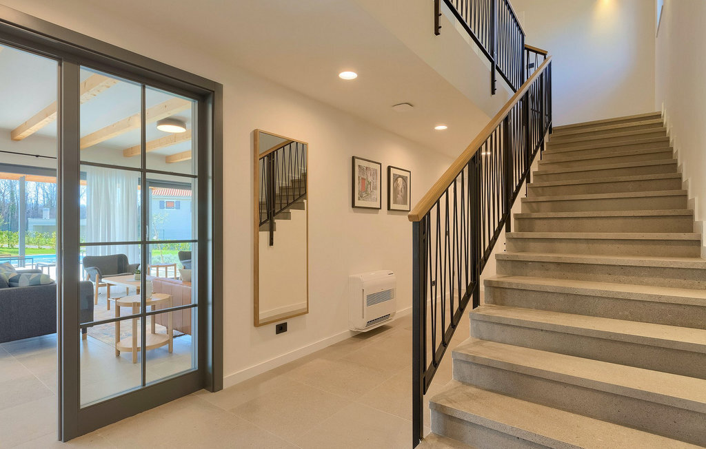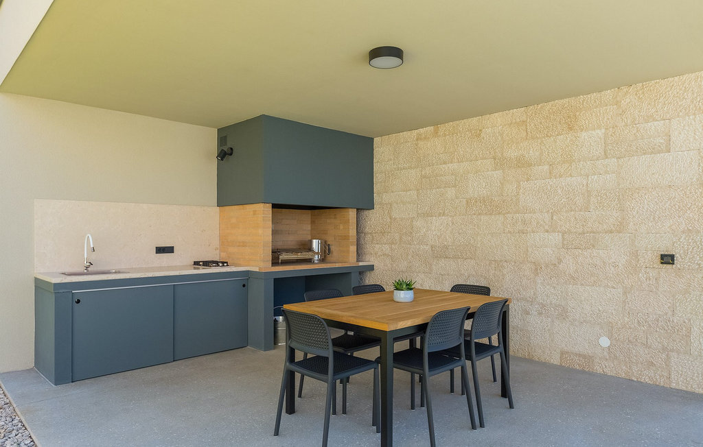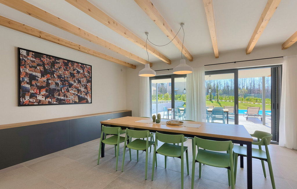 Cette villa moderne magnifiquement aménagée est un choix idéal si vous prévoyez des vacances tranquilles en famille. Le fait que cette interprétation moderne d'une maison traditionnelle d'Istrie porte le nom du célèbre gâteau d'Istrie contribue à cette atmosphère chaleureuse. Visitez la Villa Povetica et plongez dans un design moderne au cœur de la nature istrienne. Devant la villa, vous avez la possibilité de vous détendre au bord de la belle piscine. Vous prendrez votre café matinal sur les élégants meubles de jardin, à l'ombre de la terrasse couverte, où une grande table à manger est également à votre disposition. L'intérieur se caractérise par des lignes claires et des combinaisons de couleurs harmonieuses. Au rez-de-chaussée, vous profitez de l'intérieur du salon, d'où vous accédez à la salle à manger et à la cuisine. Des tons doux s'étendent à travers toute la pièce et relient merveilleusement l'intérieur en une seule unité. Nous pouvons qualifier l'espace de lumineux, car toute la pièce dispose de grandes fenêtres qui relient parfaitement l'intérieur et l'extérieur. Au rez-de-chaussée se trouve également une chambre à coucher avec sa propre salle de bain, ainsi qu'un WC. Un escalier spacieux vous mène au premier étage, où se trouvent 4 chambres à coucher avec salles de bain privées. Toutes les chambres et les salles de bains vous séduiront par leur design moderne, qui combine matériaux naturels, simplicité et élégance. À côté de la villa se trouve un pavillon de jardin dans lequel vous trouverez une chambre à coucher avec sa propre salle de bain et des toilettes. La terrasse couverte devant le pavillon de jardin, où vous pourrez profiter du barbecue et d'une cuisine extérieure avec une table à manger, est tout aussi moderne. Si vous prévoyez des vacances avec vos enfants, l'aire de jeux pour enfants sur la propriété vous enchantera particulièrement, et pour tous les cyclistes aventureux, "bike rental on request" est disponible.Cette villa est située à Laksici, près de la petite ville de Vizinada,dans un complexe de quatre maisons à l'extrémité du village, sur le chemin des magnifiques oliveraies et vignobles. La nature istrienne est le choix idéal pour des vacances tranquilles. Mais si vous souhaitez explorer la culture istrienne, la ville de Vizinada regorge de curiosités et d'événements culturels. Pour les amateurs de cyclisme, les environs de Vizinada regorgent de sentiers de randonnée qui vous permettront d'explorer le magnifique paysage. La villa est située à proximité de la piste cyclable Parenzana sur l'ancienne ligne de chemin de fer Trieste-Buje-Motovun-Vizinada-Porec. Les villes de Porec et de Novigrad, à environ 20 minutes de la ville de Vizinada, sont certainement un élément incontournable de la culture istrienne. Porec, une ville qui a trouvé sa place sur la liste du patrimoine mondial de l'UNESCO, offre un grand choix de curiosités et de festivals, tandis que la ville de Novigrad séduit par ses églises romanes. La dégustation de spécialités locales telles que l'huile d'olive, le jambon d'Istrie (prut) ou les truffes, ainsi que la visite des villes voisines situées sur la colline - Motovun et Groznjan - constituent également un élément incontournable de la culture istrienne. À seulement 20 km de la villa se trouvent deux nouveaux parcs aquatiques istriens - Acquacolors près de Porec et Istralandia près de Novigrad.