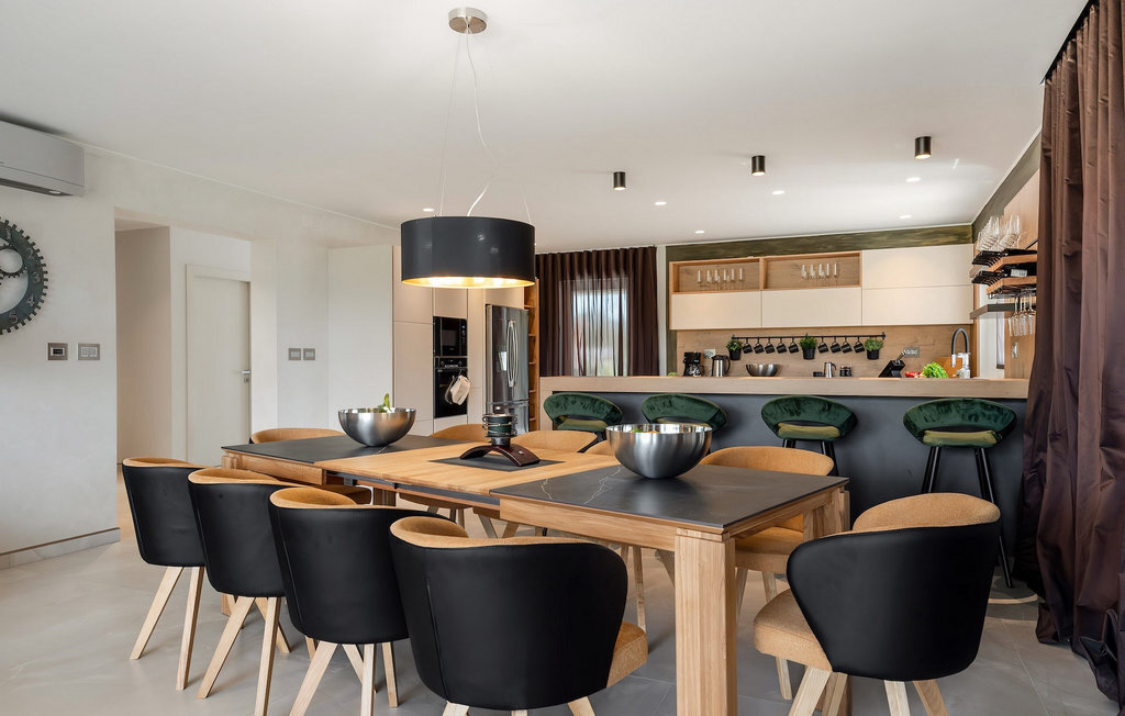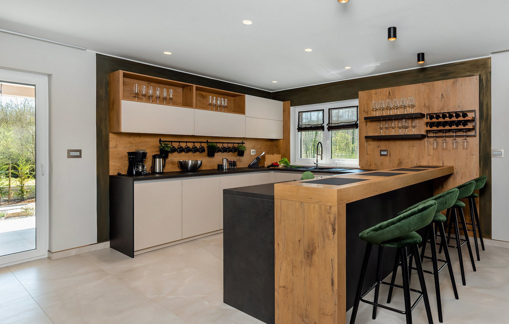 Réservez la Villa Santa Cruz, faites l'expérience d'une touche de luxe et tombez amoureux de l'Istrie, car ce n'est pas pour rien qu'on l'appelle terra magica.La Villa Santa Cruz est située dans un petit village appelé Orsanii. Comme la plupart des villages d'Istrie, il se trouve à une courte distance en voiture de la côte est de l'Istrie et garantit des vacances reposantes et tranquilles. Les villes côtières de Labin et Rabac offrent un excellent choix de cafés et de grands restaurants où vous pourrez déguster une cuisine méditerranéenne traditionnelle comme les scampi du Kvarner, l'un des produits les plus appréciés de l'Adriatique. Autrefois petit village de pêcheurs, Rabac est aujourd'hui une station balnéaire réputée pour ses beautés naturelles remarquablement préservées, qui lui ont valu le titre de perle de la baie de Kvarner. Labin est une ville médiévale située à seulement 40 km de Pula, sur une colline surplombant directement Rabac. La ville est le centre culturel de l'Est de la Triade, connue pour ses nombreuses galeries d'art et son parc de sculptures unique en son genre. Si vous décidez de visiter Labin, nous vous conseillons de vous promener dans les étroites ruelles en pierre et de profiter d'une vue magnifique sur Rabac et l'île de Cres en buvant un café. Amusez-vous à explorer la région en vélo ou en quad, faites de longues promenades dans une nature intacte ou faites l'expérience de la recherche de truffes. Il y a tellement de choses à découvrir ici que nous vous conseillons de commencer dès maintenant. Nous sommes sûrs que vous reviendrez bientôt dans cette Istrie magique !