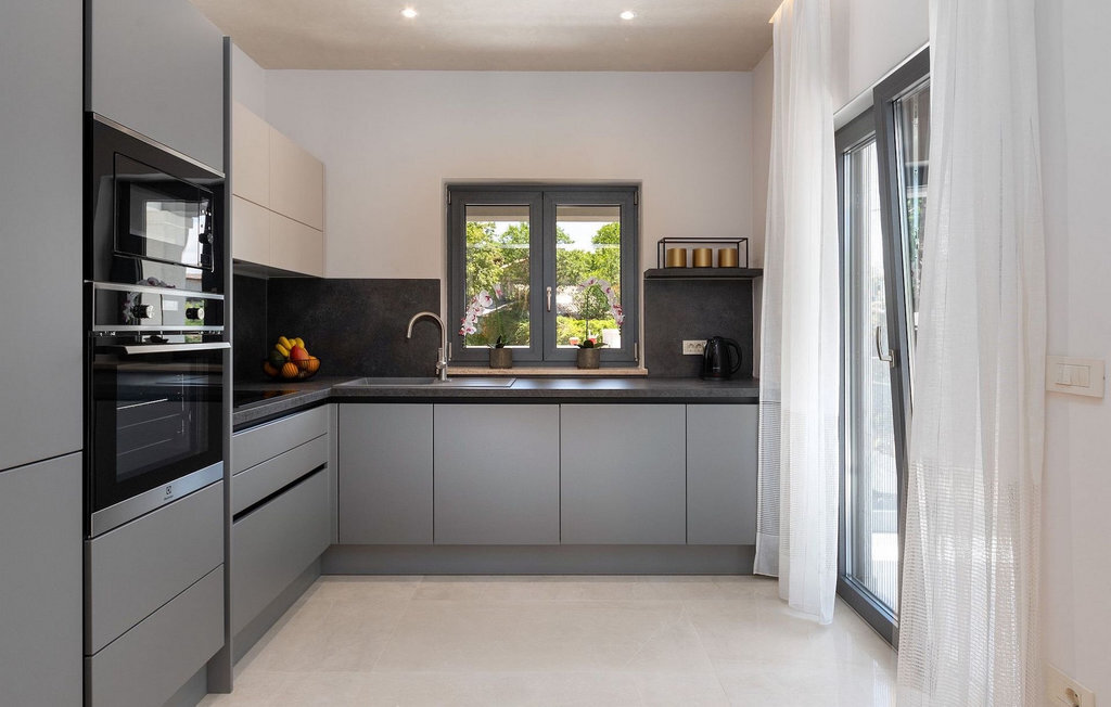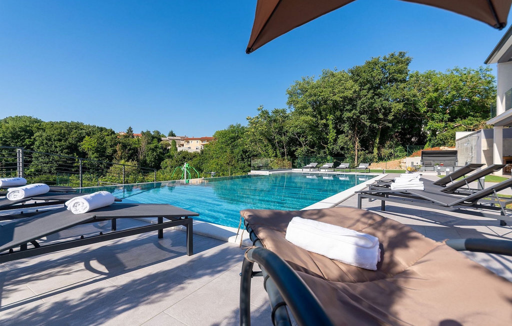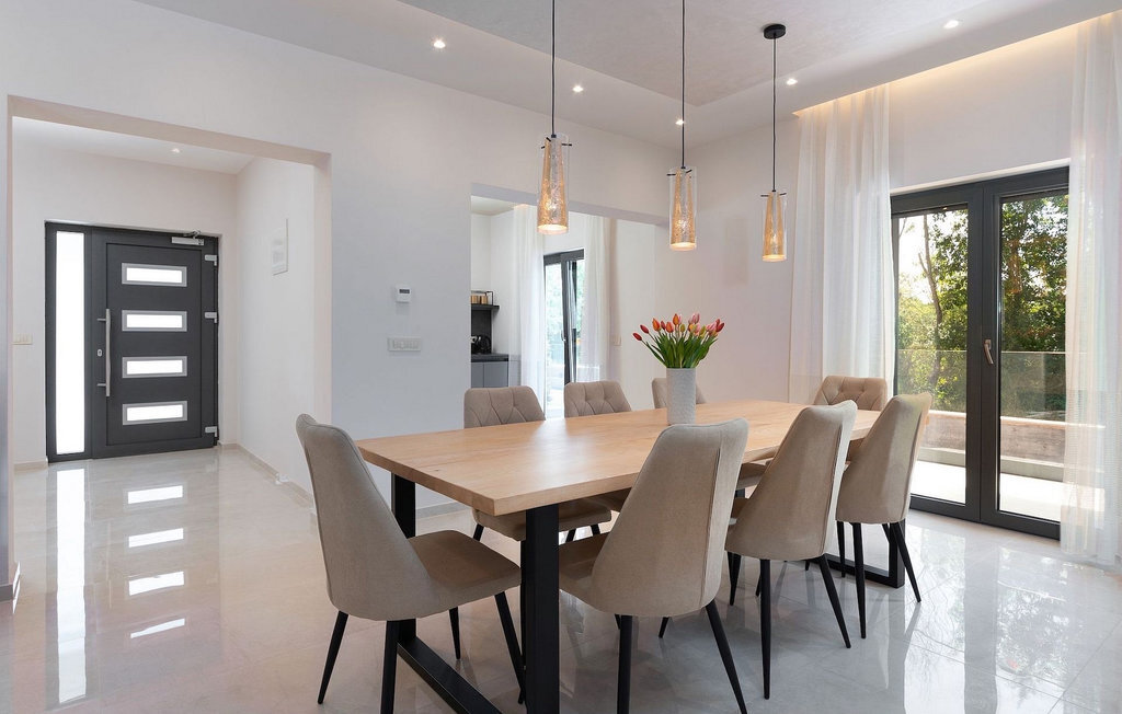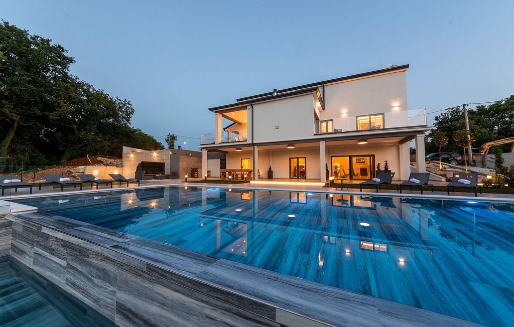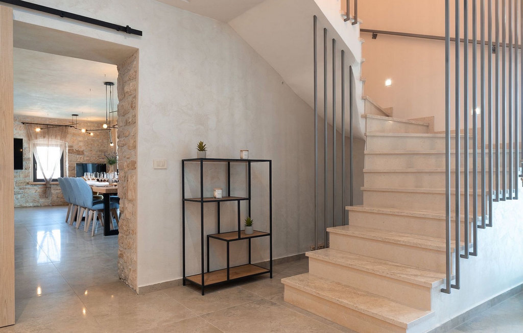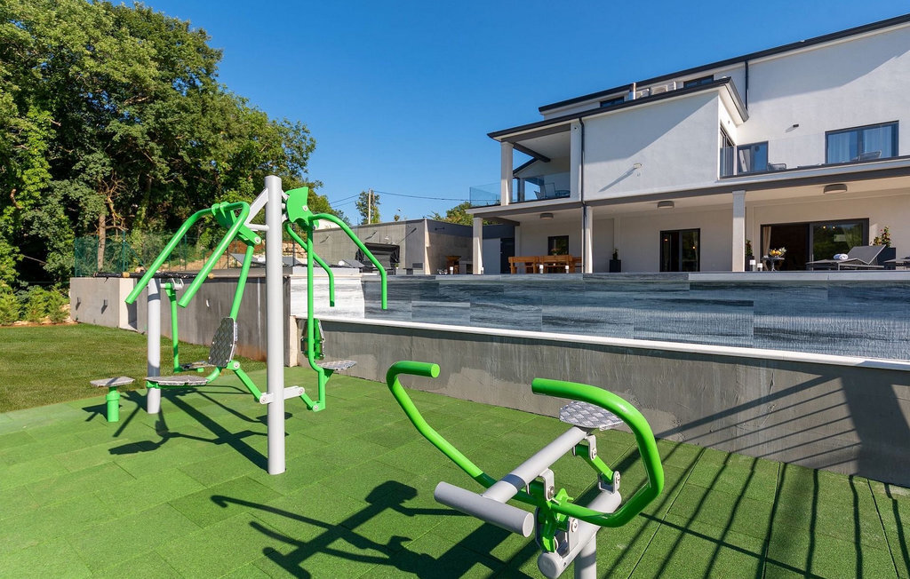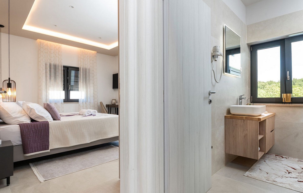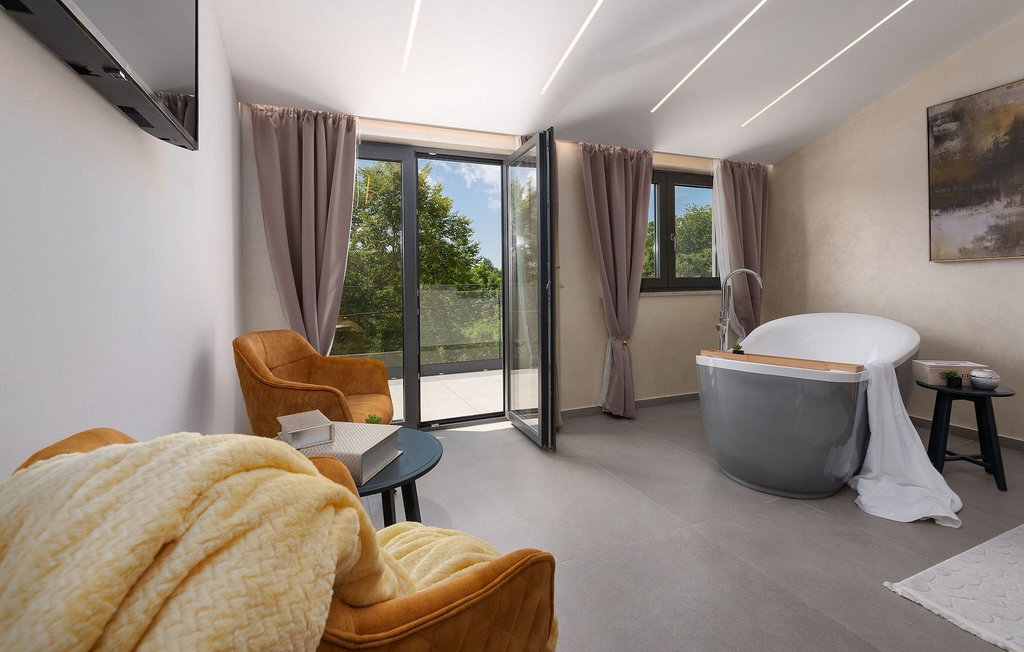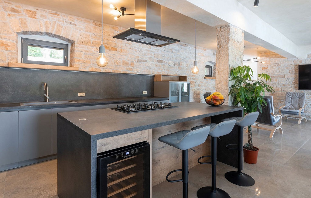 Découvrez notre fantastique Villa Fabris - une élégante villa de 5 chambres pouvant accueillir jusqu'à 10 personnes pour des vacances de rêve au cœur de l'Istrie. La villa est située dans le village de Danijeli, près de Tinjan, entourée de nature et pourtant suffisamment proche de toutes les commodités dont on a besoin en vacances. Le point de mire est la très belle piscine de 96m2 avec hydromassage, entourée de chaises longues et avec vue sur la verdure. Ici, vous pouvez vraiment vous détendre et profiter de l'été. Sur la terrasse avec vue sur la piscine, vous avez le coin barbecue moderne et un petit salon. Une grande table en bois vous invite à prendre vos repas en plein air avec votre famille et vos amis. En entrant dans la maison, vous vous trouvez dans la grande cuisine d'été entièrement équipée et meublée avec style, avec une grande table à manger où tout le monde peut s'asseoir. L'une des belles salles de bains se trouve également à ce niveau. Un étage plus haut, la Villa Fabris dispose d'un salon chic avec coin repas et cuisine ainsi que de deux chambres à coucher avec chacune leur propre salle de bain moderne. Si vous montez encore quelques marches, vous avez encore 3 chambres confortables avec salles de bains attenantes à votre disposition, qui vous promettent des nuits reposantes, si vous ne les passez pas à admirer le ciel étoilé sur le balcon ;-). Pour s'amuser, il y a par exemple un espace fitness au bord de la piscine, une table de ping-pong, un baby-foot, des fléchettes, un panier de basket-ball et un trampoline. Une Playstation est également à disposition. Un autre atout de la Villa Fabris est son sauna privé. Offrez-vous un peu de luxe, réservez notre nouvelle Villa Fabris et profitez de vos vacances d'été bien méritées avec vos proches dans la magie de l'Istrie!La Villa Fabris est située dans le centre de l'Istrie, entre Pazin et Rovinj, au milieu de nombreux petits villages. Le village de Danijeli est l'un de ces petits endroits où l'on se sent immédiatement comme chez soi. On y trouve tout ce dont on a besoin pour la vie quotidienne, mais aussi des villes particulières, des curiosités et des plages pas trop éloignées. Les emblèmes de cette région enchanteresse sont sans aucun doute le meilleur prosciutto d'Istrie, l'huile d'olive et le vin, les authentiques murs en pierres sèches, mais aussi l'intrigante histoire ancienne et la tradition riche en légendes locales et en secrets à découvrir. Les petites villes médiévales pittoresques sur les collines, les villages authentiques où le temps s'est arrêté et les paysages d'une beauté fascinante sont idéaux pour des tours panoramiques, des balades à vélo et des randonnées. Une excellente cuisine traditionnelle, de l'huile d'olive vierge et des raisins de première qualité de Muscat, Malvasia et Teran - pour lesquels cette région est mondialement connue - ajoutent les derniers ingrédients à des vacances inoubliables. Et si vous êtes d'humeur à faire autre chose, la mer Adriatique cristalline avec ses magnifiques plages ainsi que les hotspots touristiques populaires ne sont qu'à une courte distance en voiture.