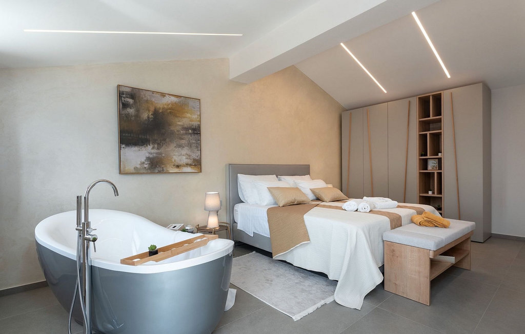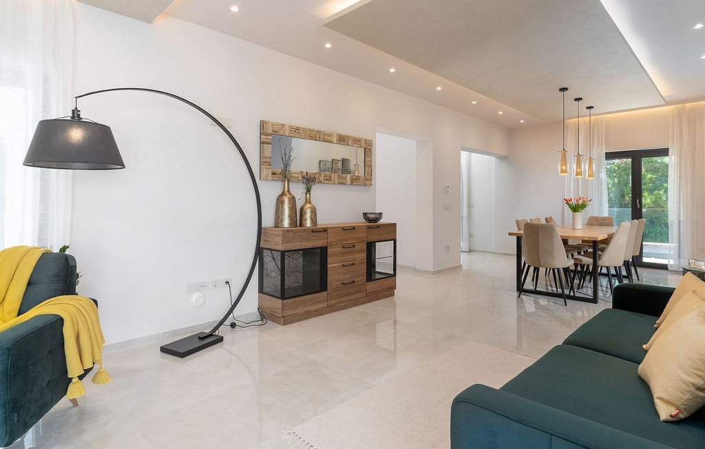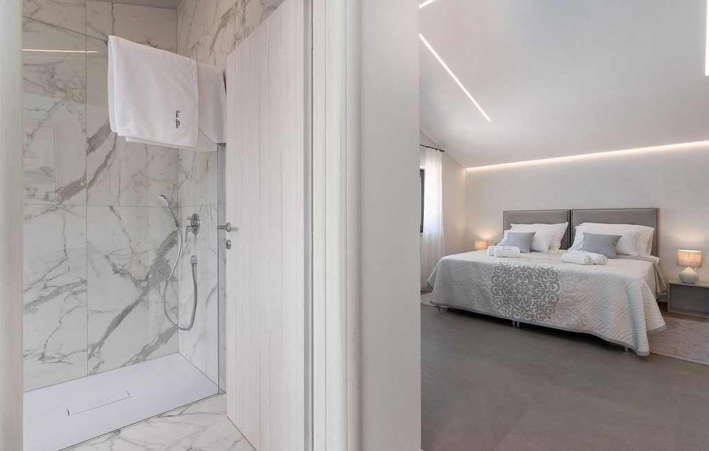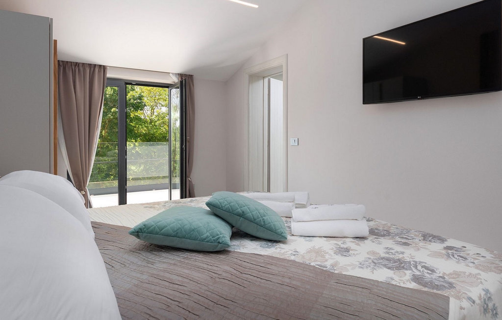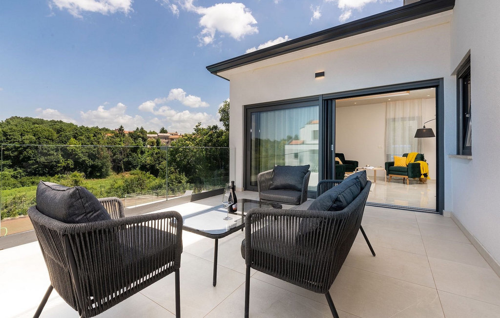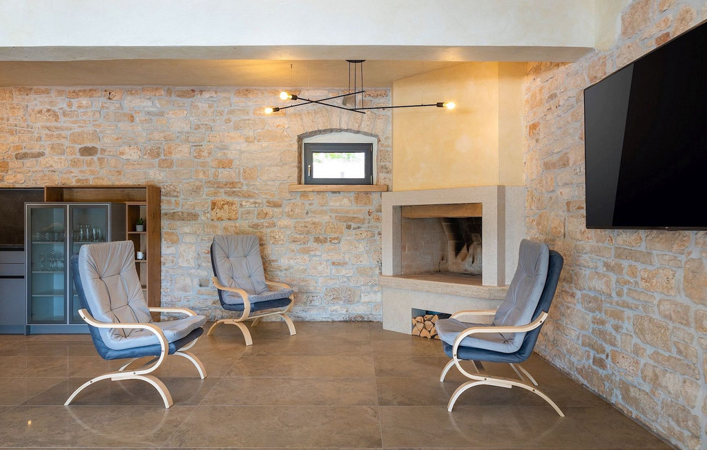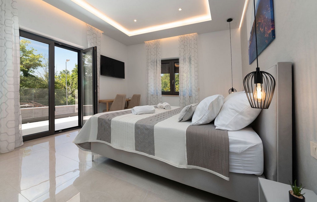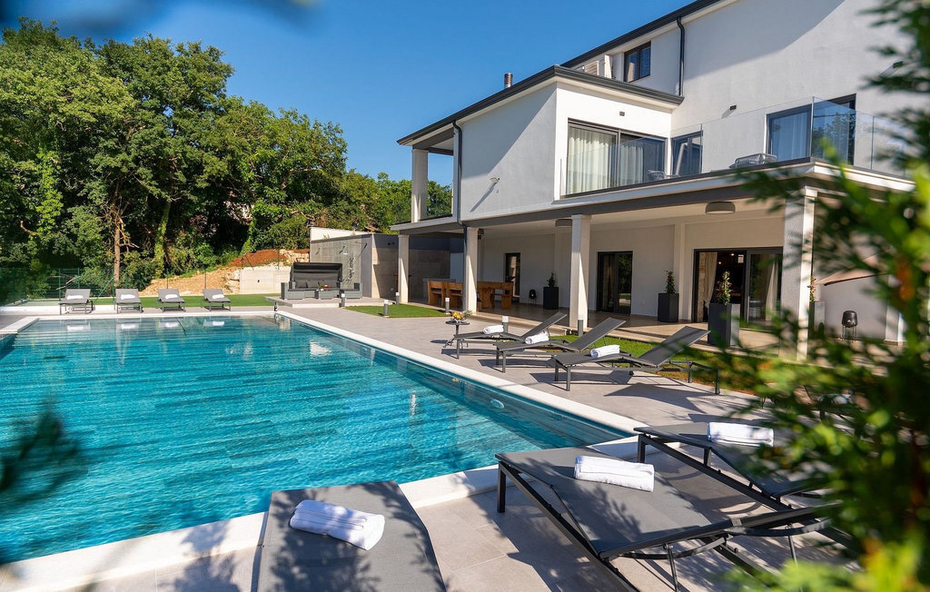 Découvrez notre fantastique Villa Fabris - une élégante villa de 5 chambres pouvant accueillir jusqu'à 10 personnes pour des vacances de rêve au cœur de l'Istrie. La villa est située dans le village de Danijeli, près de Tinjan, entourée de nature et pourtant suffisamment proche de toutes les commodités dont on a besoin en vacances. Le point de mire est la très belle piscine de 96m2 avec hydromassage, entourée de chaises longues et avec vue sur la verdure. Ici, vous pouvez vraiment vous détendre et profiter de l'été. Sur la terrasse avec vue sur la piscine, vous avez le coin barbecue moderne et un petit salon. Une grande table en bois vous invite à prendre vos repas en plein air avec votre famille et vos amis. En entrant dans la maison, vous vous trouvez dans la grande cuisine d'été entièrement équipée et meublée avec style, avec une grande table à manger où tout le monde peut s'asseoir. L'une des belles salles de bains se trouve également à ce niveau. Un étage plus haut, la Villa Fabris dispose d'un salon chic avec coin repas et cuisine ainsi que de deux chambres à coucher avec chacune leur propre salle de bain moderne. Si vous montez encore quelques marches, vous avez encore 3 chambres confortables avec salles de bains attenantes à votre disposition, qui vous promettent des nuits reposantes, si vous ne les passez pas à admirer le ciel étoilé sur le balcon ;-). Pour s'amuser, il y a par exemple un espace fitness au bord de la piscine, une table de ping-pong, un baby-foot, des fléchettes, un panier de basket-ball et un trampoline. Une Playstation est également à disposition. Un autre atout de la Villa Fabris est son sauna privé. Offrez-vous un peu de luxe, réservez notre nouvelle Villa Fabris et profitez de vos vacances d'été bien méritées avec vos proches dans la magie de l'Istrie!La Villa Fabris est située dans le centre de l'Istrie, entre Pazin et Rovinj, au milieu de nombreux petits villages. Le village de Danijeli est l'un de ces petits endroits où l'on se sent immédiatement comme chez soi. On y trouve tout ce dont on a besoin pour la vie quotidienne, mais aussi des villes particulières, des curiosités et des plages pas trop éloignées. Les emblèmes de cette région enchanteresse sont sans aucun doute le meilleur prosciutto d'Istrie, l'huile d'olive et le vin, les authentiques murs en pierres sèches, mais aussi l'intrigante histoire ancienne et la tradition riche en légendes locales et en secrets à découvrir. Les petites villes médiévales pittoresques sur les collines, les villages authentiques où le temps s'est arrêté et les paysages d'une beauté fascinante sont idéaux pour des tours panoramiques, des balades à vélo et des randonnées. Une excellente cuisine traditionnelle, de l'huile d'olive vierge et des raisins de première qualité de Muscat, Malvasia et Teran - pour lesquels cette région est mondialement connue - ajoutent les derniers ingrédients à des vacances inoubliables. Et si vous êtes d'humeur à faire autre chose, la mer Adriatique cristalline avec ses magnifiques plages ainsi que les hotspots touristiques populaires ne sont qu'à une courte distance en voiture.