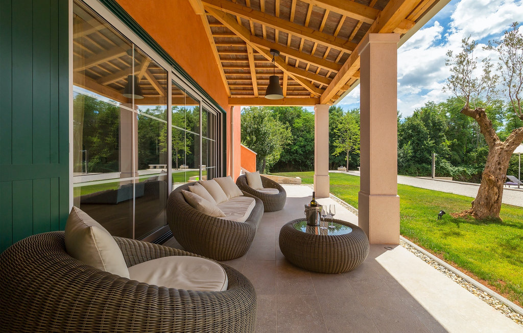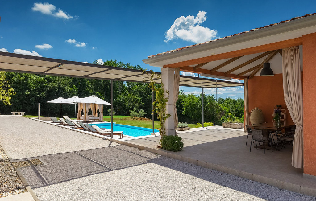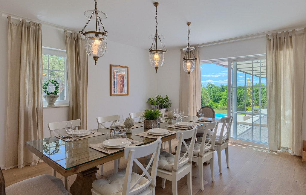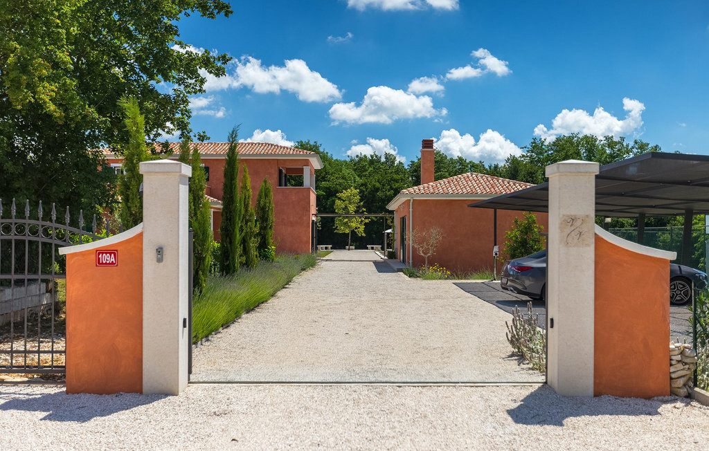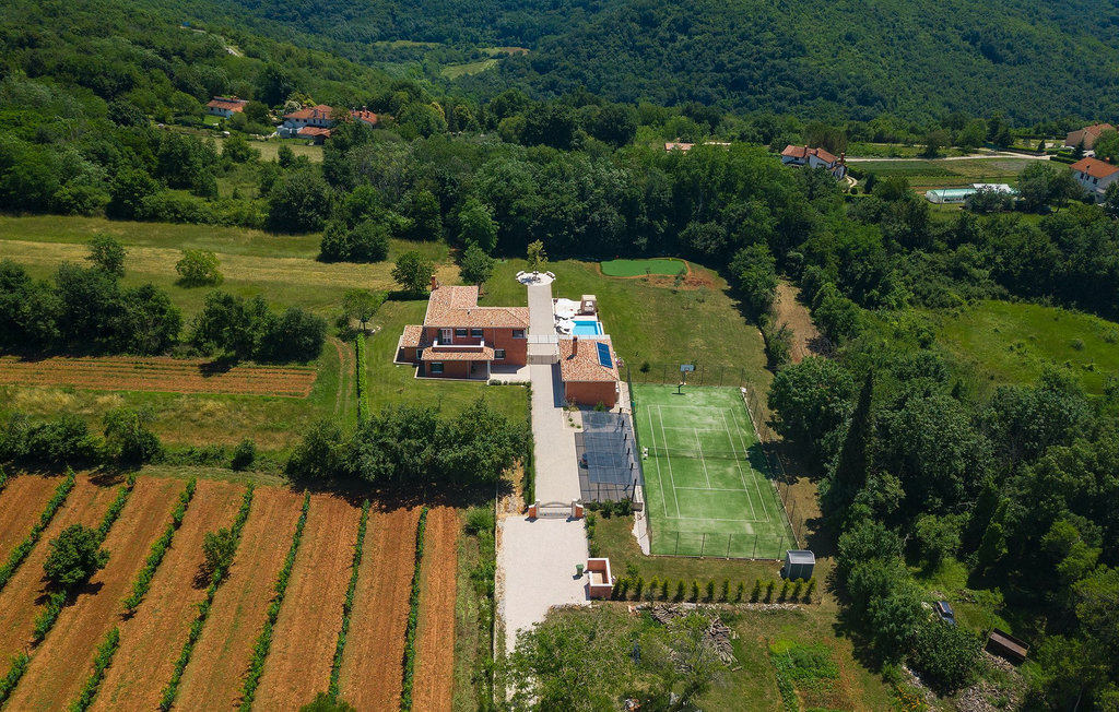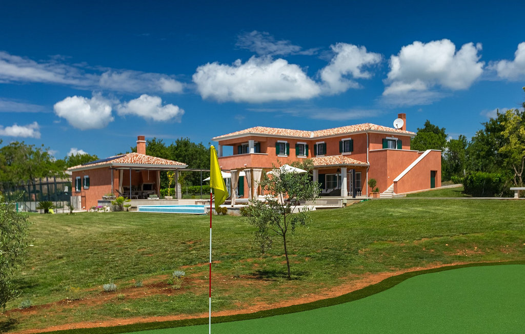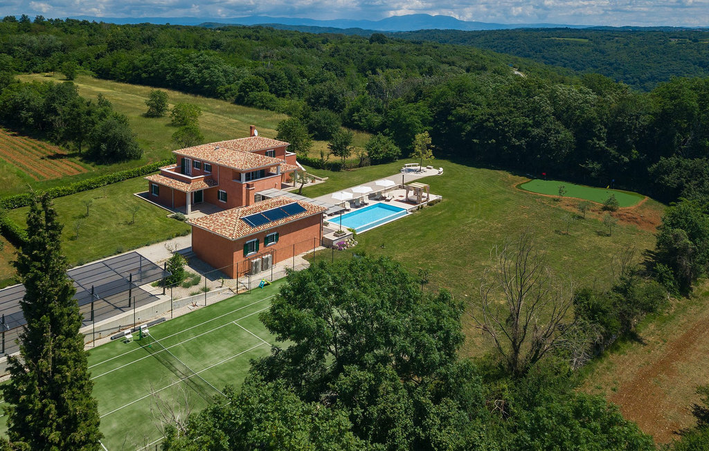 Villa Village est une magnifique villa moderne avec piscine privée située dans le centre de l'Istrie. C'est la première villa en Istrie avec une station de recharge pour voitures électriques, un choix parfait pour les conducteurs de voitures électriques ! La Villa Village dispose non seulement d'un jacuzzi intérieur, d'un sauna et d'un billard, mais aussi d'un court de tennis privé, d'un terrain de golf et d'un panier de basket, ce qui en fait une villa idéale pour les familles avec enfants. La piscine à débordement chauffée, entourée d'un paysage idyllique, est l'endroit idéal pour des couchers de soleil romantiques. Villa Village peut accueillir 8 personnes. Au rez-de-chaussée se trouve une cuisine entièrement équipée avec un coin repas, un salon, une salle de bien-être et une chambre avec salle de bain privée.