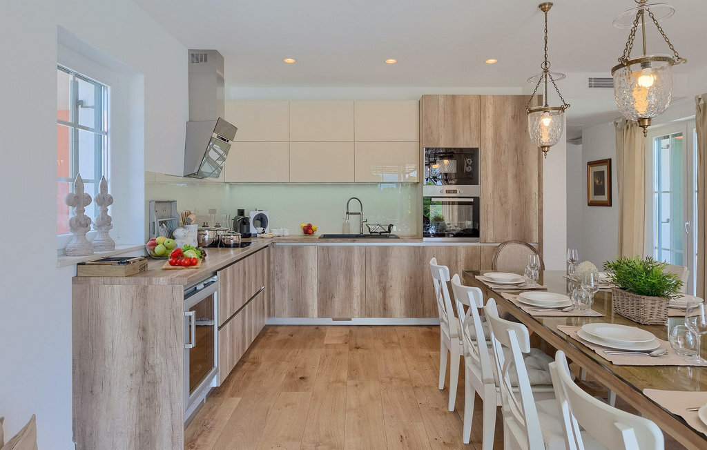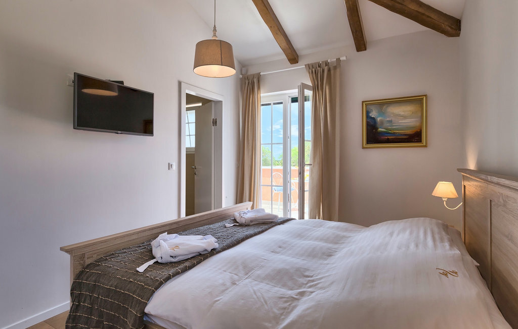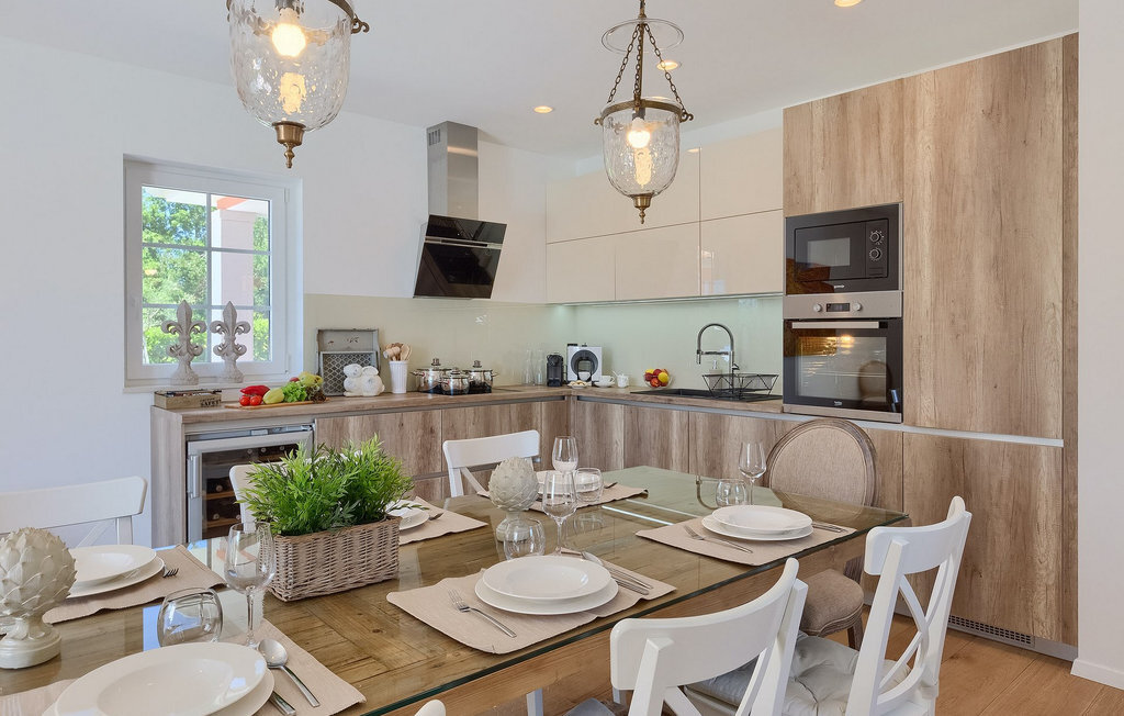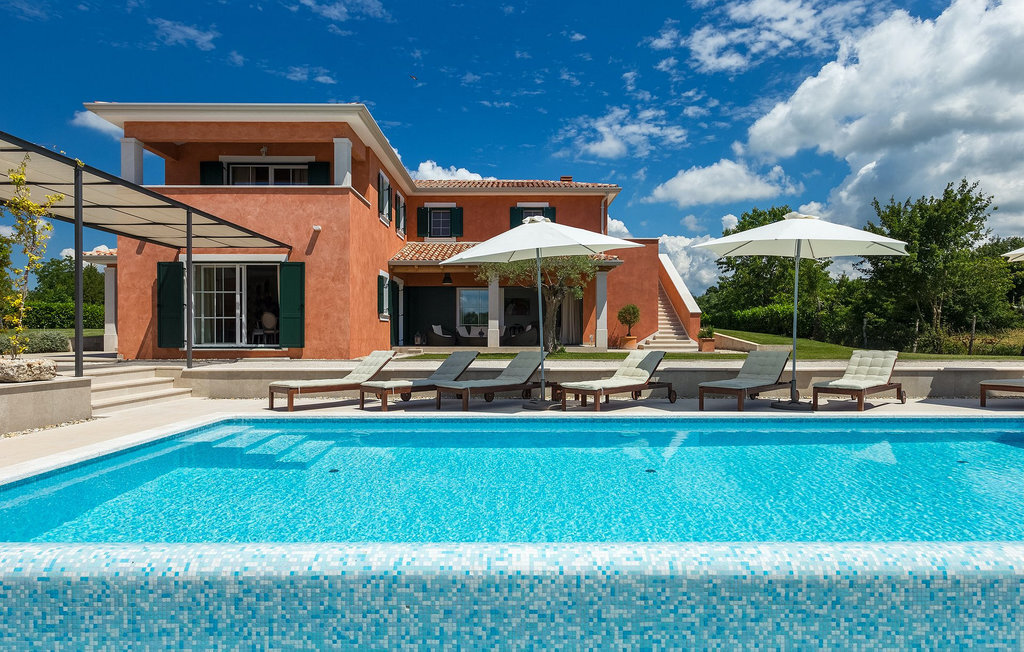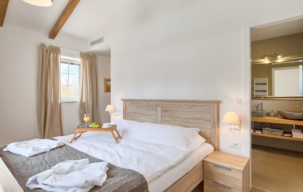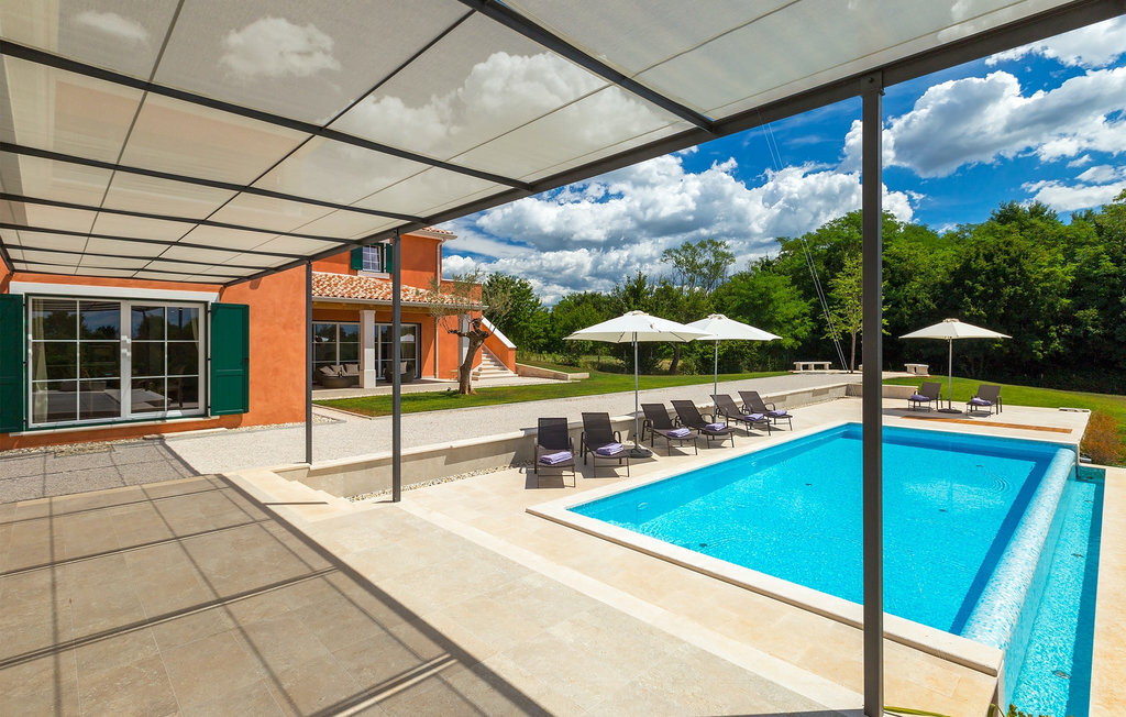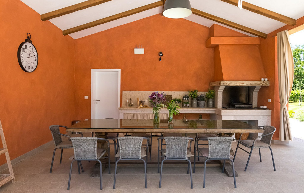 Villa Village est une magnifique villa moderne avec piscine privée située dans le centre de l'Istrie. C'est la première villa en Istrie avec une station de recharge pour voitures électriques, un choix parfait pour les conducteurs de voitures électriques ! La Villa Village dispose non seulement d'un jacuzzi intérieur, d'un sauna et d'un billard, mais aussi d'un court de tennis privé, d'un terrain de golf et d'un panier de basket, ce qui en fait une villa idéale pour les familles avec enfants. La piscine à débordement chauffée, entourée d'un paysage idyllique, est l'endroit idéal pour des couchers de soleil romantiques. Villa Village peut accueillir 8 personnes. Au rez-de-chaussée se trouve une cuisine entièrement équipée avec un coin repas, un salon, une salle de bien-être et une chambre avec salle de bain privée.