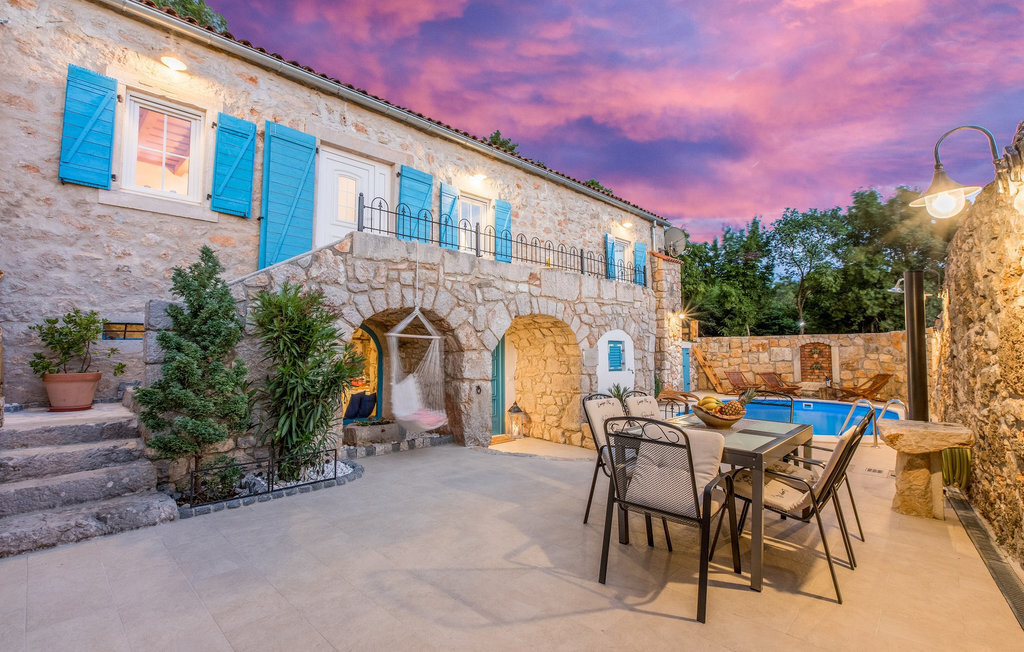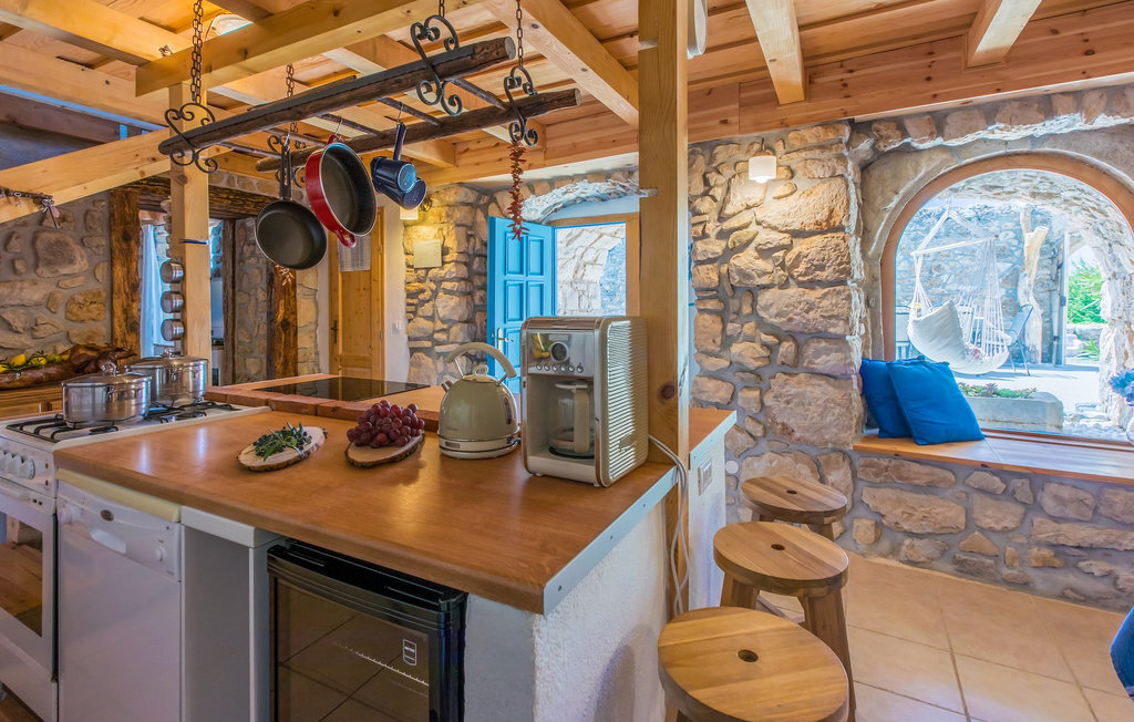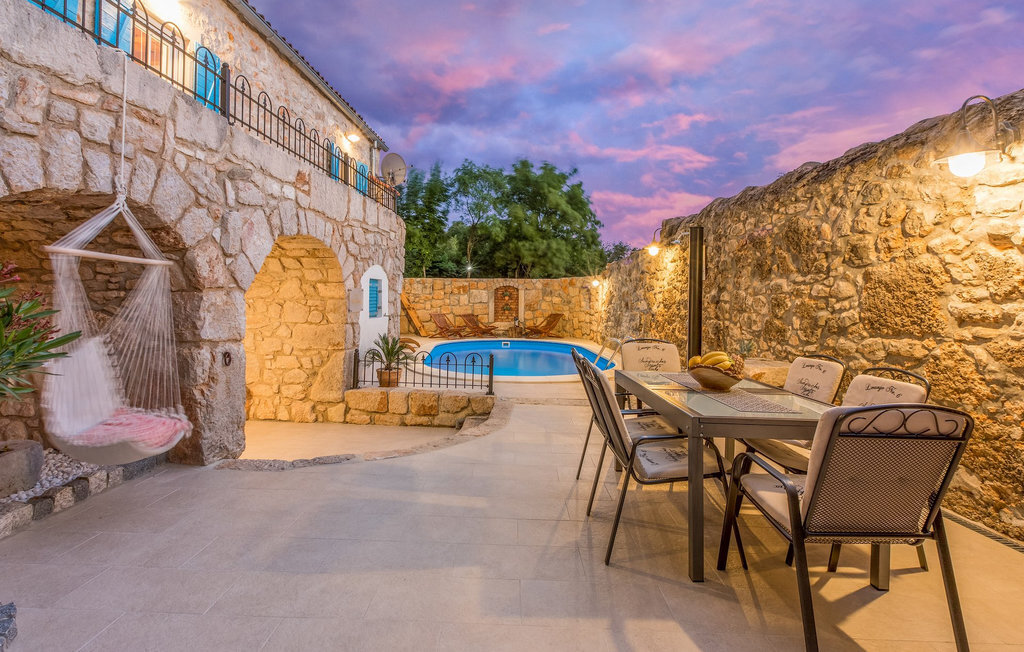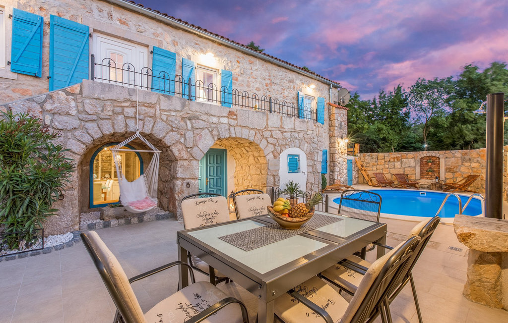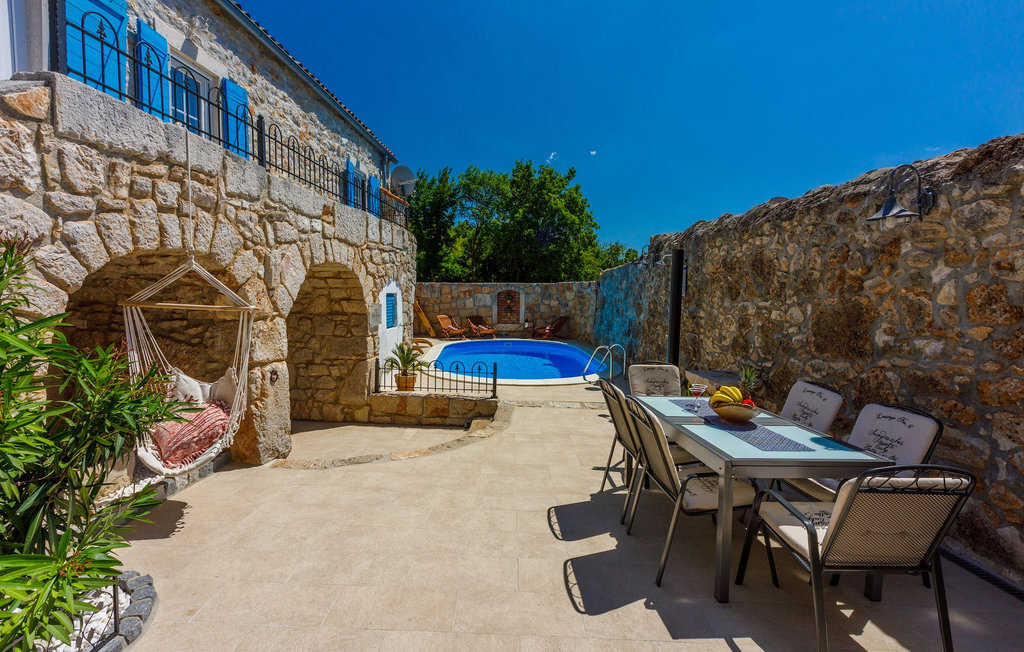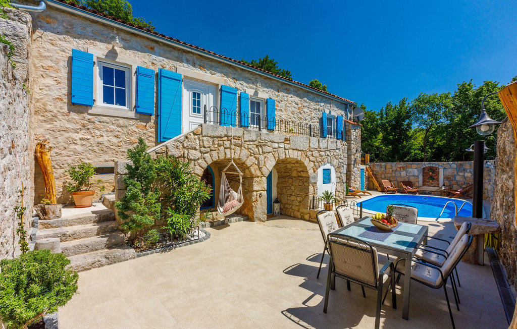 La Villa Siesta est une charmante villa rustique en pierre située au cœur d'une nature magnifique à Vinodol. C'est un endroit dont rêvent tous ceux qui ont besoin de calme et de tranquillité et qui souhaitent s'éloigner des destinations trépidantes. La Crikvenica Riviera se trouve à une courte distance en voiture. La cour de cette villa récemment rénovée se trouve derrière des murs de pierre de 2,5 m de haut qui offrent une intimité totale. La villa se trouve sur une colline entourée de forêts. Dans la cour intérieure se trouvent une piscine et des chaises longues ainsi que deux salons en plein air. L'un des deux salons se trouve à l'arrière de la villa, où il y a plus d'ombre et est parfait pour les chaudes journées d'été. L'autre salon est idéal pour prendre une tasse de café le matin ou une boisson rafraîchissante. Un barbecue est à votre disposition pour préparer vos repas et dîner sous les étoiles. Vous disposez également d'un jardin à l'extérieur de la cour clôturée, où se trouvent une balançoire, un banc et des chaises longues, afin que vous puissiez vous détendre à l'ombre naturelle. Depuis la cour, vous montez les escaliers jusqu'à la terrasse du premier étage, qui offre une vue phénoménale sur la mer. L'intérieur de la villa est joliment décoré et est un mélange parfait de style moderne et traditionnel. Tous les murs et plafonds ont été restaurés dans un style traditionnel depuis l'époque où seuls des matériaux naturels étaient utilisés. De nombreux détails décoratifs sont disséminés dans toute la maison, comme des objets d'artisanat en bois, des balançoires et de nombreuses antiquités. Même les appareils et technologies modernes sont très joliment combinés de manière à ne pas nuire à l'aménagement paysager traditionnel. Au rez-de-chaussée de la villa se trouvent une cuisine entièrement équipée, une salle à manger où se trouve également un coin de jeu, ainsi que le salon. Au premier étage se trouvent trois chambres à coucher avec des lits doubles, dont une avec un lit d'enfant. Une des chambres doubles a également sa propre douche. La salle de bain se trouve au premier étage. Vous pouvez entrer dans la villa par l'entrée principale au rez-de-chaussée ou par la terrasse au premier étage.