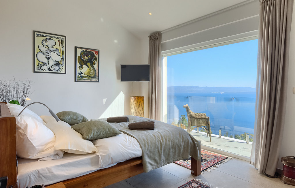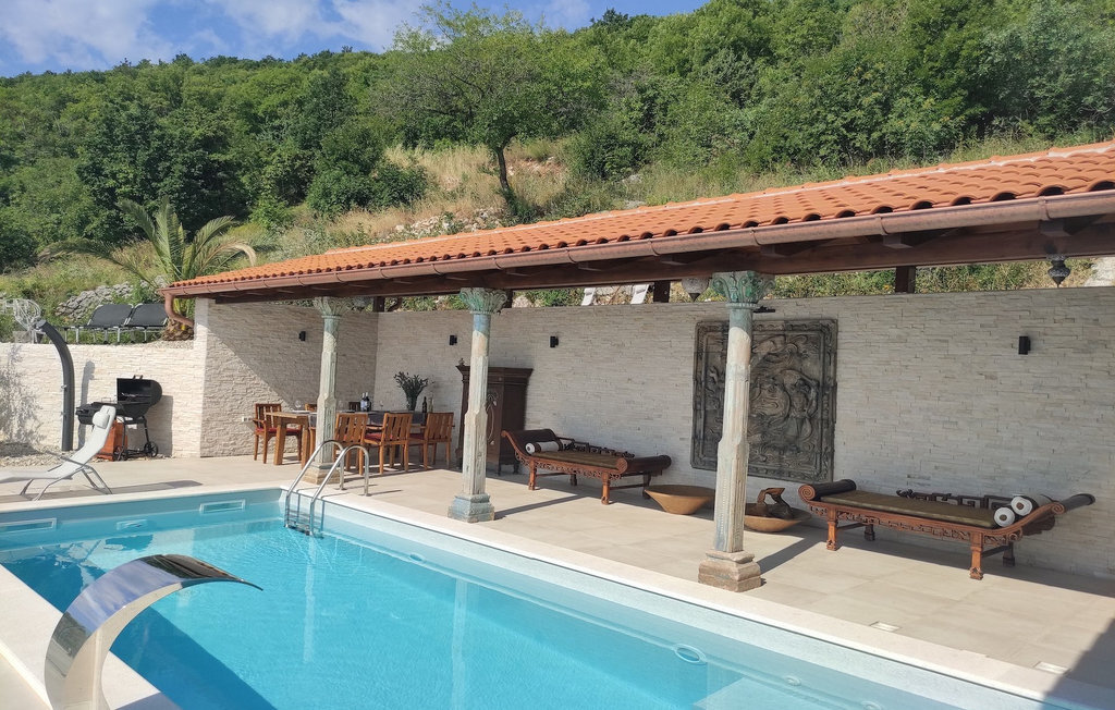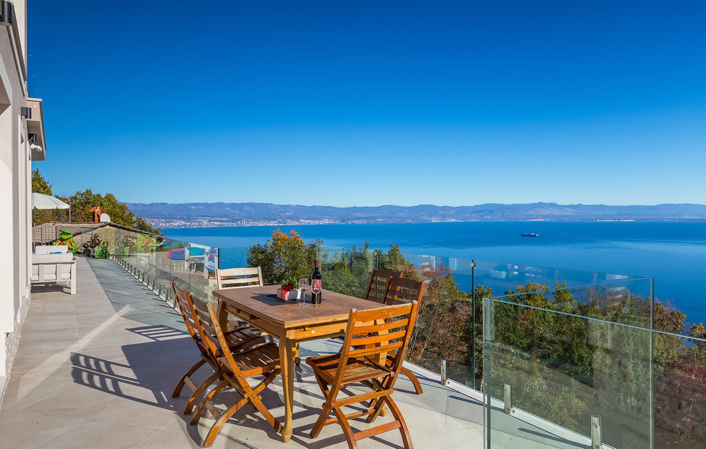 Dans le salon, vous trouverez un canapé confortable d'où vous pourrez profiter d'une vue magnifique sur la mer, idéale pour les soirées cinéma en famille ou entre amis, une petite table et une grande télévision. La porte-fenêtre du salon offre une vue imprenable sur la piscine et le magnifique paysage. Au premier étage se trouvent deux chambres à coucher avec salles de bains en-suite. Une chambre a accès au balcon. À l'extérieur de la villa, sur la terrasse, il y a une table avec 10 chaises où vous pouvez servir un délicieux repas préparé sur le barbecue au charbon de bois disponible. Il y a également des meubles de jardin où vous pourrez vous détendre après une longue journée de plaisir en sirotant une boisson fraîche. Rafraîchissez-vous dans la piscine près de la terrasse ou détendez-vous sur les chaises longues. Les bains de soleil sur les chaises longues complèteront votre journée. Idéale pour passer de belles vacances en famille ou entre amis, la Villa Niazi vous séduira par son environnement calme et magnifique.La Villa Niazi se trouve dans le petit village de Moscenicka Draga, non loin d'Opatija. Autrefois un petit village de pêcheurs, c'est aujourd'hui une destination touristique très prisée.