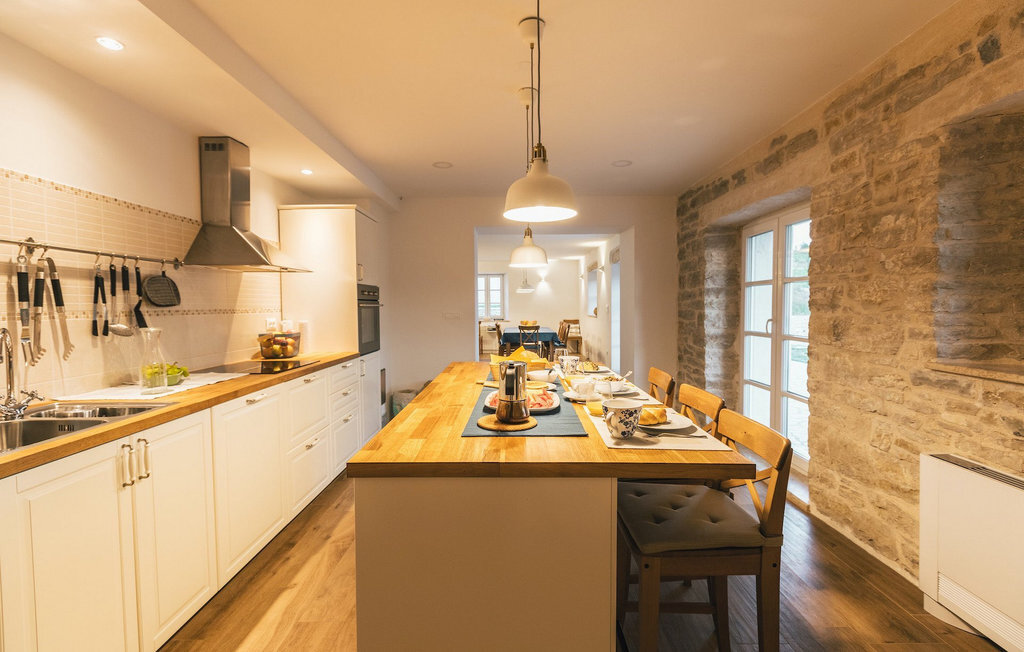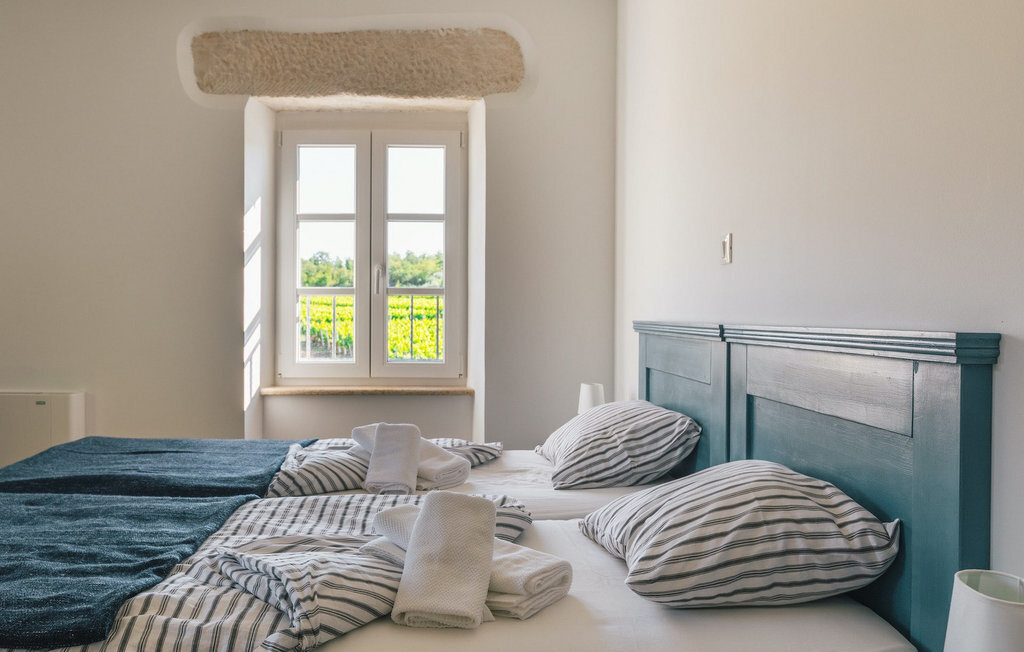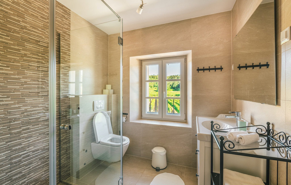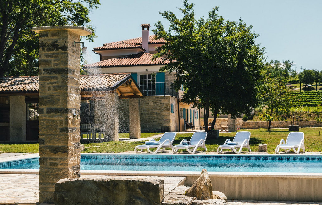 La Villa Kanedolo se trouve dans un endroit idyllique, non loin de la ville romantique de Momjan. La villa est entourée de vignobles romantiques qui rappellent irrésistiblement la Toscane et invitent à tomber amoureux de l'Istrie. La maison elle-même a été aménagée dans un mélange de style rural traditionnel et de style moderne. La villa peut accueillir jusqu'à 9 personnes et se compose de trois étages. Le lumineux salon/salle à manger ouvert avec cuisine se trouve au rez-de-chaussée, tout comme les toilettes pour invités. Les 4 chambres à coucher et les 3 salles de bain sont réparties sur les 2 étages supérieurs. Deux chambres, dont une avec salle de bain privée, se trouvent au premier étage avec une salle de bain séparée. Les deux autres chambres, qui partagent une salle de bain, se trouvent au deuxième étage. La terrasse à l'étage supérieur offre une vue magnifique sur les vignobles et les environs romantiques. Devant le salon et la cuisine se trouve une terrasse couverte avec un coin salon confortable, idéal pour prendre un café le matin ou pour regarder les couchers de soleil avec un verre de Malvazija d'Istrie. Une cuisine extérieure avec barbecue et salle à manger couverte se trouve entre la piscine et la villa. La belle piscine privée est également entourée de nature et offre un excellent rafraîchissement pendant les chaudes journées d'été. Profitez de vos vacances dans ce charmant coin de paradis istrien ! :)