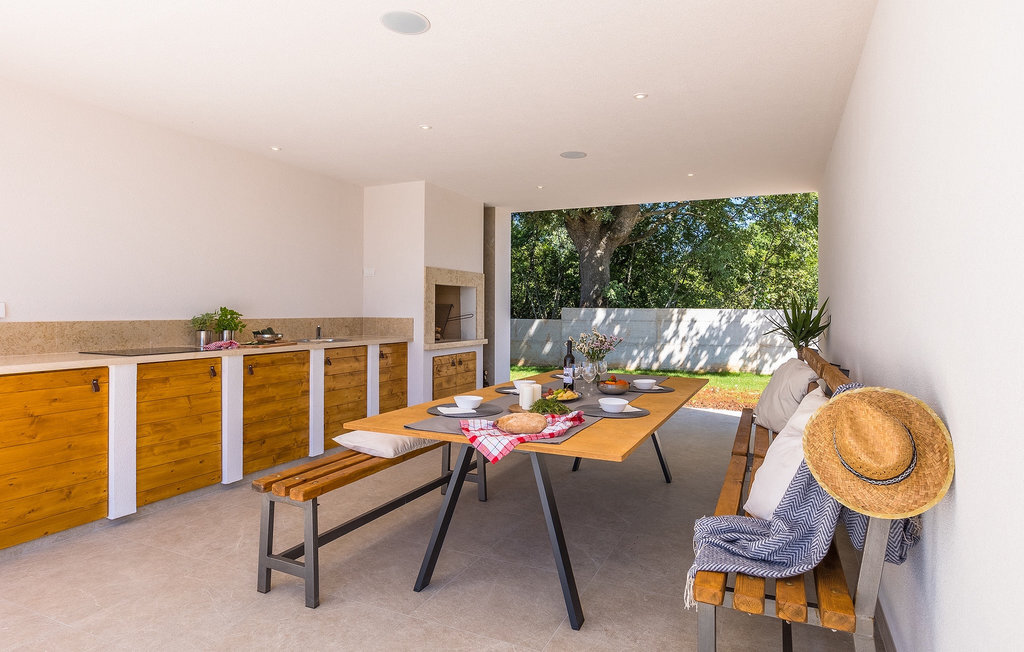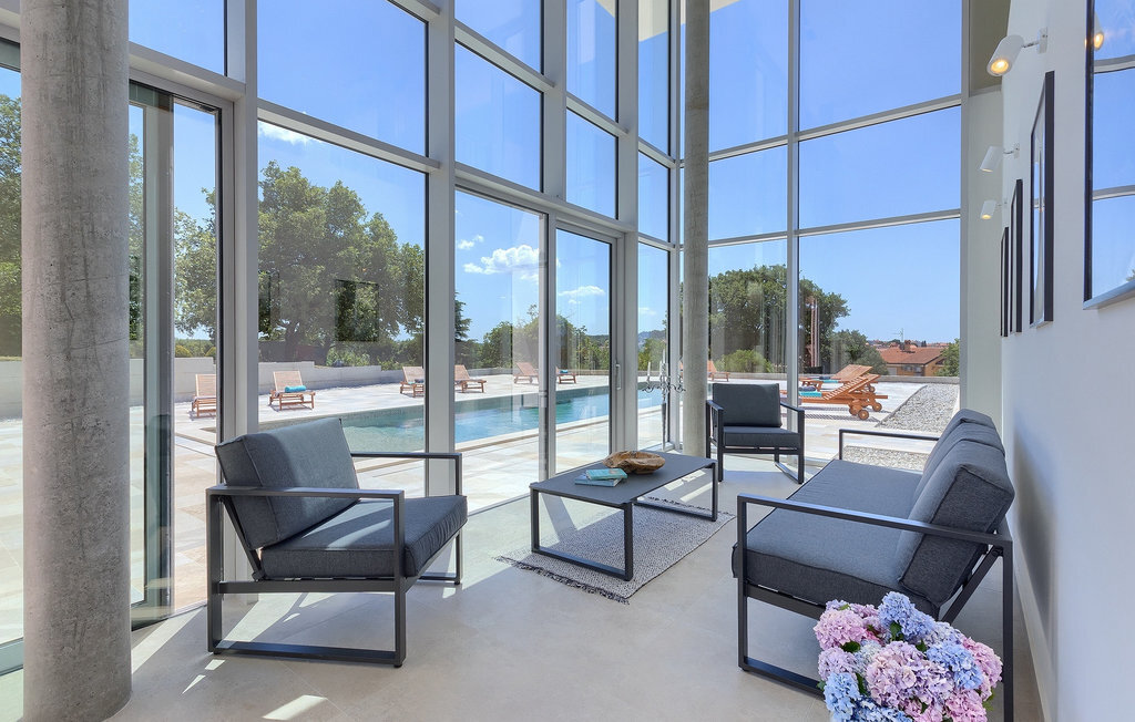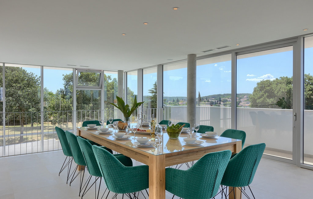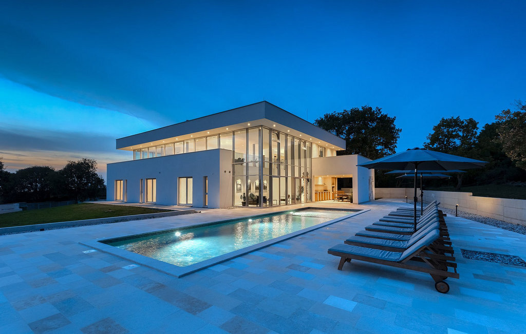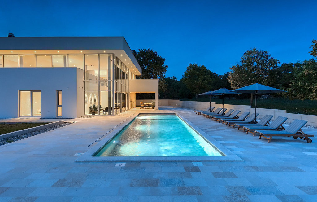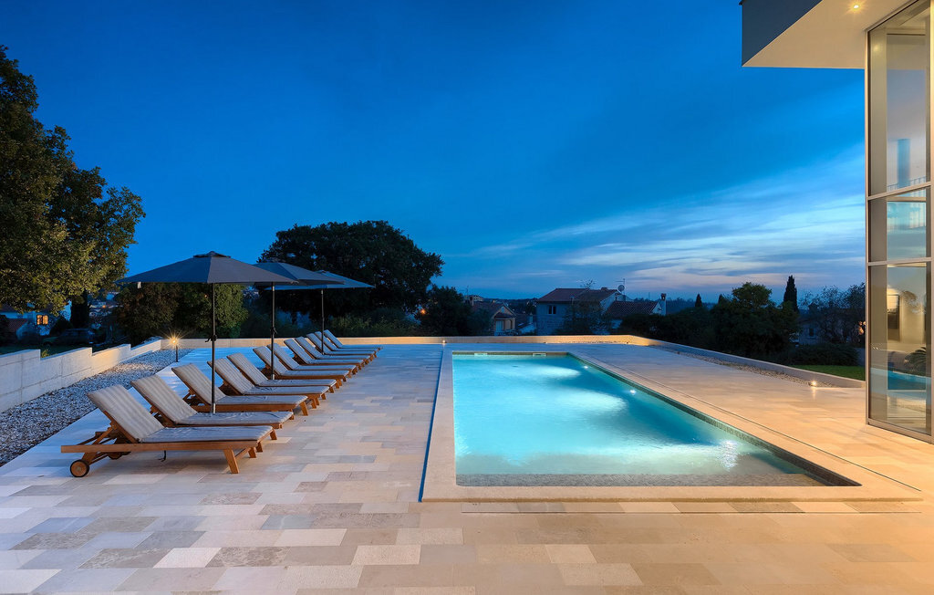 La fabuleuse villa Koko, située à la périphérie de Rovinjsko Selo, une petite ville proche de Rovinj, est la maison de vacances idéale pour accueillir jusqu'à 12 personnes en quête de pure détente et de confort. La villa dispose d'un jardin spacieux avec une grande piscine privée, 12 chaises longues confortables et une salle à manger couverte avec un barbecue au charbon de bois, idéal pour les repas en plein air les jours ensoleillés. L'intérieur de 600 m2 est réparti sur deux étages et comprend un total de 6 chambres à coucher, dont chacune dispose d'une salle de bain privée et de la climatisation. Cinq chambres se trouvent au rez-de-chaussée et une à l'étage. La cuisine entièrement équipée avec coin repas et le salon se trouvent à l'étage supérieur, ce qui permet de profiter d'une vue magnifique sur les environs et la mer. De grandes baies vitrées assurent une lumière naturelle à l'intérieur, qui est aménagé de manière simple mais luxueuse. Pour d'autres moments de détente, un grand jacuzzi intérieur et un sauna sont à votre disposition. Pour un divertissement supplémentaire, la villa dispose d'une salle de cinéma climatisée, équipée d'un grand canapé spacieux avec des zones de couchage et d'assise. La télévision intelligente de 75 pouces avec une image de haute qualité et des haut-parleurs surround renforce l'impression de réalisme de chaque film. Avec le pop-corn chaud du distributeur du cinéma, le divertissement est assuré ! La Villa Koko offre tout ce qu'il faut pour passer des vacances sans souci dans l'intimité de son propre paradis, tout en étant à distance de marche de toutes les commodités telles que restaurants et supermarchés. La baie de Lim n'est qu'à une courte distance en voiture, tout comme la ville romantique de Rovinj et les plages environnantes.Cette villa est située dans un paysage idyllique dans le petit village de Rovinjsko selo, une banlieue calme de Rovinj. Cet endroit se caractérise par ses maisons en pierre construites de manière traditionnelle et par la belle verdure des champs, des vignobles et des forêts environnantes. La situation magnifique de la banlieue se prête parfaitement à l'exploration quotidienne de la vieille ville de Rovinj et de son charme semblable au nôtre. Ressentez la magie de la ville dans ses étroites ruelles médiévales et son environnement méditerranéen chaleureux. Depuis l'église de Sainte-Euphémie, où la plus belle vue sur la ville vous attend. Visitez d'autres sites comme le château sur l'île de Sv. Andrija, le couvent franciscain et les remparts. Rovinj est l'une des villes les plus romantiques de Croatie, avec de magnifiques couchers de soleil qui vous couperont le souffle. Les environs offrent toutefois de nombreuses possibilités de loisirs : Faire du vélo, de l'équitation, du jogging.