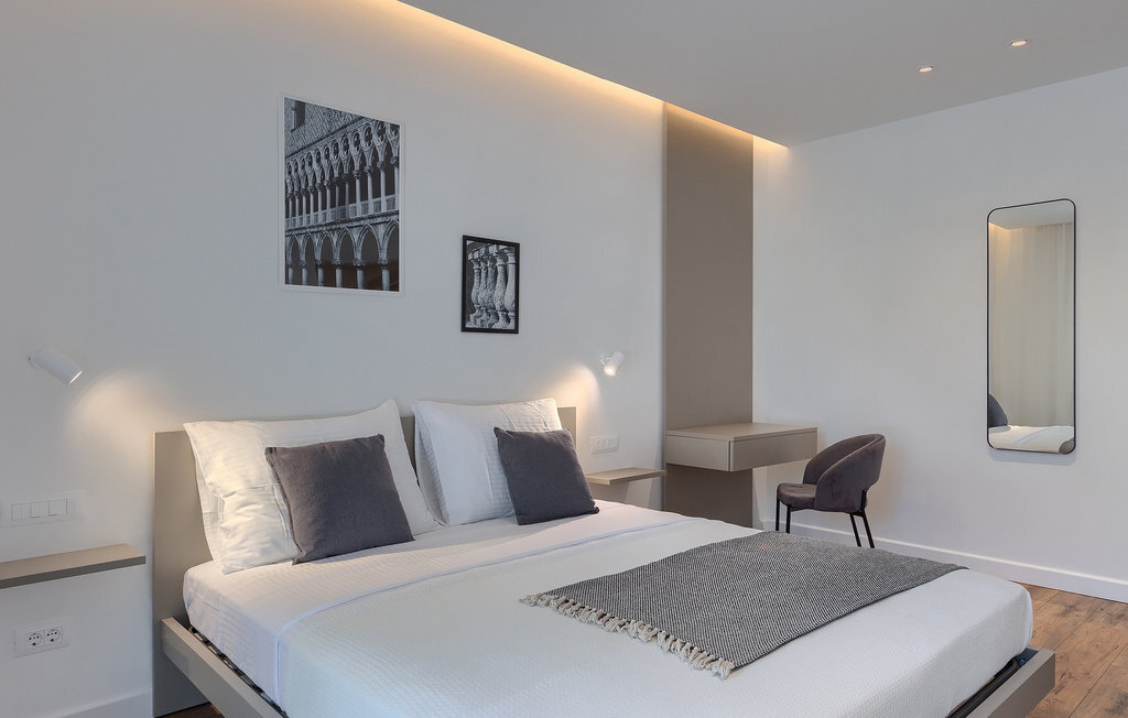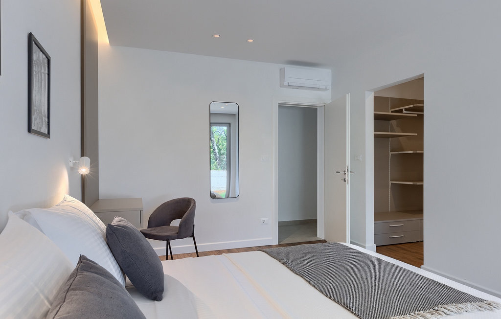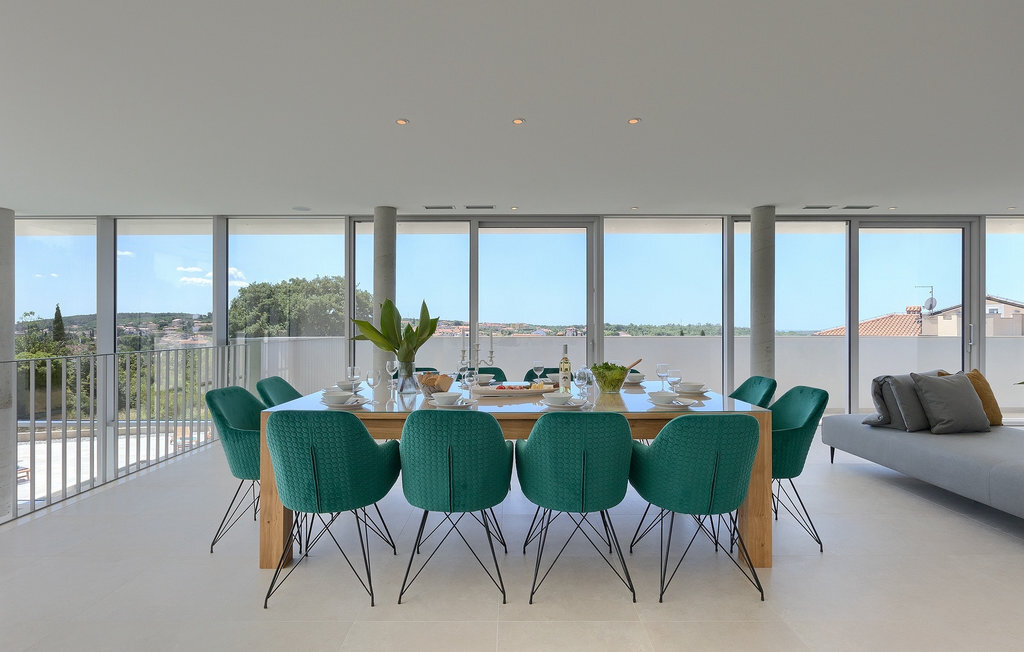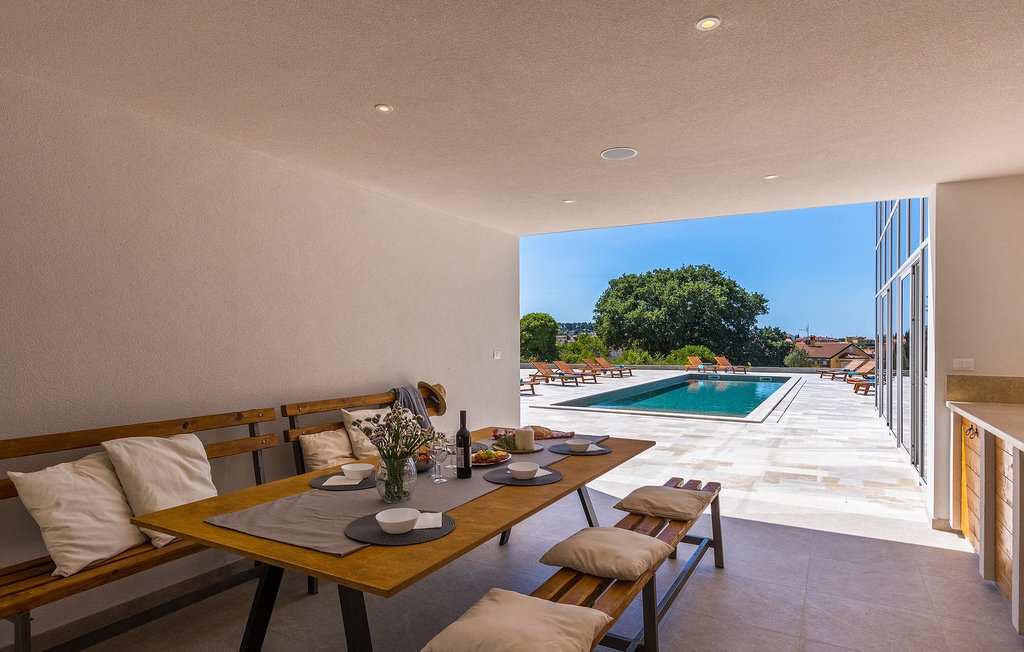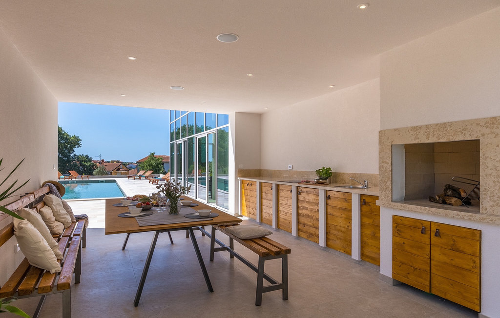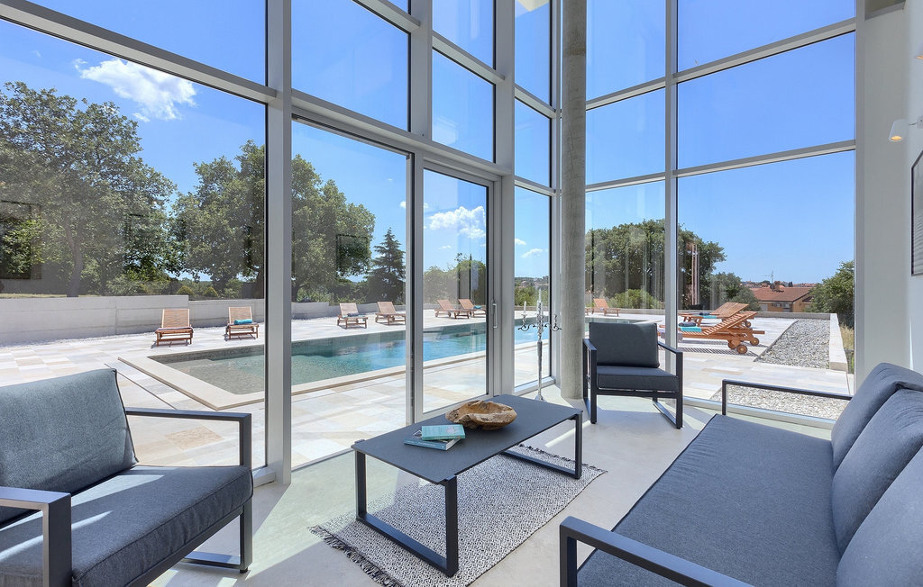 La fabuleuse villa Koko, située à la périphérie de Rovinjsko Selo, une petite ville proche de Rovinj, est la maison de vacances idéale pour accueillir jusqu'à 12 personnes en quête de pure détente et de confort. La villa dispose d'un jardin spacieux avec une grande piscine privée, 12 chaises longues confortables et une salle à manger couverte avec un barbecue au charbon de bois, idéal pour les repas en plein air les jours ensoleillés. L'intérieur de 600 m2 est réparti sur deux étages et comprend un total de 6 chambres à coucher, dont chacune dispose d'une salle de bain privée et de la climatisation. Cinq chambres se trouvent au rez-de-chaussée et une à l'étage. La cuisine entièrement équipée avec coin repas et le salon se trouvent à l'étage supérieur, ce qui permet de profiter d'une vue magnifique sur les environs et la mer. De grandes baies vitrées assurent une lumière naturelle à l'intérieur, qui est aménagé de manière simple mais luxueuse. Pour d'autres moments de détente, un grand jacuzzi intérieur et un sauna sont à votre disposition. Pour un divertissement supplémentaire, la villa dispose d'une salle de cinéma climatisée, équipée d'un grand canapé spacieux avec des zones de couchage et d'assise. La télévision intelligente de 75 pouces avec une image de haute qualité et des haut-parleurs surround renforce l'impression de réalisme de chaque film. Avec le pop-corn chaud du distributeur du cinéma, le divertissement est assuré ! La Villa Koko offre tout ce qu'il faut pour passer des vacances sans souci dans l'intimité de son propre paradis, tout en étant à distance de marche de toutes les commodités telles que restaurants et supermarchés. La baie de Lim n'est qu'à une courte distance en voiture, tout comme la ville romantique de Rovinj et les plages environnantes.Cette villa est située dans un paysage idyllique dans le petit village de Rovinjsko selo, une banlieue calme de Rovinj. Cet endroit se caractérise par ses maisons en pierre construites de manière traditionnelle et par la belle verdure des champs, des vignobles et des forêts environnantes. La situation magnifique de la banlieue se prête parfaitement à l'exploration quotidienne de la vieille ville de Rovinj et de son charme semblable au nôtre. Ressentez la magie de la ville dans ses étroites ruelles médiévales et son environnement méditerranéen chaleureux. Depuis l'église de Sainte-Euphémie, où la plus belle vue sur la ville vous attend. Visitez d'autres sites comme le château sur l'île de Sv. Andrija, le couvent franciscain et les remparts. Rovinj est l'une des villes les plus romantiques de Croatie, avec de magnifiques couchers de soleil qui vous couperont le souffle. Les environs offrent toutefois de nombreuses possibilités de loisirs : Faire du vélo, de l'équitation, du jogging.