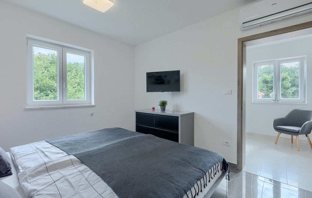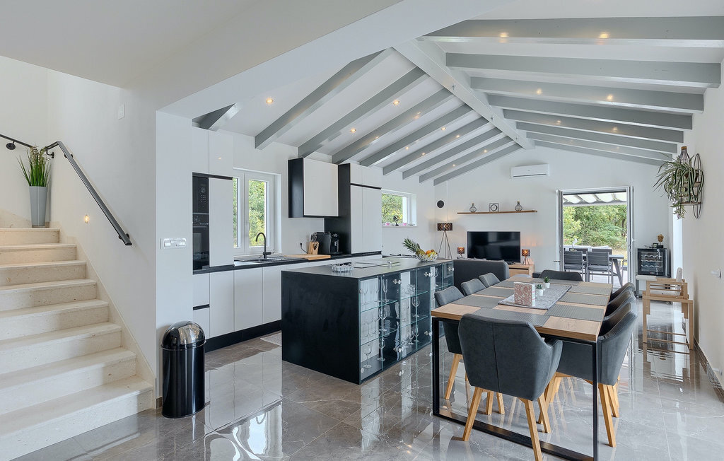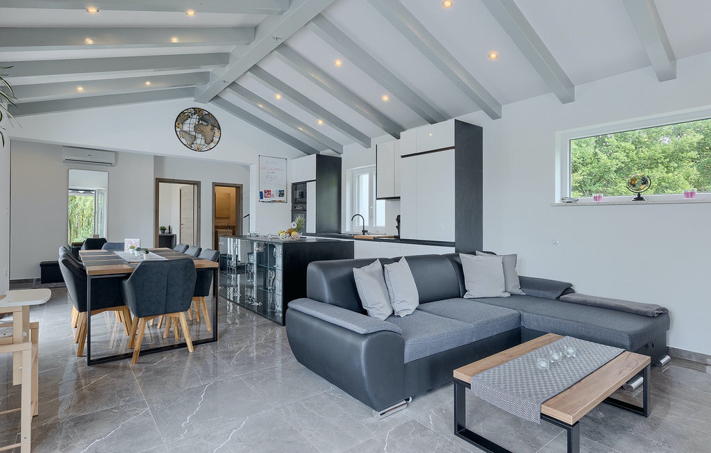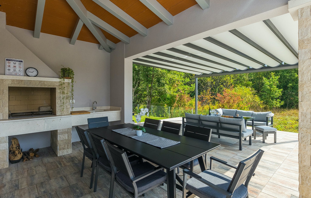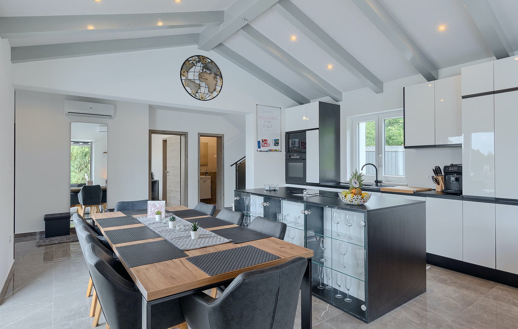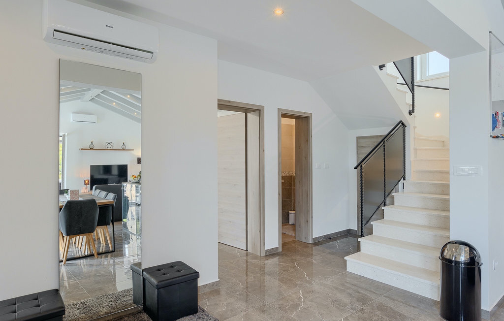 La villa Simone Paradiso bénéficie d'une excellente situation près de la ville côtière de Rabac. L'espace extérieur de la villa dispose d'une piscine privée zero edge et d'une douche extérieure. Profitez des chaises longues autour de la piscine pour vous détendre. Un barbecue couvert est à votre disposition pour préparer de délicieux repas. Un coin repas extérieur se trouve également sur la terrasse. Différentes activités sportives sont disponibles sur la propriété. La villa peut accueillir 8 personnes au total. L'intérieur de la villa a été aménagé avec style et une grande attention a été accordée aux détails. Au rez-de-chaussée se trouve une cuisine entièrement équipée qui communique avec le salon. Le salon donne accès à la terrasse, qui est équipée de meubles de jardin. C'est l'endroit idéal pour savourer votre café du matin. Il y a également une chambre à coucher avec salle de bain privée et des toilettes pour les invités. Au premier étage se trouvent deux autres chambres confortables, chacune avec sa propre salle de bain. L'une des chambres donne accès au balcon. La villa est entièrement climatisée et dispose d'un accès à Internet ainsi que d'un parking privé pouvant accueillir jusqu'à 6 voitures. La Villa Simone Paradiso offre tout ce dont on peut rêver pour des vacances reposantes et relaxantes.La Villa Simone Paradiso se trouve à seulement 9 km de la plage de Rabac. Les environs offrent une multitude de magnifiques plages de galets et de criques cachées aux eaux cristallines. La ville côtière de Rabac se trouve à une courte distance en voiture. Ici, l'offre d'activités sportives aquatiques est importante. Nous vous recommandons de faire une promenade romantique le long de la promenade. En ce qui concerne sa situation, la Villa Simone Paradiso est un excellent point de départ pour des excursions. Visitez la ville historique de Pula, où se trouve le charmant amphithéâtre romain. De nombreux films, événements culturels et concerts y sont organisés. Nous vous recommandons également de visiter la ville pittoresque de Rovinj. La particularité de cette ville est que la vieille ville se trouve sur une petite péninsule. Explorez les ruelles étroites de la ville et savourez votre première tasse de café dans l'un des nombreux cafés. Les restaurants proposent un excellent choix de spécialités typiques que vous devez absolument goûter. Rendez-vous en Istrie et découvrez les beautés de cette région.