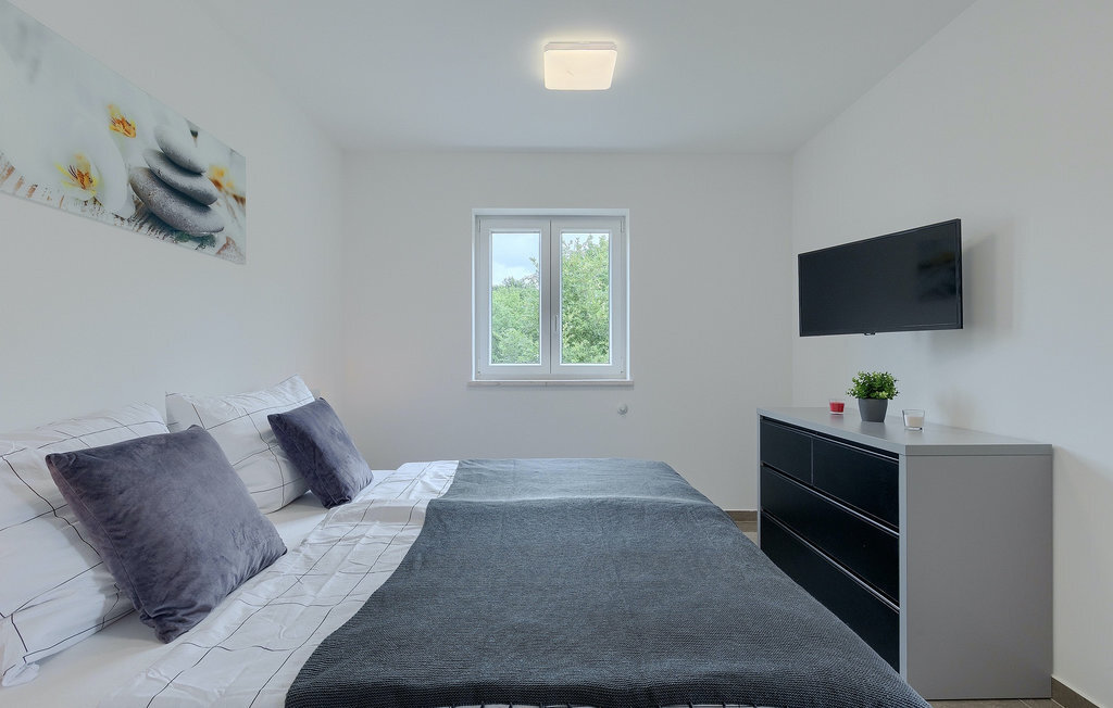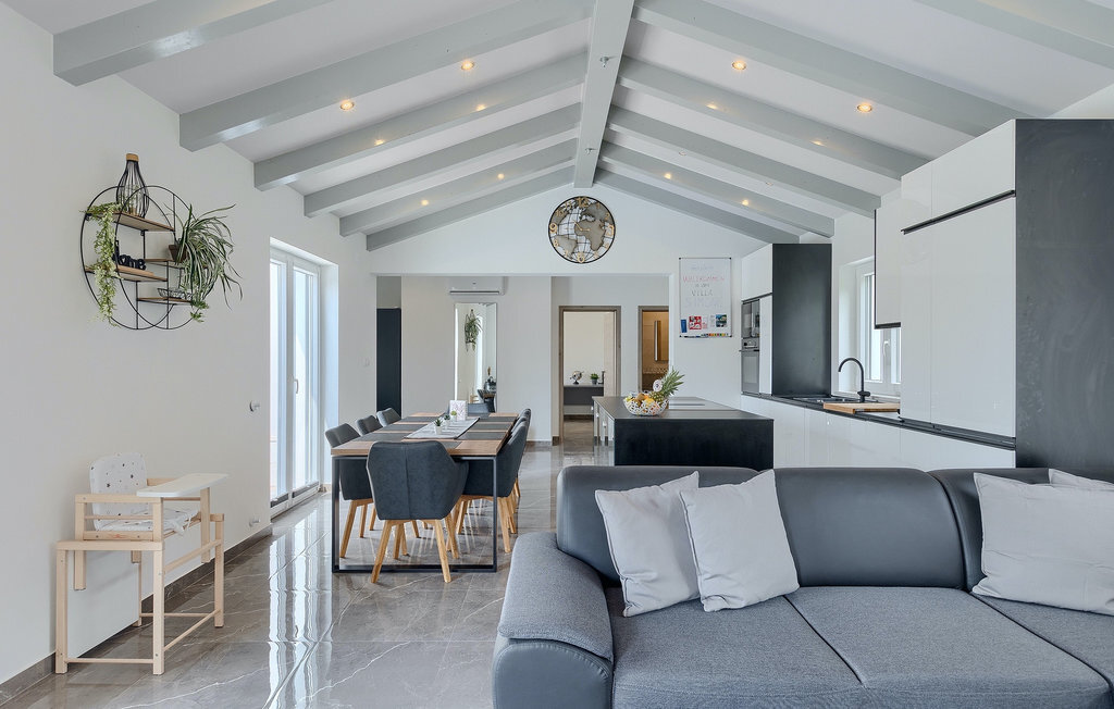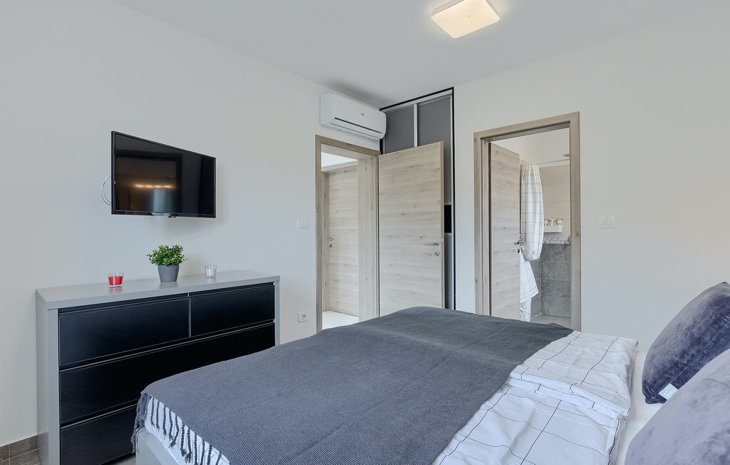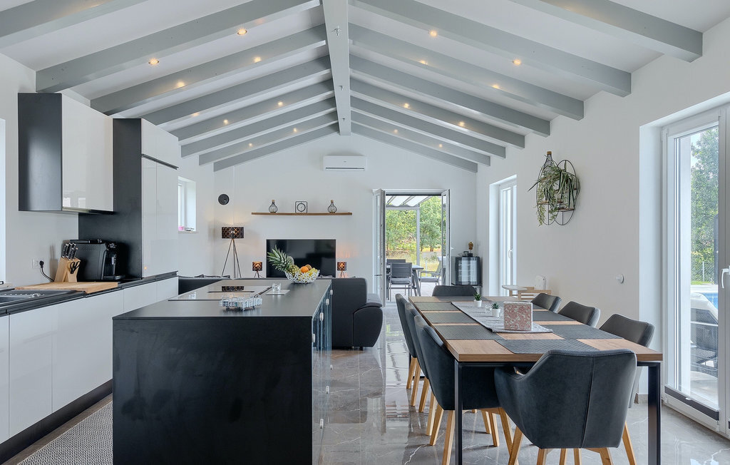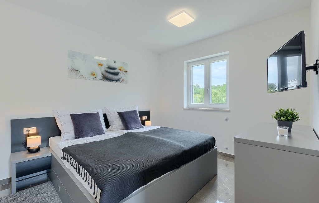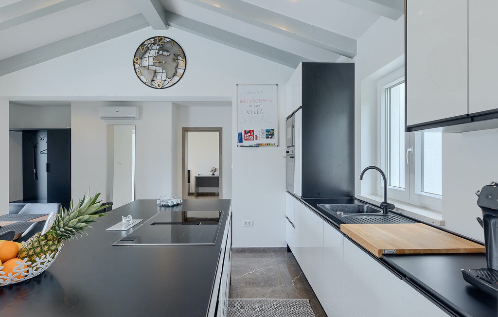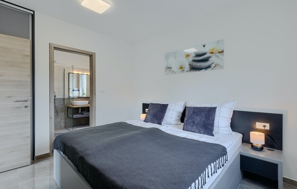 La villa Simone Paradiso bénéficie d'une excellente situation près de la ville côtière de Rabac. L'espace extérieur de la villa dispose d'une piscine privée zero edge et d'une douche extérieure. Profitez des chaises longues autour de la piscine pour vous détendre. Un barbecue couvert est à votre disposition pour préparer de délicieux repas. Un coin repas extérieur se trouve également sur la terrasse. Différentes activités sportives sont disponibles sur la propriété. La villa peut accueillir 8 personnes au total. L'intérieur de la villa a été aménagé avec style et une grande attention a été accordée aux détails. Au rez-de-chaussée se trouve une cuisine entièrement équipée qui communique avec le salon. Le salon donne accès à la terrasse, qui est équipée de meubles de jardin. C'est l'endroit idéal pour savourer votre café du matin. Il y a également une chambre à coucher avec salle de bain privée et des toilettes pour les invités. Au premier étage se trouvent deux autres chambres confortables, chacune avec sa propre salle de bain. L'une des chambres donne accès au balcon. La villa est entièrement climatisée et dispose d'un accès à Internet ainsi que d'un parking privé pouvant accueillir jusqu'à 6 voitures. La Villa Simone Paradiso offre tout ce dont on peut rêver pour des vacances reposantes et relaxantes.La Villa Simone Paradiso se trouve à seulement 9 km de la plage de Rabac. Les environs offrent une multitude de magnifiques plages de galets et de criques cachées aux eaux cristallines. La ville côtière de Rabac se trouve à une courte distance en voiture. Ici, l'offre d'activités sportives aquatiques est importante. Nous vous recommandons de faire une promenade romantique le long de la promenade. En ce qui concerne sa situation, la Villa Simone Paradiso est un excellent point de départ pour des excursions. Visitez la ville historique de Pula, où se trouve le charmant amphithéâtre romain. De nombreux films, événements culturels et concerts y sont organisés. Nous vous recommandons également de visiter la ville pittoresque de Rovinj. La particularité de cette ville est que la vieille ville se trouve sur une petite péninsule. Explorez les ruelles étroites de la ville et savourez votre première tasse de café dans l'un des nombreux cafés. Les restaurants proposent un excellent choix de spécialités typiques que vous devez absolument goûter. Rendez-vous en Istrie et découvrez les beautés de cette région.