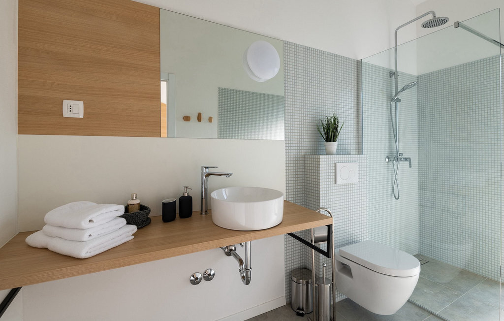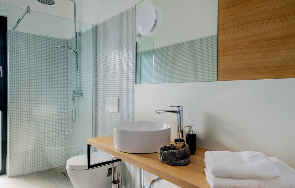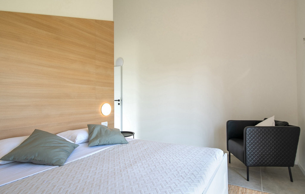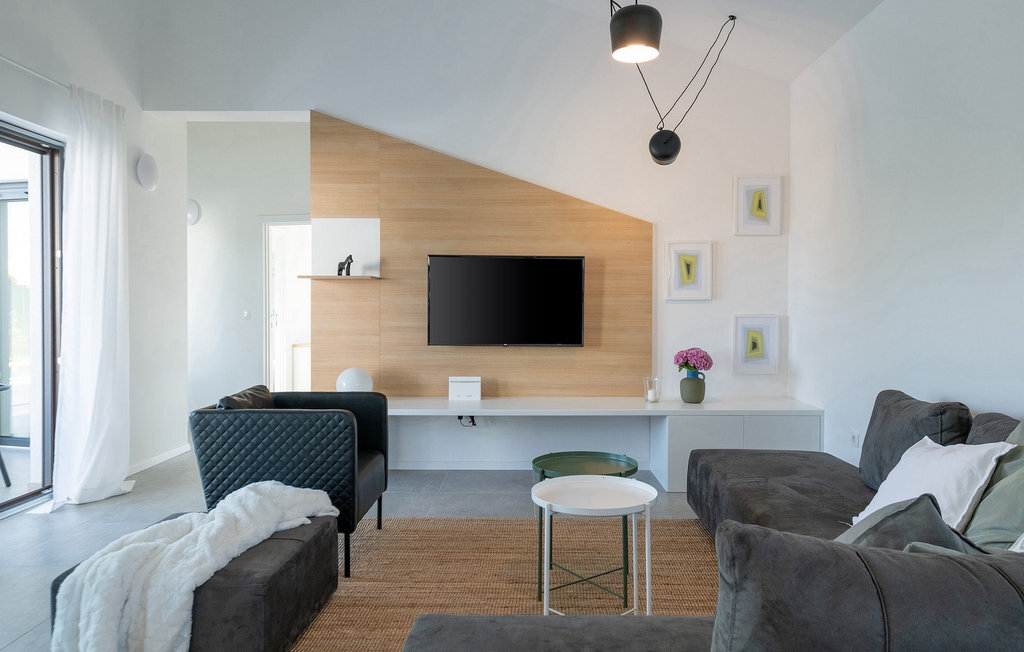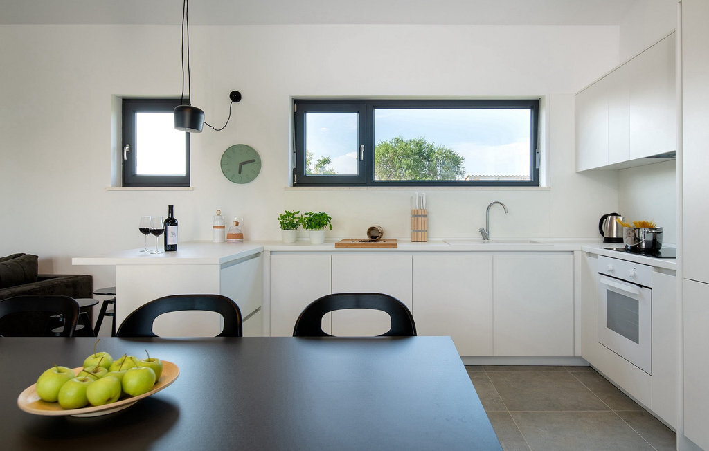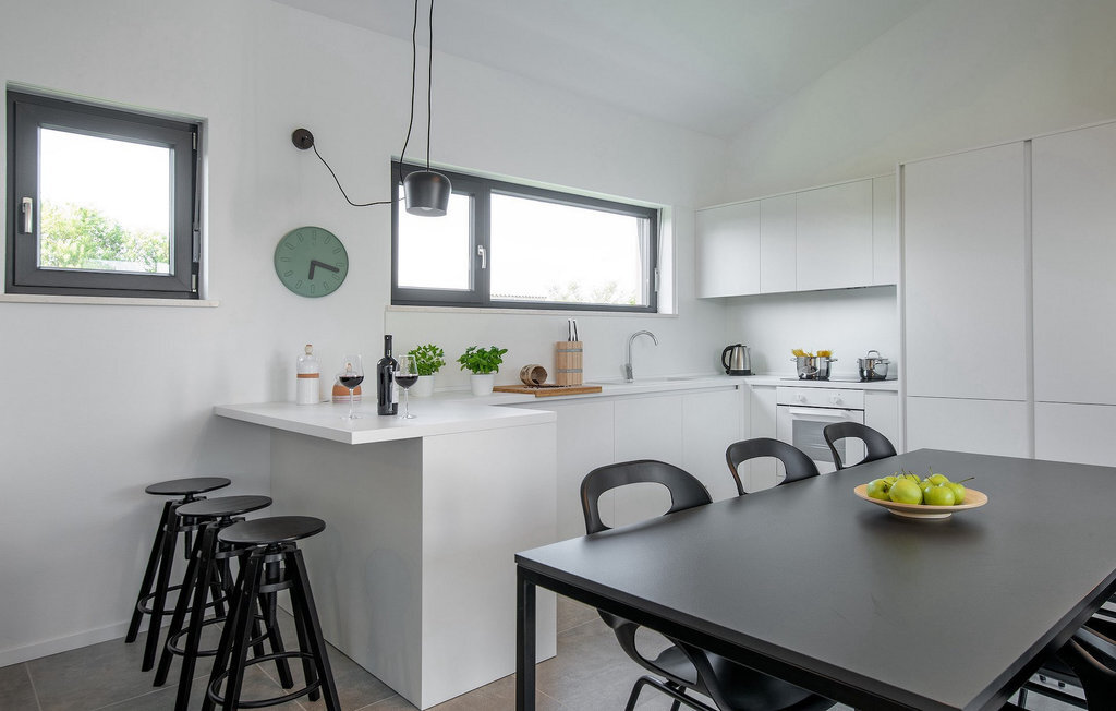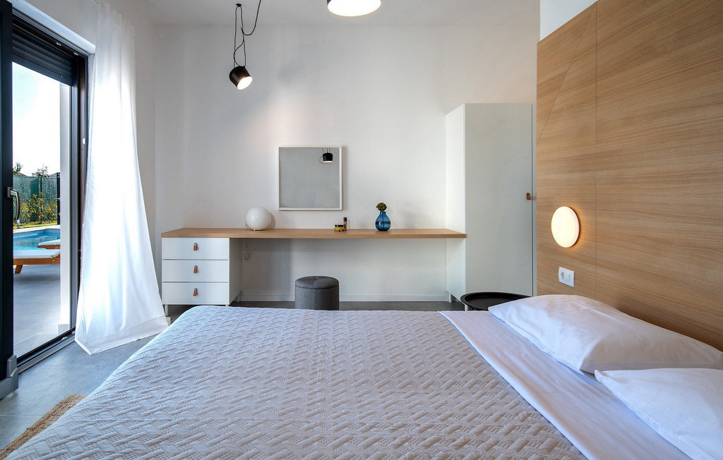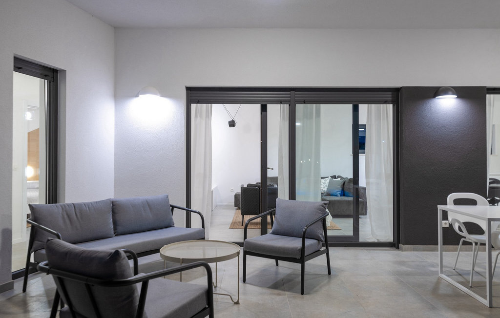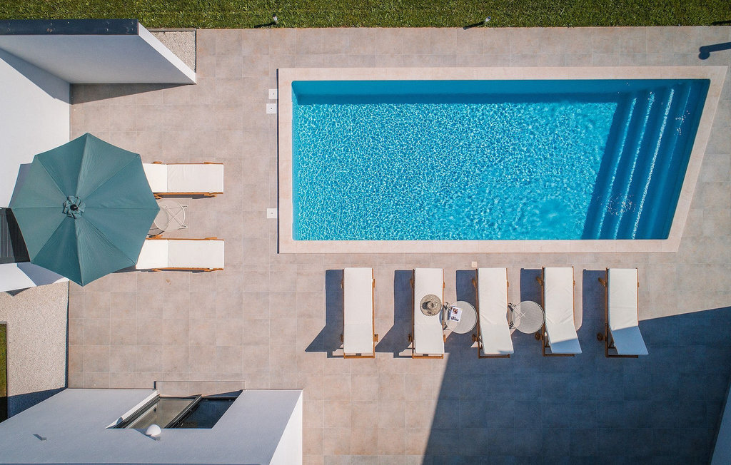 Le salon/salle à manger et la cuisine offrent un accès direct à l'extérieur, où vous attend le point fort de la villa : la piscine privée, qui vous rafraîchira pendant les chaudes journées d'été.