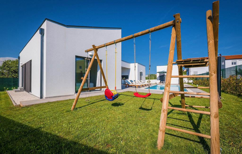 L'offre est complétée par une salle à manger extérieure avec barbecue et une aire de jeux pour les enfants, que les plus petits apprécieront certainement.