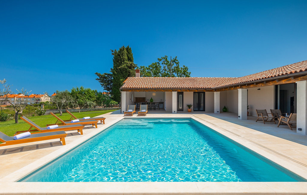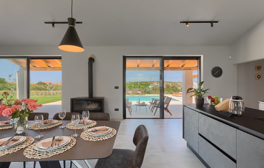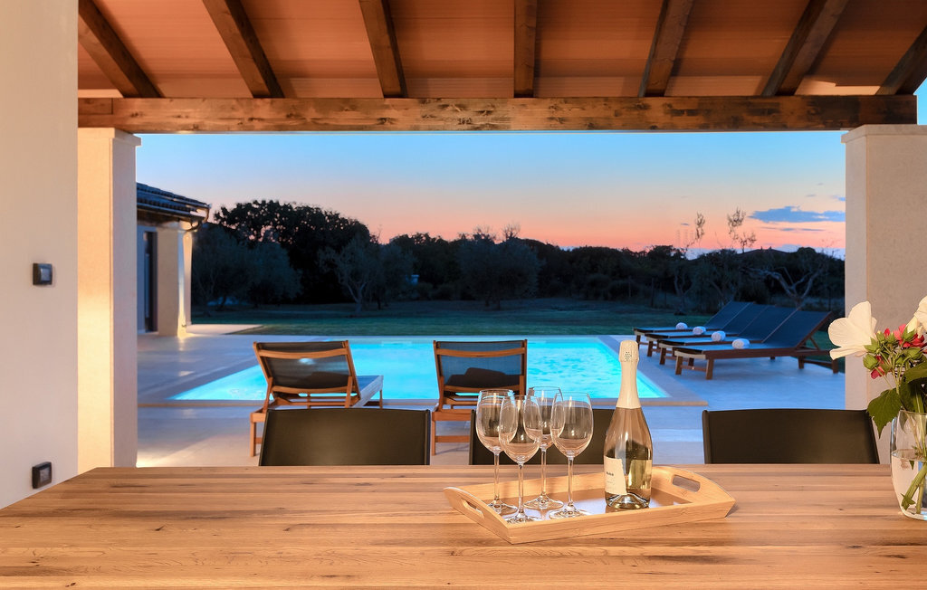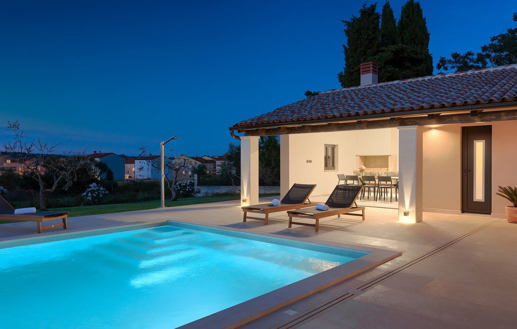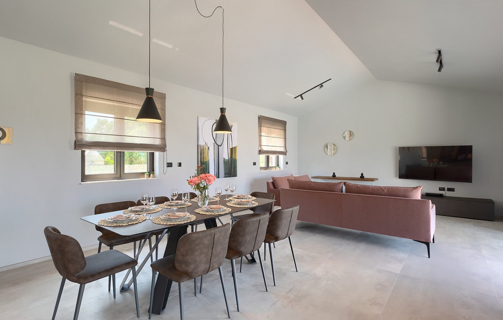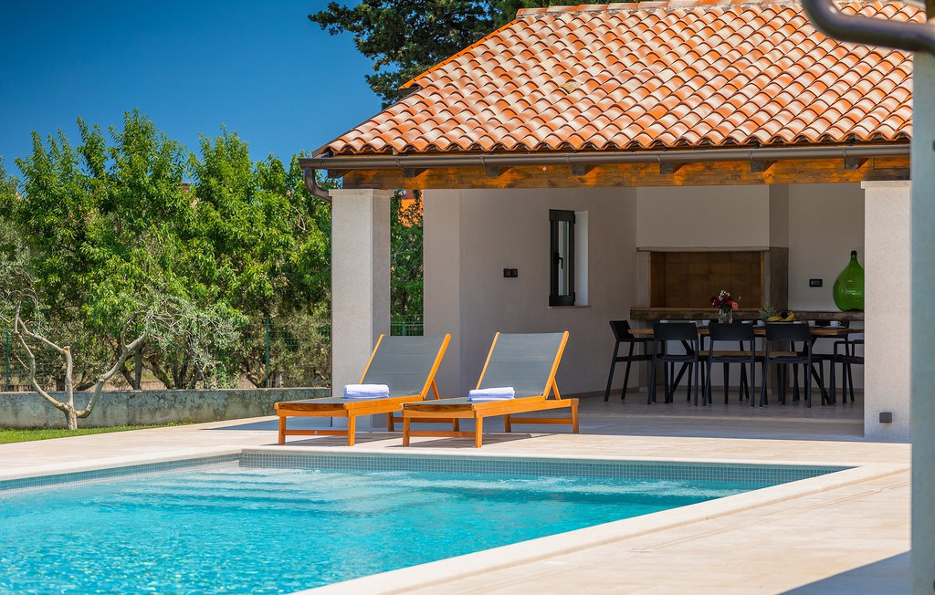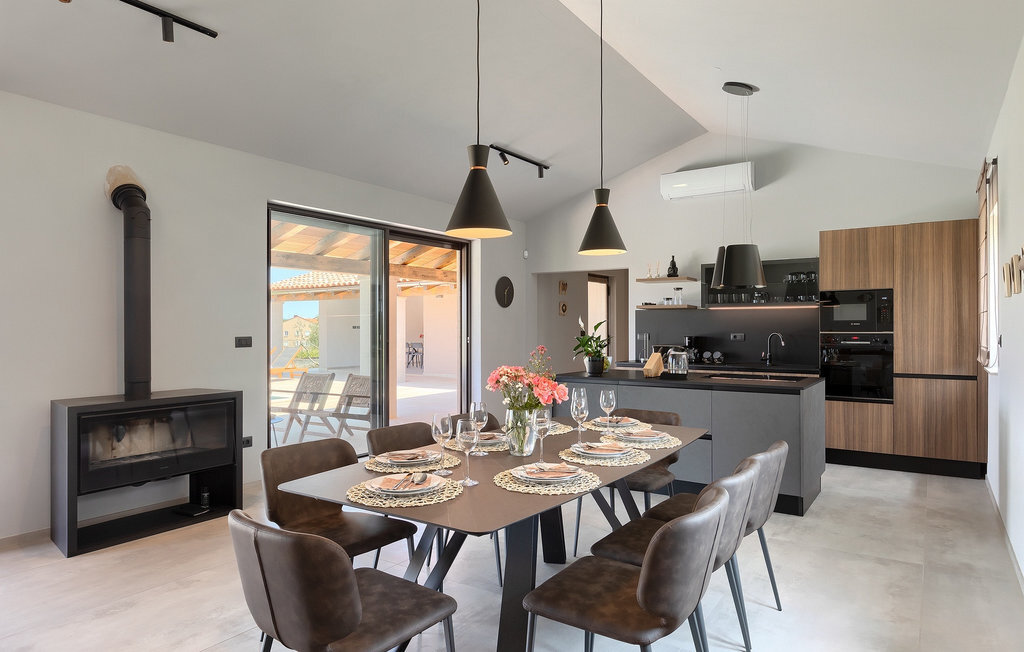 Préparer vos grillades préférées pour votre famille en Istrie, avec vue sur une piscine privée et un magnifique environnement naturel, cela ressemble à un rêve - n'est-ce pas ? Tout cela est possible à la Villa Marialba, où vous pourrez profiter d'un jardin entouré d'oliviers et d'une salle à manger en plein air, dont l'espace invite à des réunions et des repas conviviaux au bord de la piscine. Cette maison de 170 mètres carrés peut accueillir jusqu'à 6 personnes avec un total de 3 chambres à coucher équipées d'un lit double, d'une télévision et d'un fauteuil, ainsi que des salles de bain privées modernes. Le cœur de cette maison est certainement une nouvelle cuisine entièrement équipée avec salle à manger et un salon qui vous coupera le souffle avec son mobilier soigneusement choisi et sa cheminée. Depuis le salon, vous avez une vue magnifique sur la piscine et un accès direct à l'espace piscine. Si vous êtes à la recherche d'un endroit idyllique où vous pourrez profiter du temps ensoleillé sur les chaises longues disponibles avec des rafraîchissements dans la luxueuse piscine privée, ne manquez pas de réserver la Villa Marialba à Pula, qui est un excellent choix pour ce type de vacances!La Villa Marialba est située au cœur de l'Istrie, à mi-chemin entre Pula et Medulin. Près de la villa se trouve l'une des plages les plus célèbres de cette partie de l'Istrie, Pjescana uvala, qui, avec sa couleur turquoise de la mer et sa large plage, offre un cadre agréable pour nager et prendre des bains de soleil. Pour des vacances en famille, le parc d'aventure Jangalooz Pomer est l'endroit idéal, où le plaisir et les rires sont garantis. Une destination à ne pas manquer est certainement Pula, et les attractions particulières sont : Pula Arena et l'amphithéâtre, le musée archéologique d'Istrie et le temple d'Auguste.