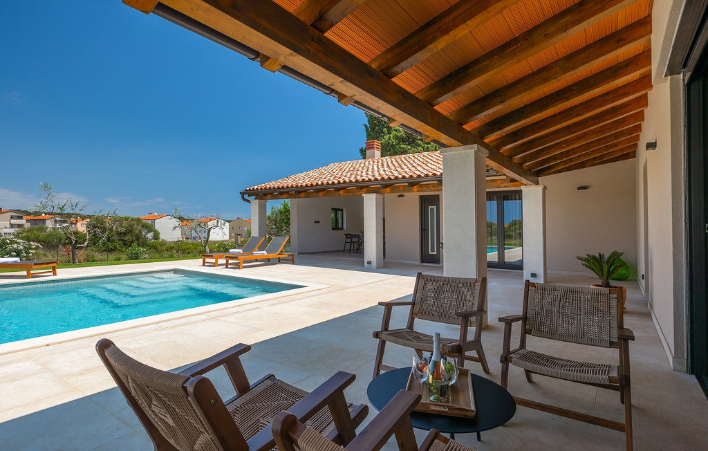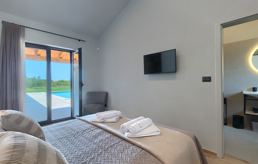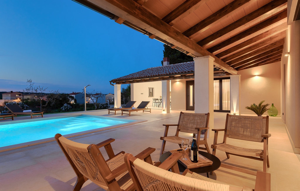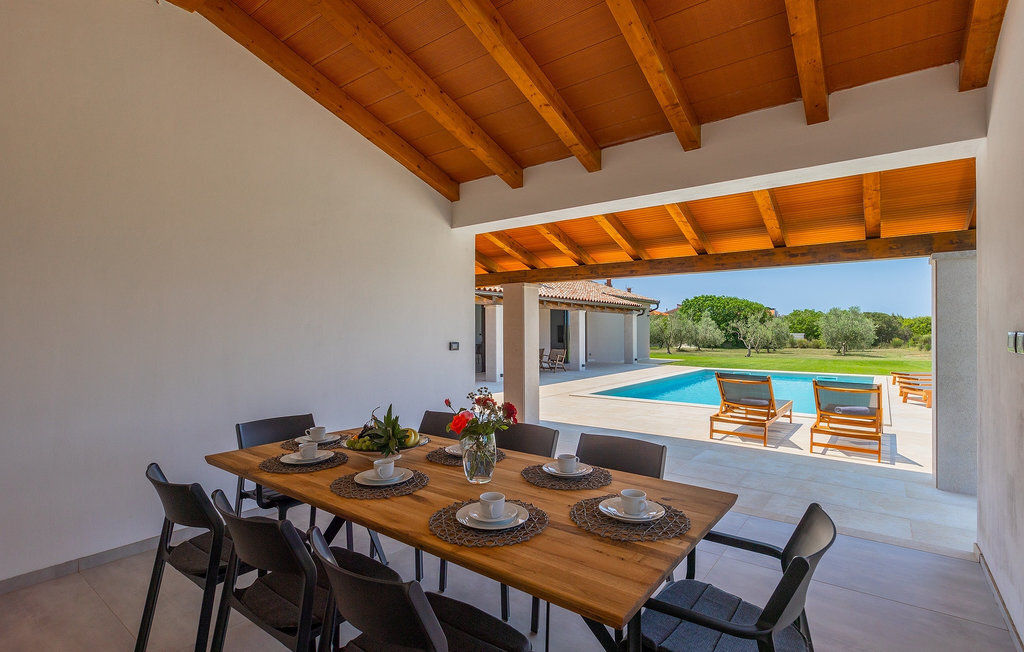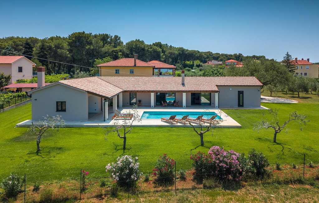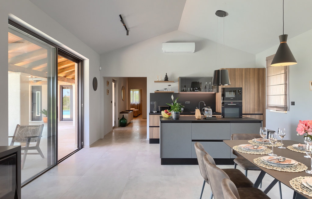 Préparer vos grillades préférées pour votre famille en Istrie, avec vue sur une piscine privée et un magnifique environnement naturel, cela ressemble à un rêve - n'est-ce pas ? Tout cela est possible à la Villa Marialba, où vous pourrez profiter d'un jardin entouré d'oliviers et d'une salle à manger en plein air, dont l'espace invite à des réunions et des repas conviviaux au bord de la piscine. Cette maison de 170 mètres carrés peut accueillir jusqu'à 6 personnes avec un total de 3 chambres à coucher équipées d'un lit double, d'une télévision et d'un fauteuil, ainsi que des salles de bain privées modernes. Le cœur de cette maison est certainement une nouvelle cuisine entièrement équipée avec salle à manger et un salon qui vous coupera le souffle avec son mobilier soigneusement choisi et sa cheminée. Depuis le salon, vous avez une vue magnifique sur la piscine et un accès direct à l'espace piscine. Si vous êtes à la recherche d'un endroit idyllique où vous pourrez profiter du temps ensoleillé sur les chaises longues disponibles avec des rafraîchissements dans la luxueuse piscine privée, ne manquez pas de réserver la Villa Marialba à Pula, qui est un excellent choix pour ce type de vacances!La Villa Marialba est située au cœur de l'Istrie, à mi-chemin entre Pula et Medulin. Près de la villa se trouve l'une des plages les plus célèbres de cette partie de l'Istrie, Pjescana uvala, qui, avec sa couleur turquoise de la mer et sa large plage, offre un cadre agréable pour nager et prendre des bains de soleil. Pour des vacances en famille, le parc d'aventure Jangalooz Pomer est l'endroit idéal, où le plaisir et les rires sont garantis. Une destination à ne pas manquer est certainement Pula, et les attractions particulières sont : Pula Arena et l'amphithéâtre, le musée archéologique d'Istrie et le temple d'Auguste.
