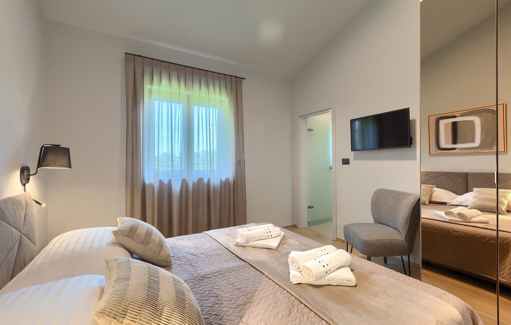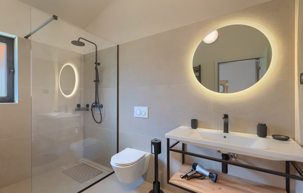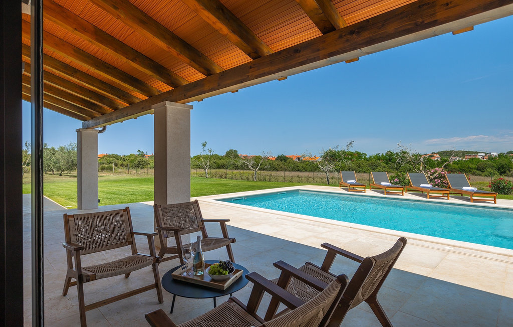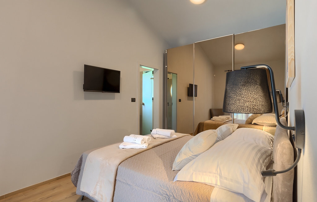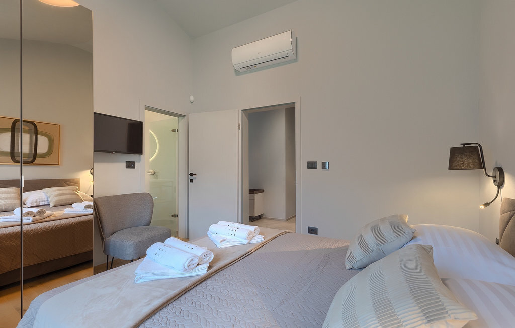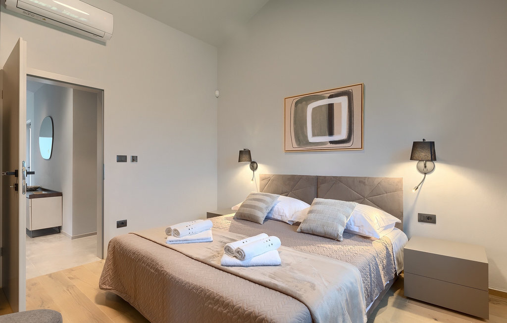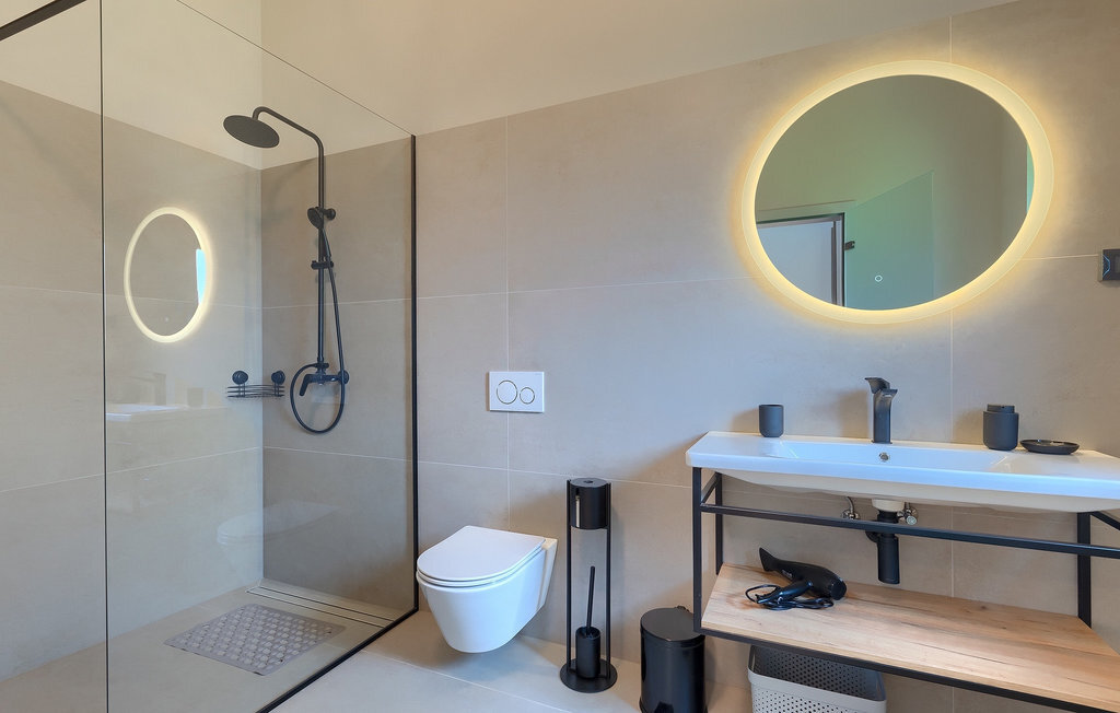 Préparer vos grillades préférées pour votre famille en Istrie, avec vue sur une piscine privée et un magnifique environnement naturel, cela ressemble à un rêve - n'est-ce pas ? Tout cela est possible à la Villa Marialba, où vous pourrez profiter d'un jardin entouré d'oliviers et d'une salle à manger en plein air, dont l'espace invite à des réunions et des repas conviviaux au bord de la piscine. Cette maison de 170 mètres carrés peut accueillir jusqu'à 6 personnes avec un total de 3 chambres à coucher équipées d'un lit double, d'une télévision et d'un fauteuil, ainsi que des salles de bain privées modernes. Le cœur de cette maison est certainement une nouvelle cuisine entièrement équipée avec salle à manger et un salon qui vous coupera le souffle avec son mobilier soigneusement choisi et sa cheminée. Depuis le salon, vous avez une vue magnifique sur la piscine et un accès direct à l'espace piscine. Si vous êtes à la recherche d'un endroit idyllique où vous pourrez profiter du temps ensoleillé sur les chaises longues disponibles avec des rafraîchissements dans la luxueuse piscine privée, ne manquez pas de réserver la Villa Marialba à Pula, qui est un excellent choix pour ce type de vacances!La Villa Marialba est située au cœur de l'Istrie, à mi-chemin entre Pula et Medulin. Près de la villa se trouve l'une des plages les plus célèbres de cette partie de l'Istrie, Pjescana uvala, qui, avec sa couleur turquoise de la mer et sa large plage, offre un cadre agréable pour nager et prendre des bains de soleil. Pour des vacances en famille, le parc d'aventure Jangalooz Pomer est l'endroit idéal, où le plaisir et les rires sont garantis. Une destination à ne pas manquer est certainement Pula, et les attractions particulières sont : Pula Arena et l'amphithéâtre, le musée archéologique d'Istrie et le temple d'Auguste.