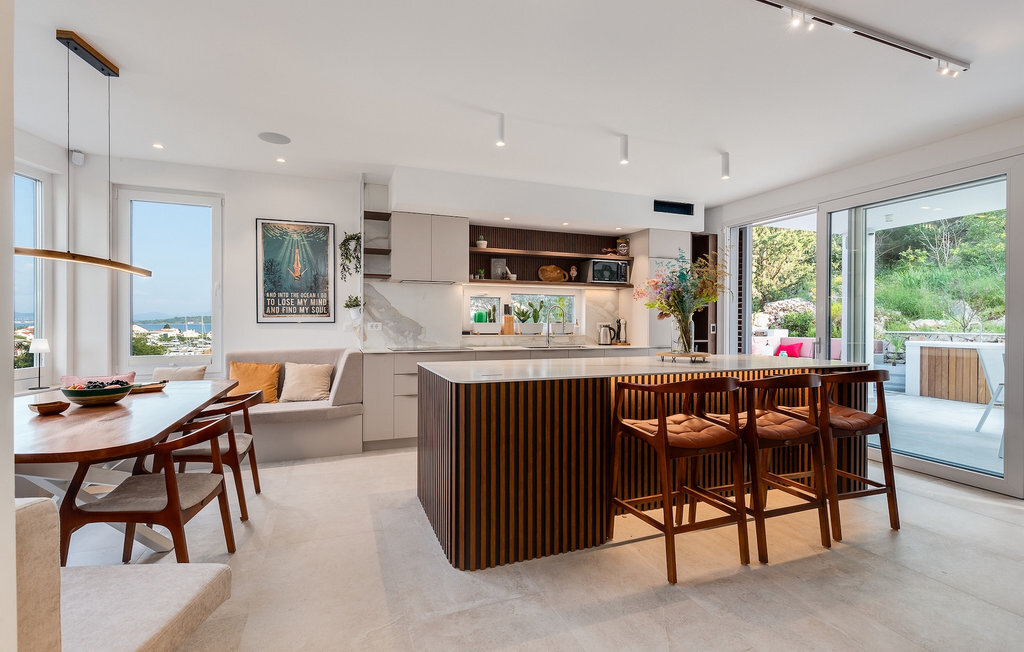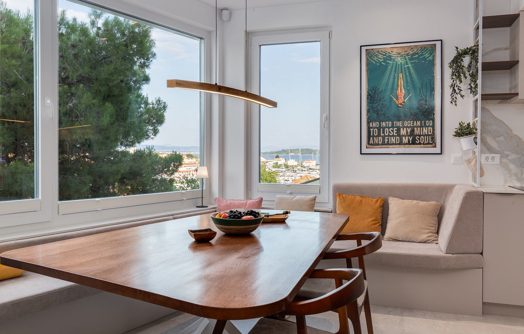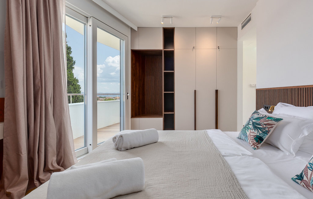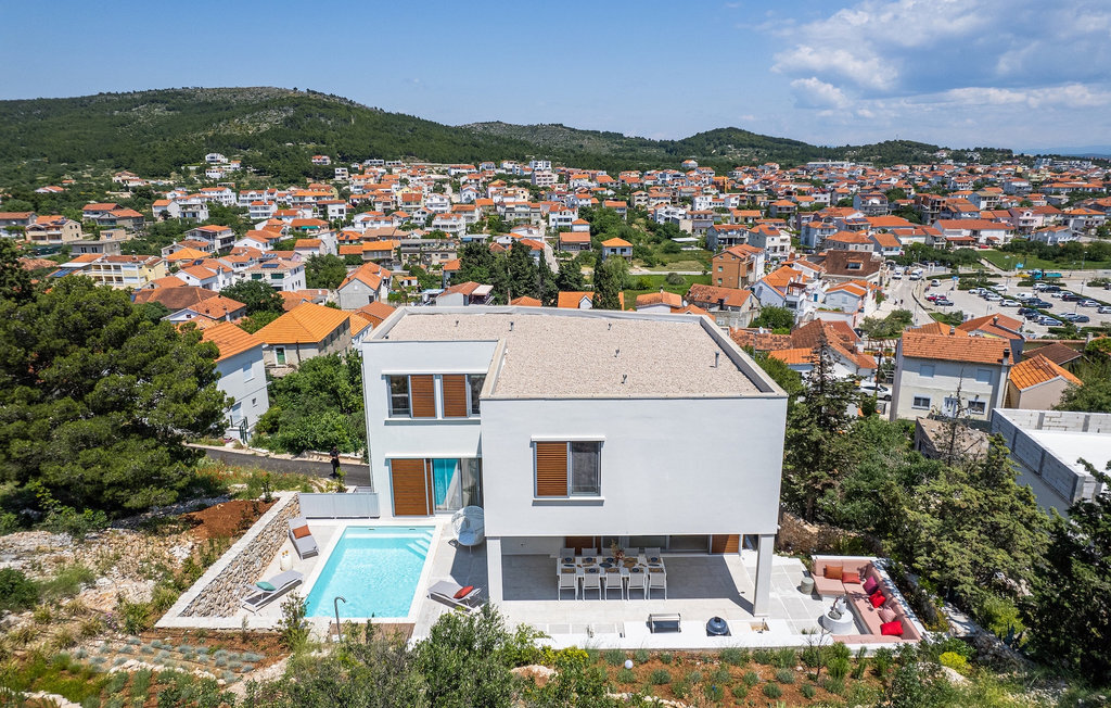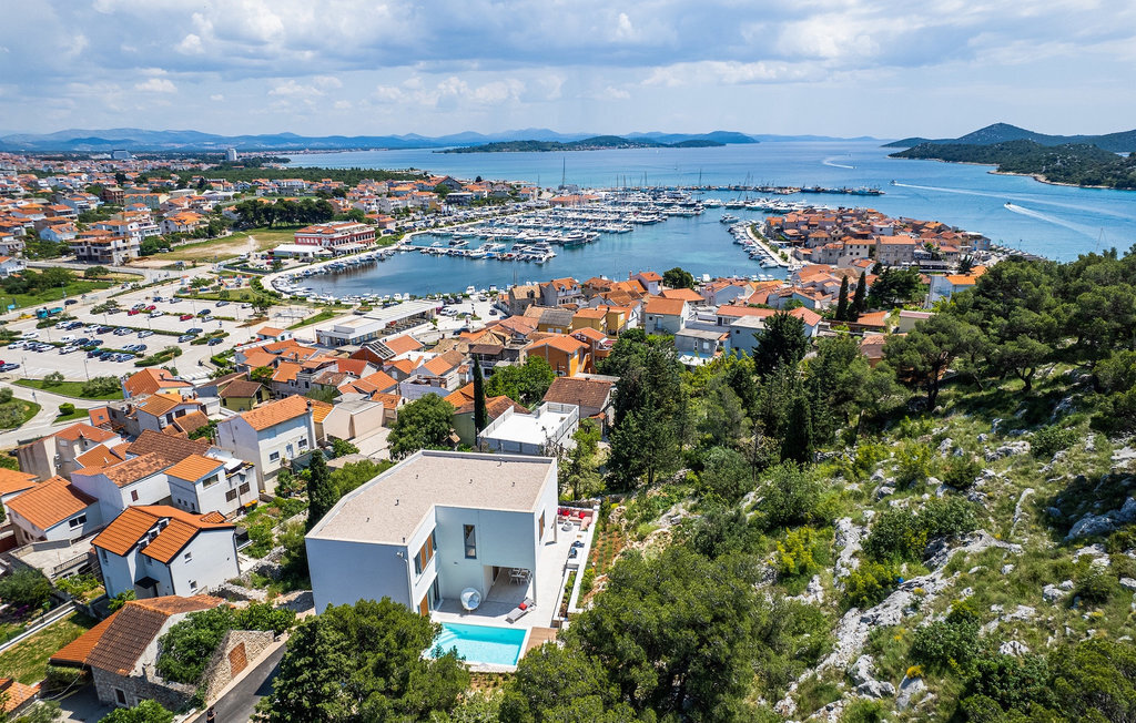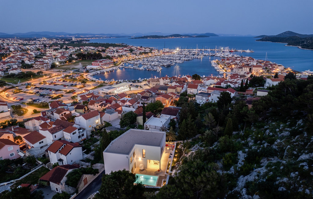 La villa Miramarina, magnifiquement aménagée, est située au pied d'une colline qui entoure la terrasse d'arbres et de nature. D'un côté de la terrasse, vous trouverez une piscine privée rafraîchissante avec 4 chaises longues. De l'autre côté se trouve un espace lounge confortable pour discuter jusque tard dans la nuit en sirotant une boisson fraîche. Au milieu se trouve un espace barbecue avec une table à manger pouvant accueillir jusqu'à 10 personnes. En passant par la porte vitrée, vous accédez au salon et à la cuisine entièrement équipée avec un îlot de cuisine et un autre coin repas pouvant accueillir jusqu'à 10 personnes. Un étage en dessous, vous trouverez une chambre double avec télévision et salle de bain privée ainsi qu'une kitchenette. Au premier étage, il y a quatre autres chambres doubles, dont deux partagent une salle de bain et les deux autres ont leur propre salle de bain. Cet étage est également équipé d'une kitchenette privée. Depuis le balcon, vous pouvez voir toute la ville et la magnifique mer avec son port de plaisance. Pour des vacances tranquilles entre nature et mer, la Villa Miramare est l'endroit idéal pour votre famille. La Villa Miramarina se trouve à Tribunj, connue pour ses cafés tranquilles au bord de l'eau. Cette villa se trouve à seulement 200 m de la plage et à 250 m du restaurant, du café et des magasins les plus proches. À seulement 30 minutes en voiture se trouve la ville de Sibenik, où vous pourrez visiter la cathédrale en pierre de Saint-Jacques, datant du 15e siècle et ornée de 71 visages sculptés, ou le musée de la ville de Sibenik avec des expositions allant de la préhistoire à l'époque contemporaine. Vous pouvez également visiter l'époustouflant parc national de Krka et vous baigner en pleine nature à côté de magnifiques cascades. La température de la piscine chauffée dépend de facteurs extérieurs, y compris des conditions météorologiques, et la température de l'eau ne peut donc pas être garantie.