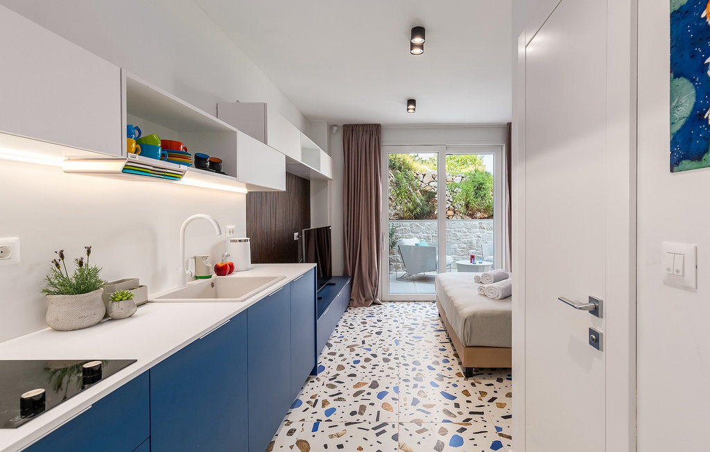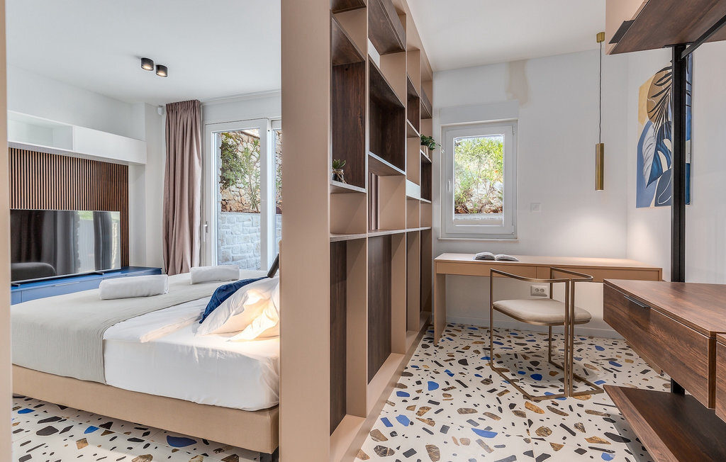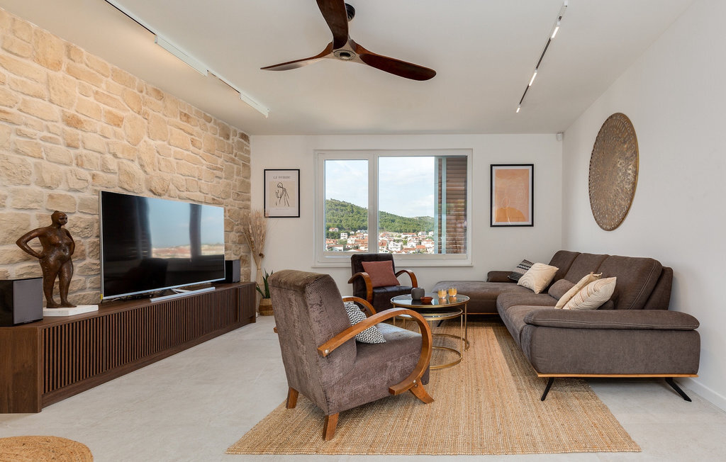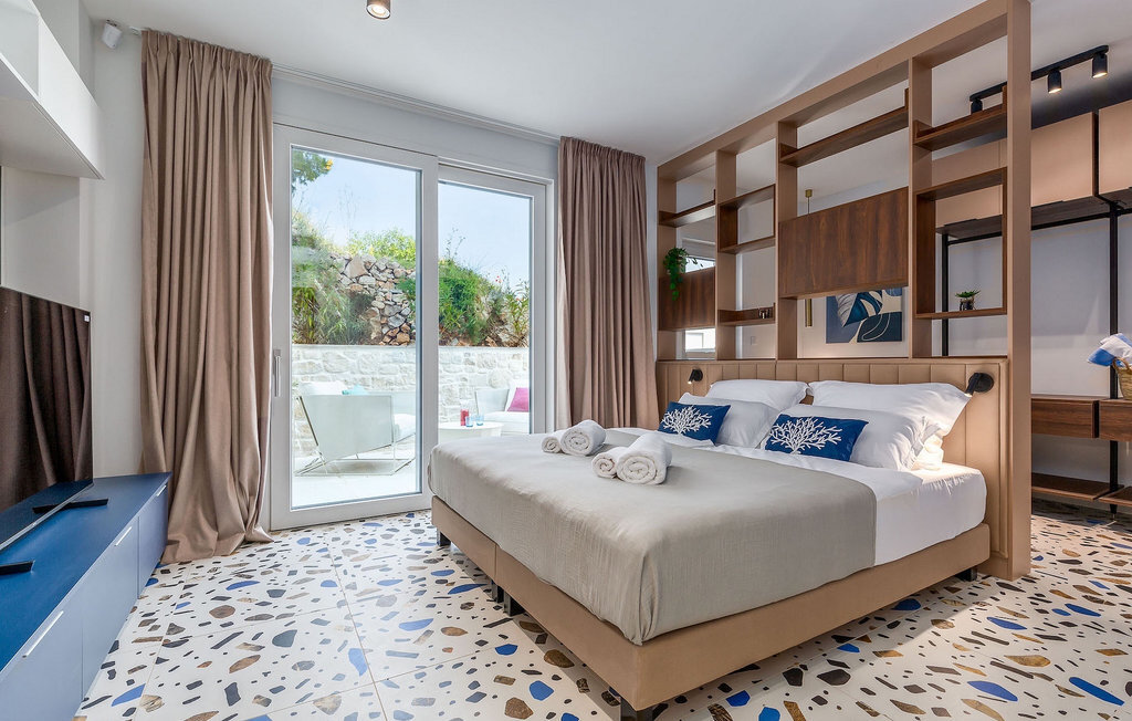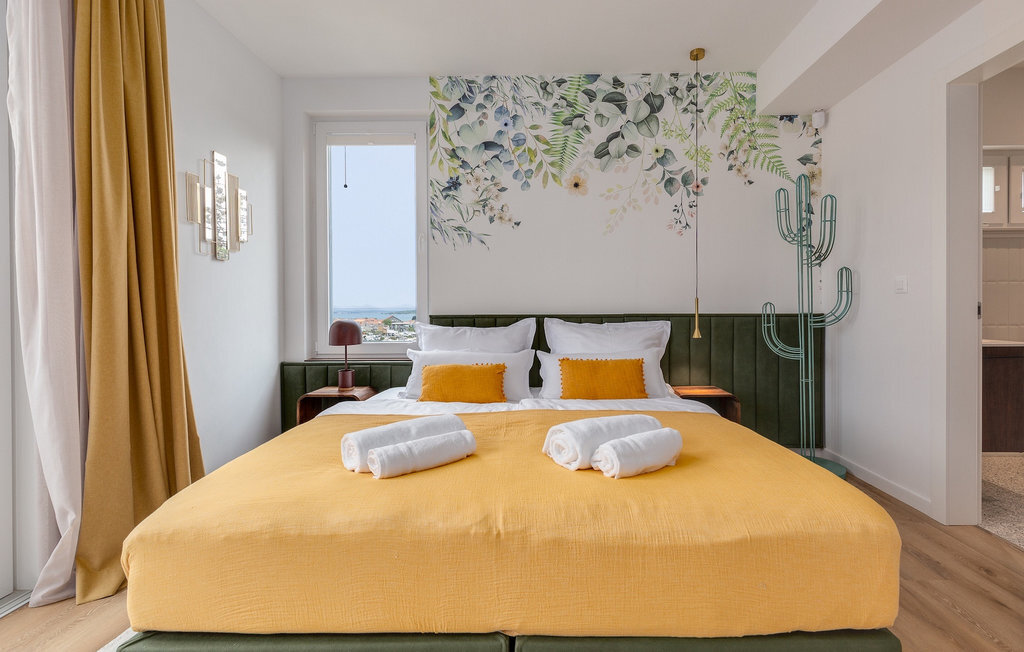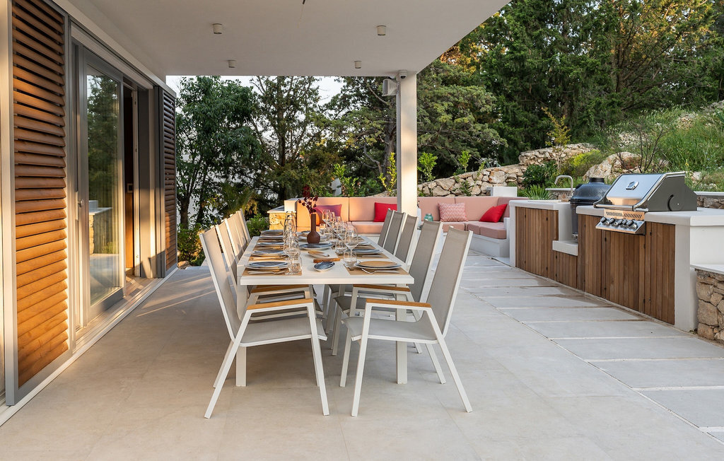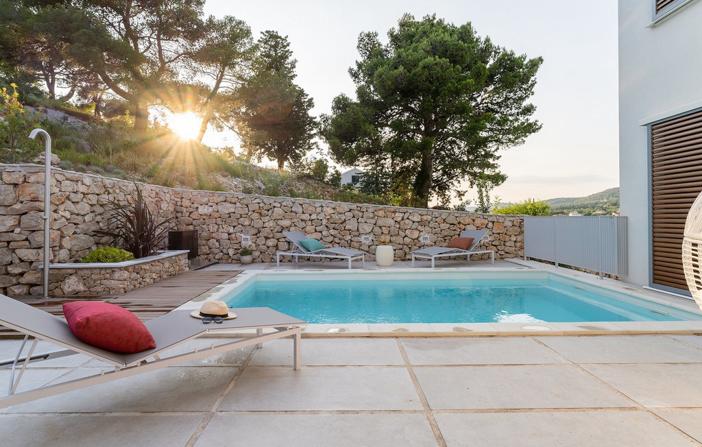 La villa Miramarina, magnifiquement aménagée, est située au pied d'une colline qui entoure la terrasse d'arbres et de nature. D'un côté de la terrasse, vous trouverez une piscine privée rafraîchissante avec 4 chaises longues. De l'autre côté se trouve un espace lounge confortable pour discuter jusque tard dans la nuit en sirotant une boisson fraîche. Au milieu se trouve un espace barbecue avec une table à manger pouvant accueillir jusqu'à 10 personnes. En passant par la porte vitrée, vous accédez au salon et à la cuisine entièrement équipée avec un îlot de cuisine et un autre coin repas pouvant accueillir jusqu'à 10 personnes. Un étage en dessous, vous trouverez une chambre double avec télévision et salle de bain privée ainsi qu'une kitchenette. Au premier étage, il y a quatre autres chambres doubles, dont deux partagent une salle de bain et les deux autres ont leur propre salle de bain. Cet étage est également équipé d'une kitchenette privée. Depuis le balcon, vous pouvez voir toute la ville et la magnifique mer avec son port de plaisance. Pour des vacances tranquilles entre nature et mer, la Villa Miramare est l'endroit idéal pour votre famille. La Villa Miramarina se trouve à Tribunj, connue pour ses cafés tranquilles au bord de l'eau. Cette villa se trouve à seulement 200 m de la plage et à 250 m du restaurant, du café et des magasins les plus proches. À seulement 30 minutes en voiture se trouve la ville de Sibenik, où vous pourrez visiter la cathédrale en pierre de Saint-Jacques, datant du 15e siècle et ornée de 71 visages sculptés, ou le musée de la ville de Sibenik avec des expositions allant de la préhistoire à l'époque contemporaine. Vous pouvez également visiter l'époustouflant parc national de Krka et vous baigner en pleine nature à côté de magnifiques cascades. La température de la piscine chauffée dépend de facteurs extérieurs, y compris des conditions météorologiques, et la température de l'eau ne peut donc pas être garantie.