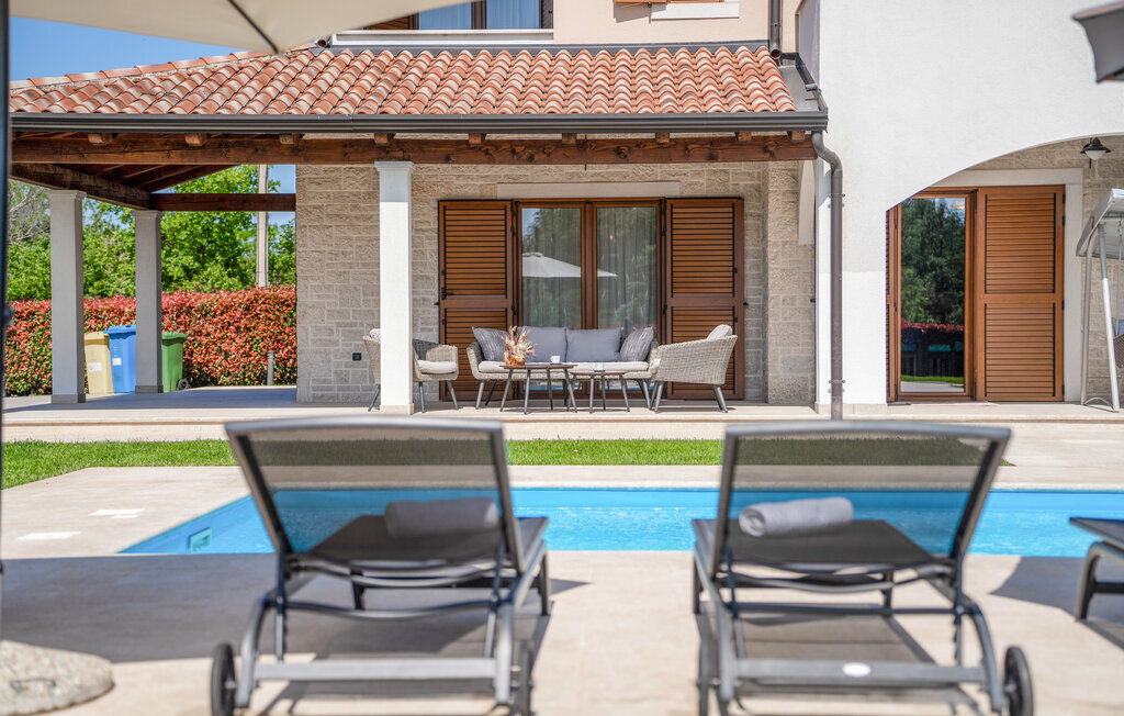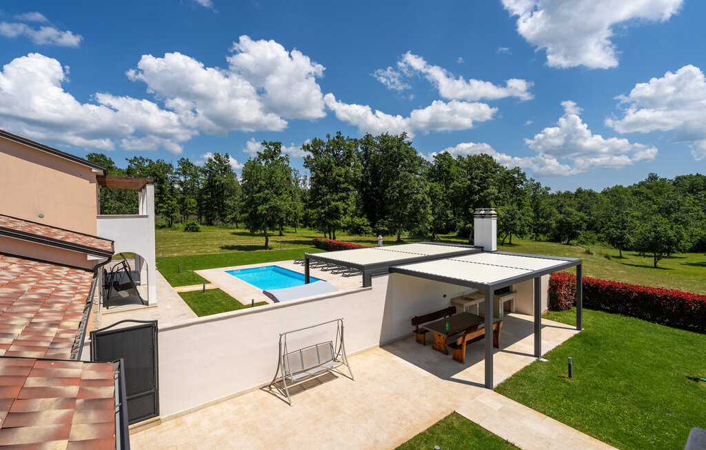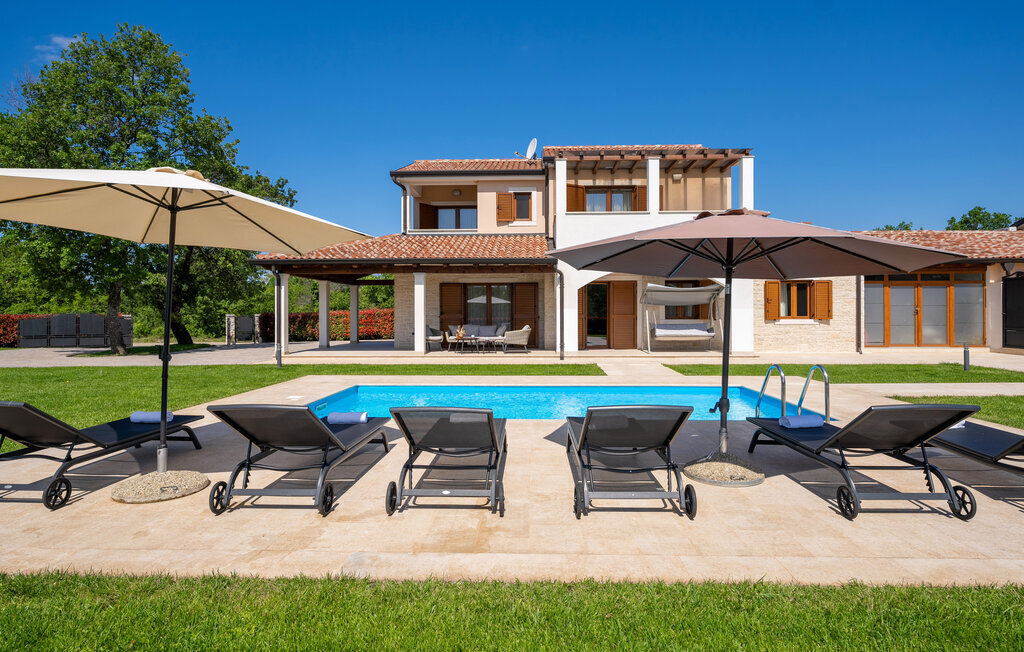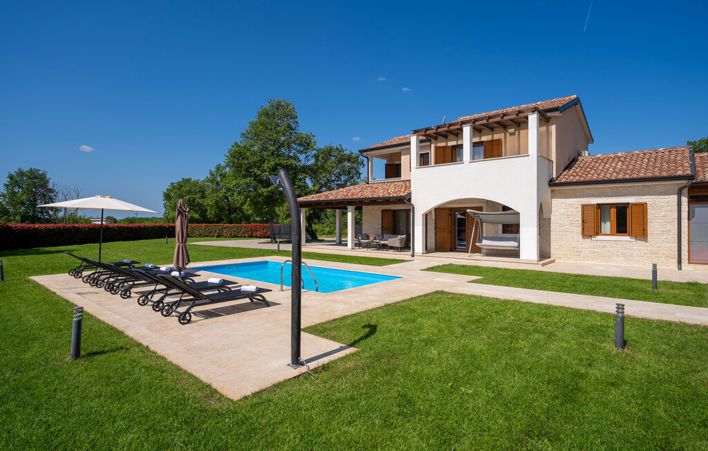 Sur la propriété partiellement clôturée de 1000 m2 de jardin et de belle pelouse se trouve une piscine privée de 24m2 et des chaises longues. Il y a également une douche en plein air, une grande terrasse couverte avec des meubles de jardin et un barbecue où vous pourrez profiter de moments inoubliables en famille ou entre amis. La Villa Genia I est entièrement climatisée, équipée de la télévision par satellite et d'une connexion WLAN. Nos hôtes ont également 3 places de parking à disposition.Cette villa se trouve dans le petit village de Katun, près de Baderna. Baderna est un charmant village pittoresque d'Istrie situé près de la célèbre ville de Porec, qui a remporté le prix touristique de la Perle de l'Adriatique. Baderna se trouve à 10 kilomètres de la mer, à l'écart de l'agitation de la ville, tout en bénéficiant d'une situation privilégiée près de l'embranchement de la principale route touristique d'Istrie. Tout ce dont vous avez besoin est disponible : Poste, épicerie, station-service et quelques restaurants. Les perles touristiques de l'Istrie : Opatija, Rovinj, Pula, Trieste, Koper, Piran, Portoroz, Umag et Novigrad sont à moins d'une heure de route. Il vous suffit de décider si vous souhaitez méditer parmi les oliviers et les vignobles, goûter aux délices istriens ou passer du bon temps dans les environs.