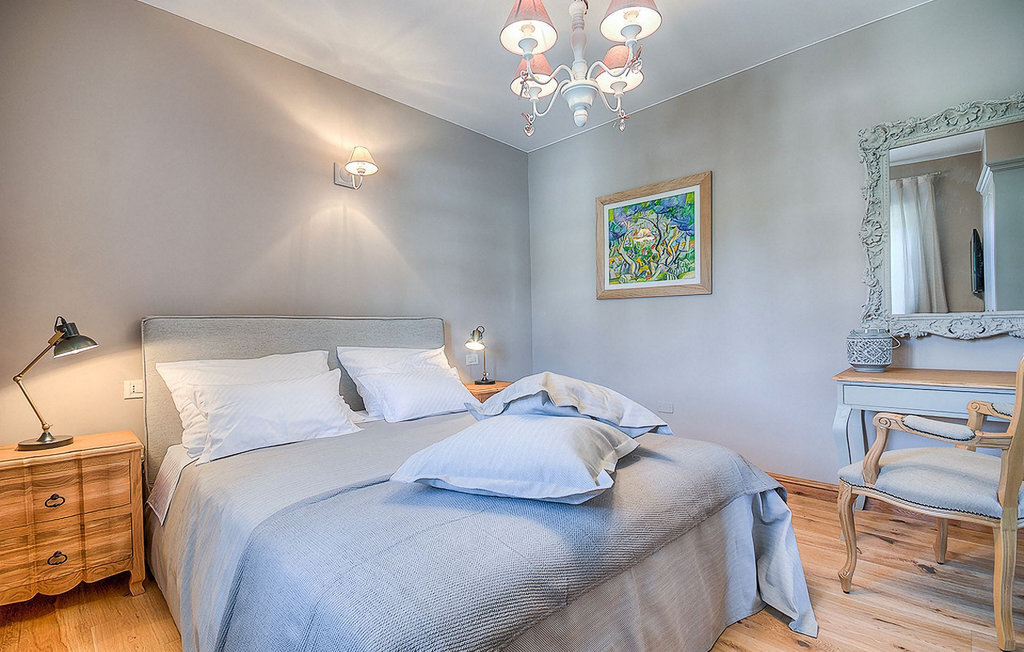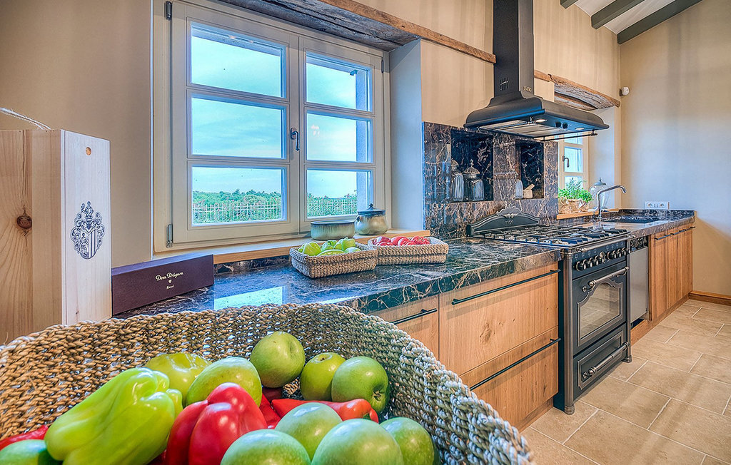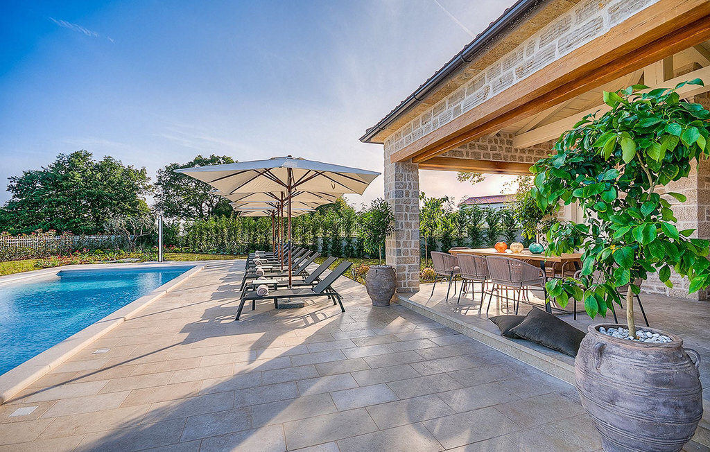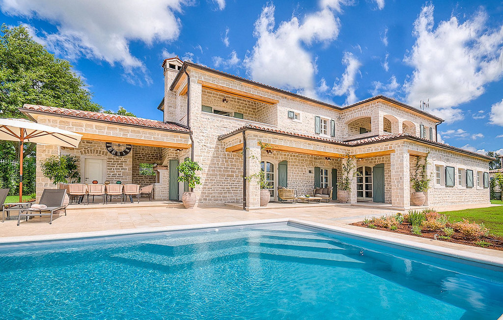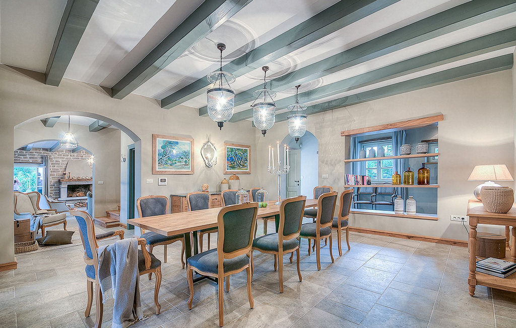Élégante, stylée et très bien située, au milieu du paysage pittoresque de l'Istrie, mais toujours à proximité des plages ensoleillées et des villes côtières animées, la Villa Nevia offre un hébergement luxueux où vous pourrez profiter de chaque minute de vos vacances en toute décontraction. Le rez-de-chaussée est entièrement consacré à la détente. L'espace magnifique et spacieux est divisé par une arche en pierre en zones de salon, de salle à manger et de cuisine, avec d'immenses portes-fenêtres qui laissent entrer une abondance de lumière chaude d'Istrie. Les murs en pierre naturelle, les plafonds à poutres en bois et la magnifique cheminée créent une atmosphère chaleureuse et accueillante, tandis que le mélange de meubles modernes et vintage, ainsi que l'équipement exquis, vous procurent un confort de première classe. Trois chambres à coucher sont réparties à l'étage supérieur, tandis que les deux autres au rez-de-chaussée s'ouvrent directement sur l'alléchante piscine privée, l'endroit merveilleux pour se reposer et se détendre. La jolie véranda couverte, avec son authentique barbecue intégré et sa grande table à manger, est un refuge attrayant contre la chaleur de l'été, ainsi que l'endroit parfait pour des repas savoureux en plein air.