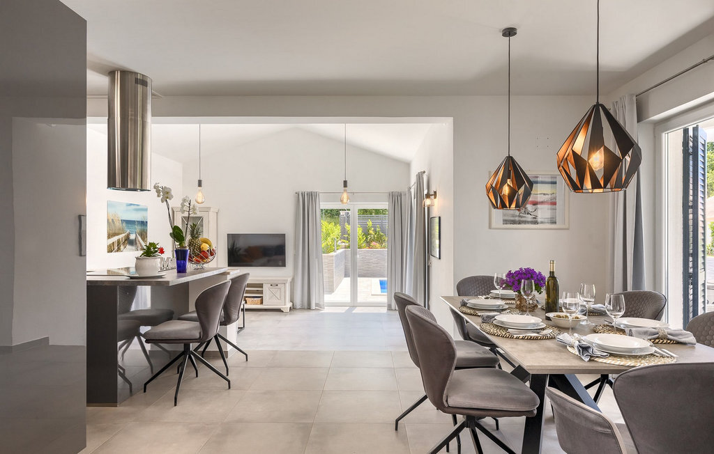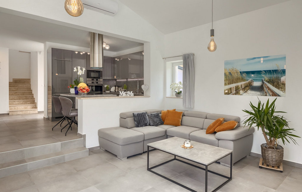 Si vous êtes à la recherche de vacances reposantes au bord de la mer, la Villa Camelia est le choix parfait pour vous ! Cette villa avec piscine, décorée et aménagée avec charme, dispose de 3 chambres et peut accueillir jusqu'à 8 hôtes. Au rez-de-chaussée de la villa se trouvent une cuisine entièrement équipée, une table à manger spacieuse, le salon avec vue sur la piscine, une chambre avec salle de bain privée et des toilettes séparées.