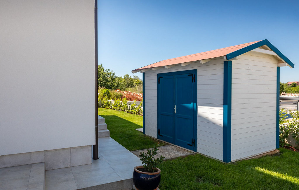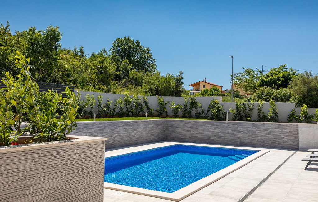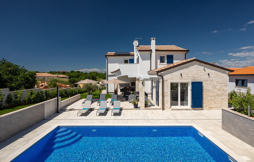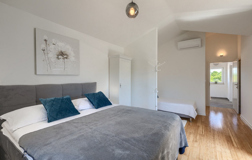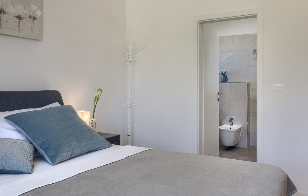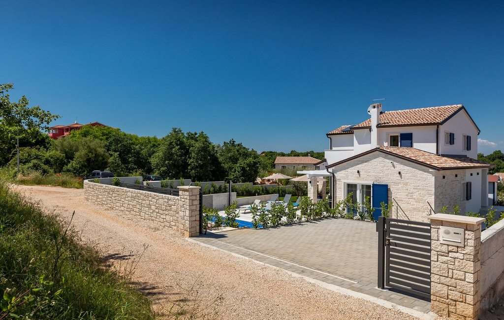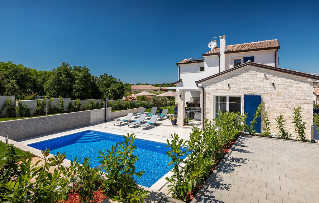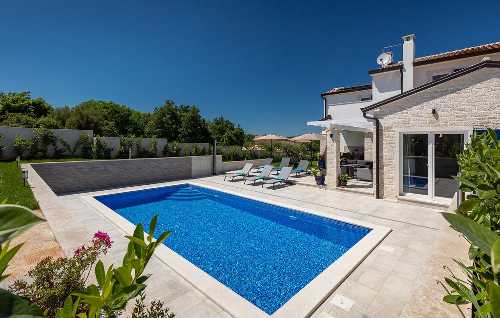 Dans le salon, vous trouverez un confortable canapé gris sur lequel vous pourrez vous détendre ou passer une soirée cinéma en famille ou entre amis. La porte-fenêtre du salon offre une vue imprenable sur la piscine et le magnifique paysage. Au premier étage se trouvent deux chambres à coucher avec salle de bain en suite. Les deux chambres ont accès au balcon. À l'extérieur de la villa, sur la terrasse, il y a une table avec 8 chaises où vous pouvez servir un délicieux repas préparé sur le barbecue au charbon de bois disponible. Il y a également des meubles de jardin où vous pourrez vous détendre après une longue journée de plaisir en sirotant une boisson fraîche. Rafraîchissez-vous dans la piscine devant la terrasse ou détendez-vous sur les chaises longues. Les bains de soleil sur les chaises longues complèteront votre journée. Idéale pour de belles vacances en famille ou entre amis, la Villa Camelia vous séduira par son bel environnement méditerranéen.La Villa Camelia se trouve non loin de Novigrad, dans la petite ville de Tar. Tar est connue pour sa culture d'oliviers et sa pêche, ainsi que pour ses hôtes accueillants. Le centre de la petite ville conserve l'esprit traditionnel de l'Istrie dans de nombreuses maisons en pierre et tavernes où vous pourrez déguster les meilleures spécialités istriennes, notamment l'huile d'olive, les fruits de mer, les truffes et de délicieux desserts. La péninsule de Lanterna est une destination idéale pour tous les amateurs de soleil et de mer. Vous pourrez pratiquer de nombreuses activités sportives sur la plage ou vous détendre dans l'un des cafés avec vue sur Novigrad. Les amoureux de la nature ne doivent pas manquer de se rendre à l'embouchure de la rivière Mirna. La Mirna est la plus longue rivière d'Istrie et s'étend le long de la forêt de Motovun, qui est une destination de choix pour les amateurs de truffes. La rivière Mirna est une réserve ornithologique appréciée et connue. Le long de la rivière, il y a de petites villes comme Motovun, Gronjan et Oprtalj qui méritent d'être explorées.