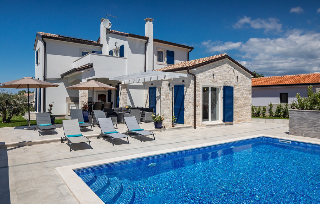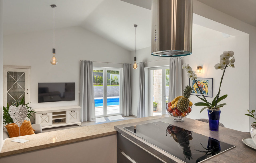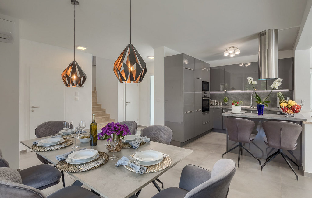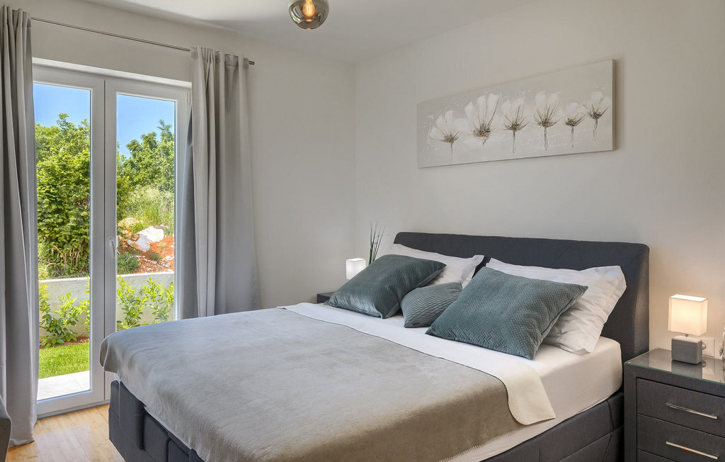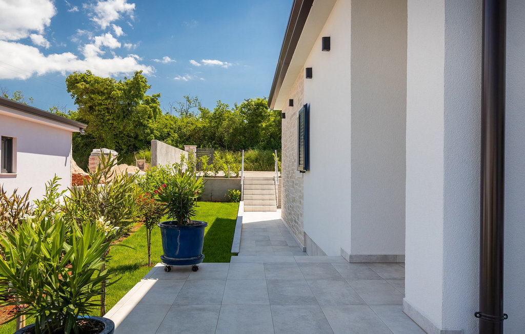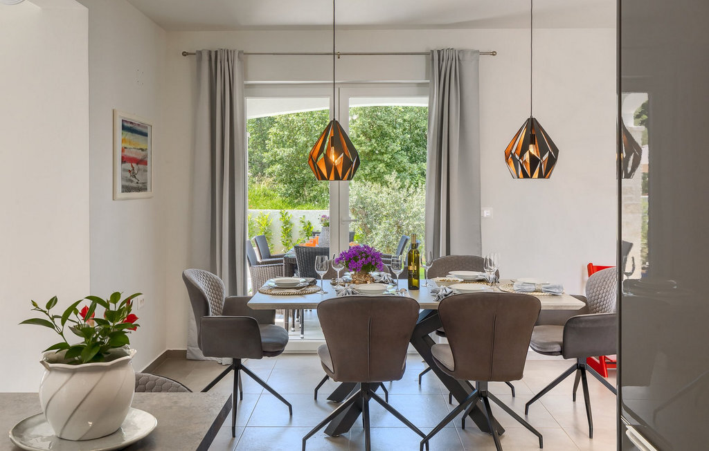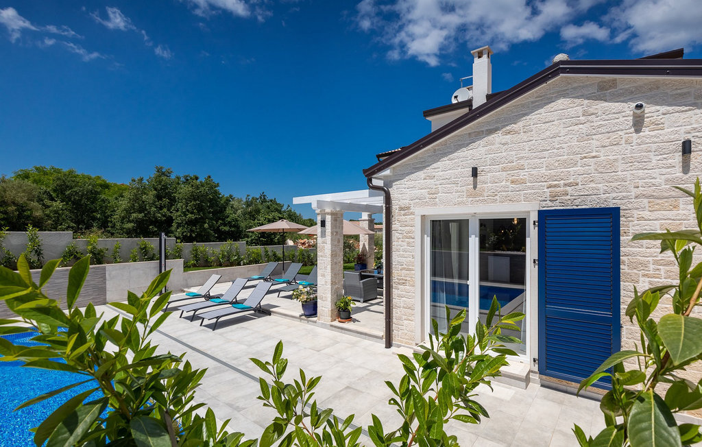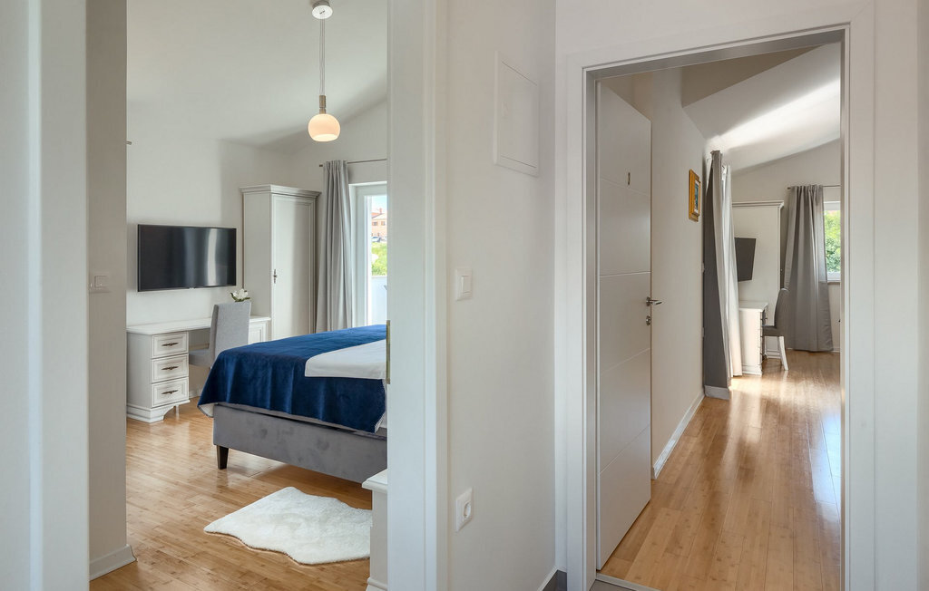 Dans le salon, vous trouverez un confortable canapé gris sur lequel vous pourrez vous détendre ou passer une soirée cinéma en famille ou entre amis. La porte-fenêtre du salon offre une vue imprenable sur la piscine et le magnifique paysage. Au premier étage se trouvent deux chambres à coucher avec salle de bain en suite. Les deux chambres ont accès au balcon. À l'extérieur de la villa, sur la terrasse, il y a une table avec 8 chaises où vous pouvez servir un délicieux repas préparé sur le barbecue au charbon de bois disponible. Il y a également des meubles de jardin où vous pourrez vous détendre après une longue journée de plaisir en sirotant une boisson fraîche. Rafraîchissez-vous dans la piscine devant la terrasse ou détendez-vous sur les chaises longues. Les bains de soleil sur les chaises longues complèteront votre journée. Idéale pour de belles vacances en famille ou entre amis, la Villa Camelia vous séduira par son bel environnement méditerranéen.La Villa Camelia se trouve non loin de Novigrad, dans la petite ville de Tar. Tar est connue pour sa culture d'oliviers et sa pêche, ainsi que pour ses hôtes accueillants. Le centre de la petite ville conserve l'esprit traditionnel de l'Istrie dans de nombreuses maisons en pierre et tavernes où vous pourrez déguster les meilleures spécialités istriennes, notamment l'huile d'olive, les fruits de mer, les truffes et de délicieux desserts. La péninsule de Lanterna est une destination idéale pour tous les amateurs de soleil et de mer. Vous pourrez pratiquer de nombreuses activités sportives sur la plage ou vous détendre dans l'un des cafés avec vue sur Novigrad. Les amoureux de la nature ne doivent pas manquer de se rendre à l'embouchure de la rivière Mirna. La Mirna est la plus longue rivière d'Istrie et s'étend le long de la forêt de Motovun, qui est une destination de choix pour les amateurs de truffes. La rivière Mirna est une réserve ornithologique appréciée et connue. Le long de la rivière, il y a de petites villes comme Motovun, Gronjan et Oprtalj qui méritent d'être explorées.