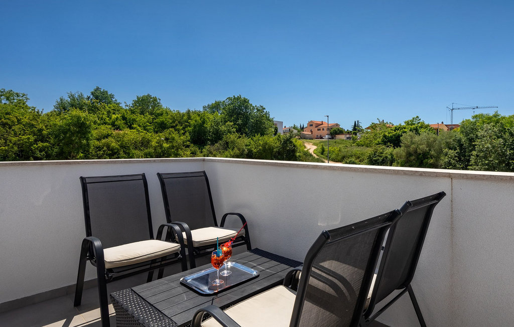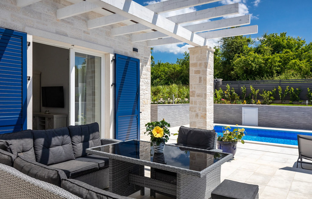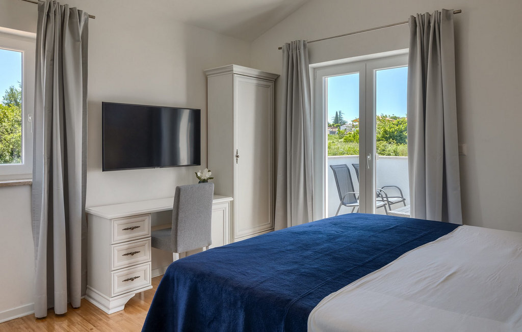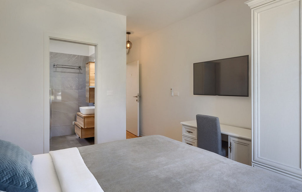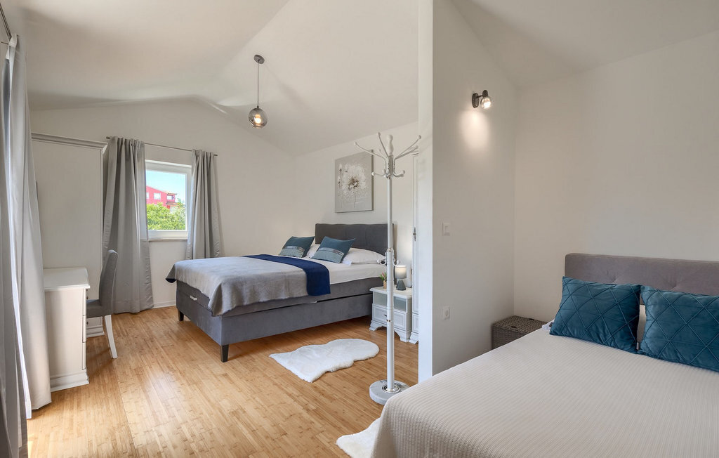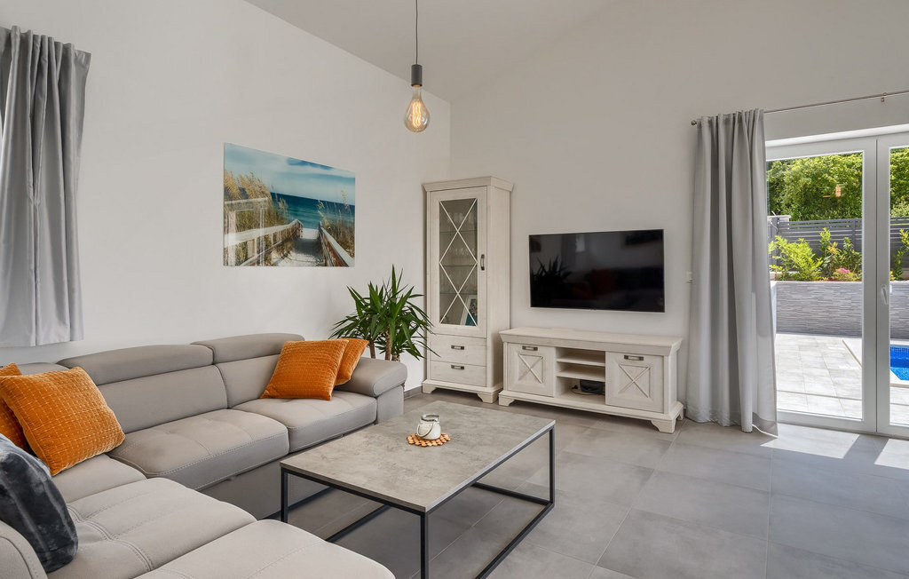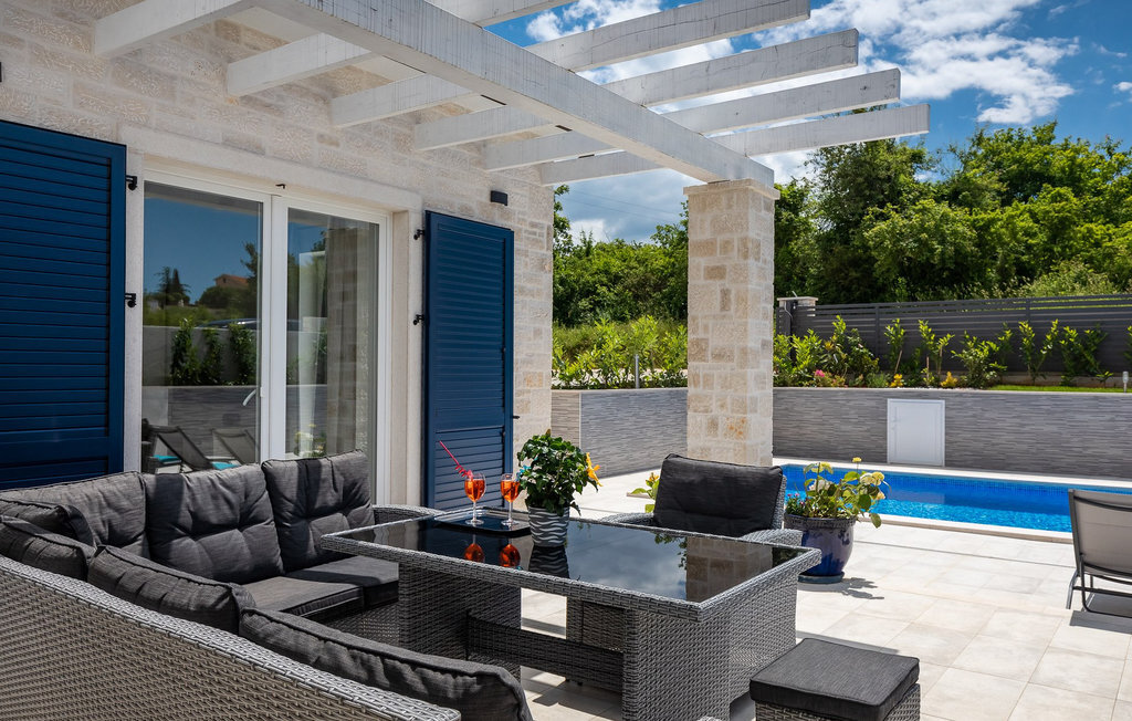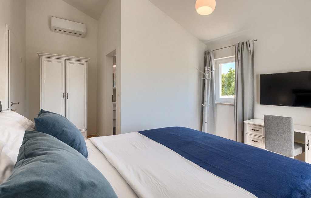 Dans le salon, vous trouverez un confortable canapé gris sur lequel vous pourrez vous détendre ou passer une soirée cinéma en famille ou entre amis. La porte-fenêtre du salon offre une vue imprenable sur la piscine et le magnifique paysage. Au premier étage se trouvent deux chambres à coucher avec salle de bain en suite. Les deux chambres ont accès au balcon. À l'extérieur de la villa, sur la terrasse, il y a une table avec 8 chaises où vous pouvez servir un délicieux repas préparé sur le barbecue au charbon de bois disponible. Il y a également des meubles de jardin où vous pourrez vous détendre après une longue journée de plaisir en sirotant une boisson fraîche. Rafraîchissez-vous dans la piscine devant la terrasse ou détendez-vous sur les chaises longues. Les bains de soleil sur les chaises longues complèteront votre journée. Idéale pour de belles vacances en famille ou entre amis, la Villa Camelia vous séduira par son bel environnement méditerranéen.La Villa Camelia se trouve non loin de Novigrad, dans la petite ville de Tar. Tar est connue pour sa culture d'oliviers et sa pêche, ainsi que pour ses hôtes accueillants. Le centre de la petite ville conserve l'esprit traditionnel de l'Istrie dans de nombreuses maisons en pierre et tavernes où vous pourrez déguster les meilleures spécialités istriennes, notamment l'huile d'olive, les fruits de mer, les truffes et de délicieux desserts. La péninsule de Lanterna est une destination idéale pour tous les amateurs de soleil et de mer. Vous pourrez pratiquer de nombreuses activités sportives sur la plage ou vous détendre dans l'un des cafés avec vue sur Novigrad. Les amoureux de la nature ne doivent pas manquer de se rendre à l'embouchure de la rivière Mirna. La Mirna est la plus longue rivière d'Istrie et s'étend le long de la forêt de Motovun, qui est une destination de choix pour les amateurs de truffes. La rivière Mirna est une réserve ornithologique appréciée et connue. Le long de la rivière, il y a de petites villes comme Motovun, Gronjan et Oprtalj qui méritent d'être explorées.