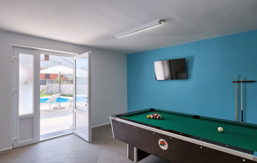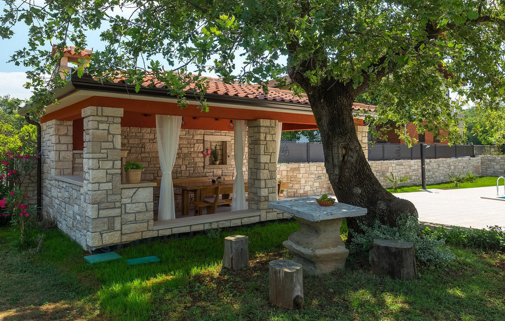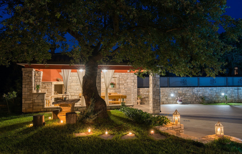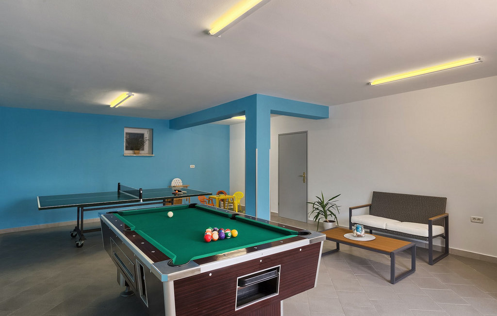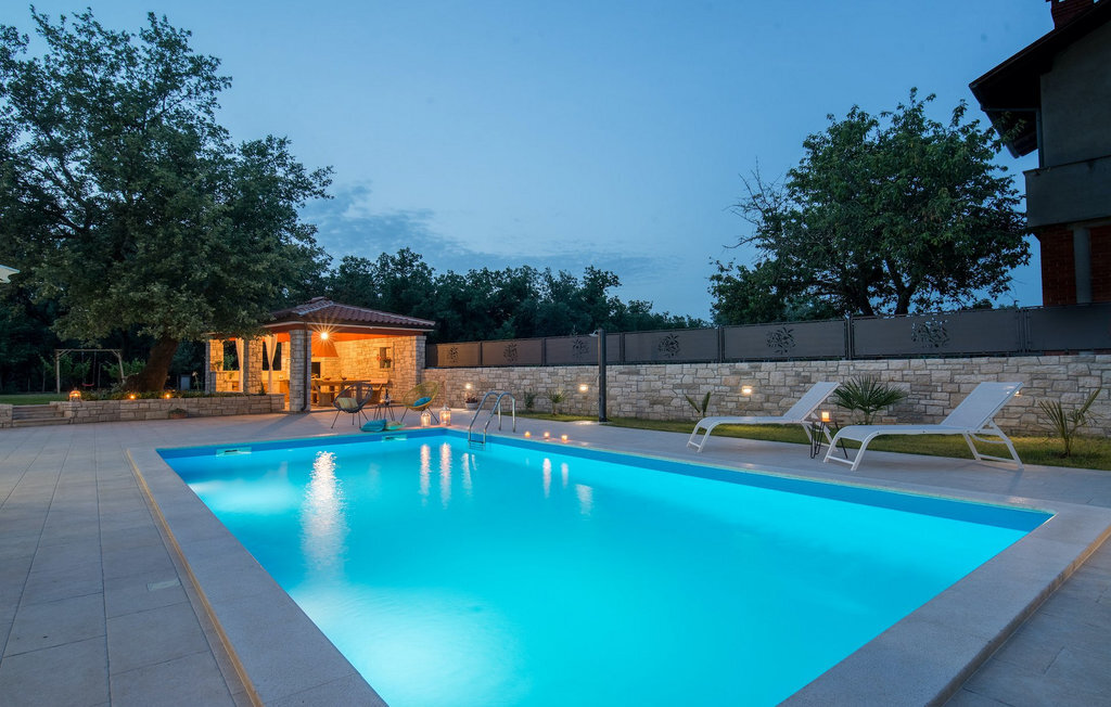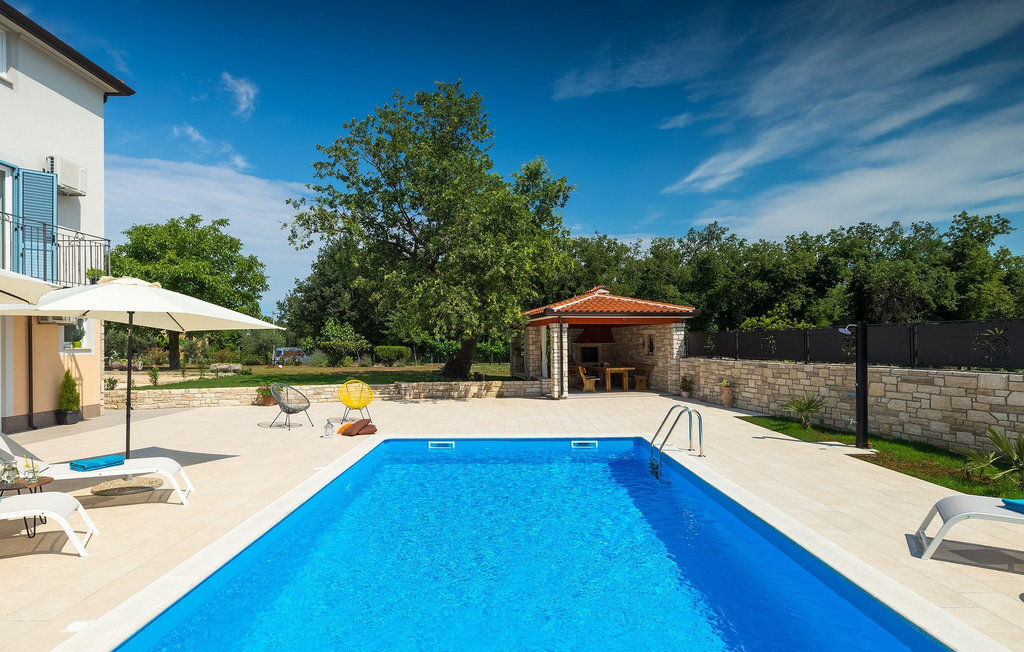 La charmante villa Quercus Alba, située dans la charmante ville de Buje, non loin d'Umag, offre des vacances familiales reposantes pour 8 hôtes. La villa, dont le nom signifie Chêne blanc, se compose de deux appartements dans lesquels vous trouverez 4 chambres à coucher, 3 salles de bain, 2 salons, 2 cuisines et 2 coins repas. Un salon / salle à manger avec cuisine ainsi que 2 chambres et une salle de bain se trouvent au premier étage. Au rez-de-chaussée, vous trouverez la salle de divertissement avec une table de billard et une table de ping-pong. Cette pièce est équipée d'une télévision et de grandes portes-fenêtres qui donnent directement sur la piscine privée. Vous pouvez faire de même depuis la salle de fitness. Deux autres chambres avec deux salles de bains, une cuisine et une salle à manger / salon se trouvent au deuxième étage. Depuis le salon, des portes-fenêtres mènent à une belle terrasse où vous pouvez profiter de votre matinée avec une tasse de café.