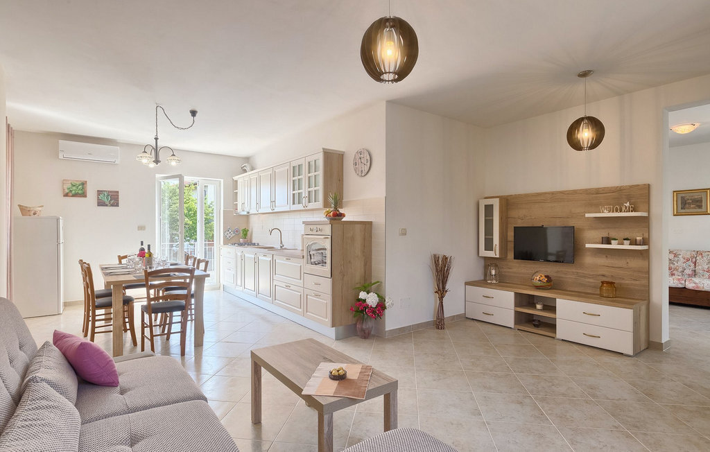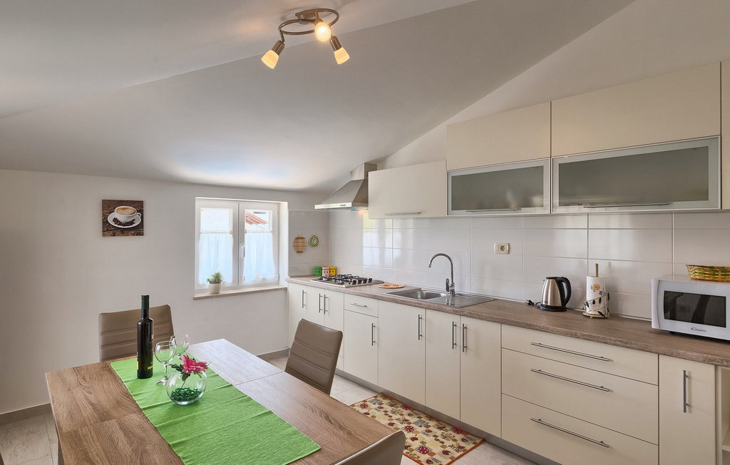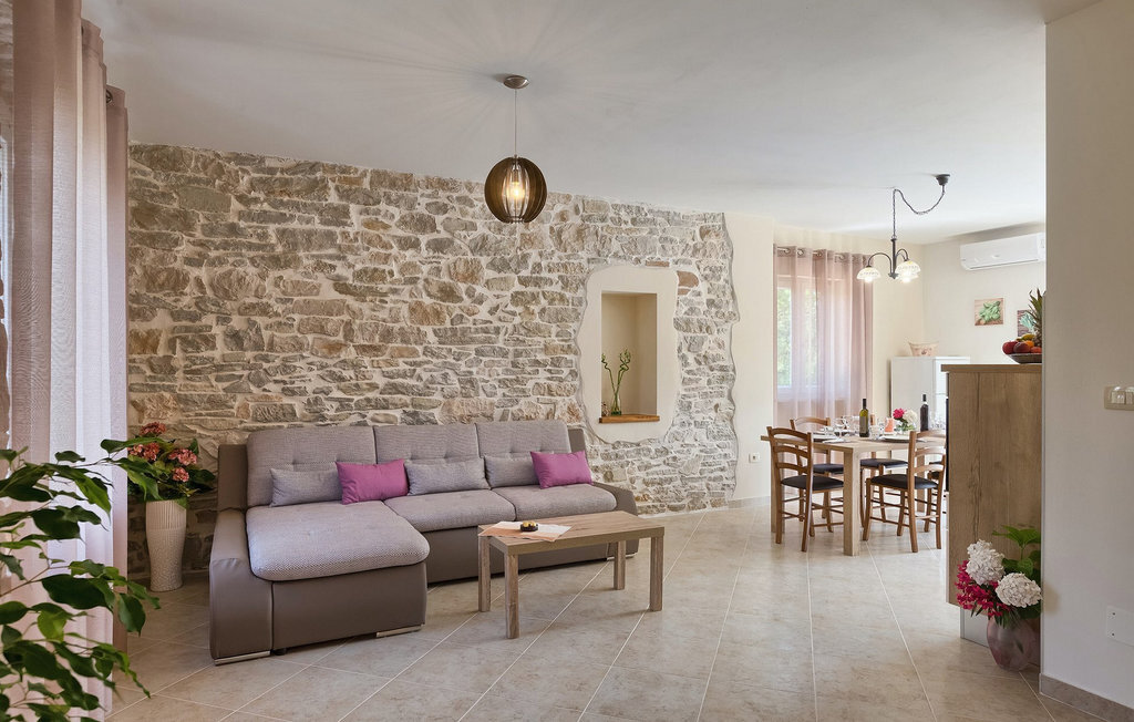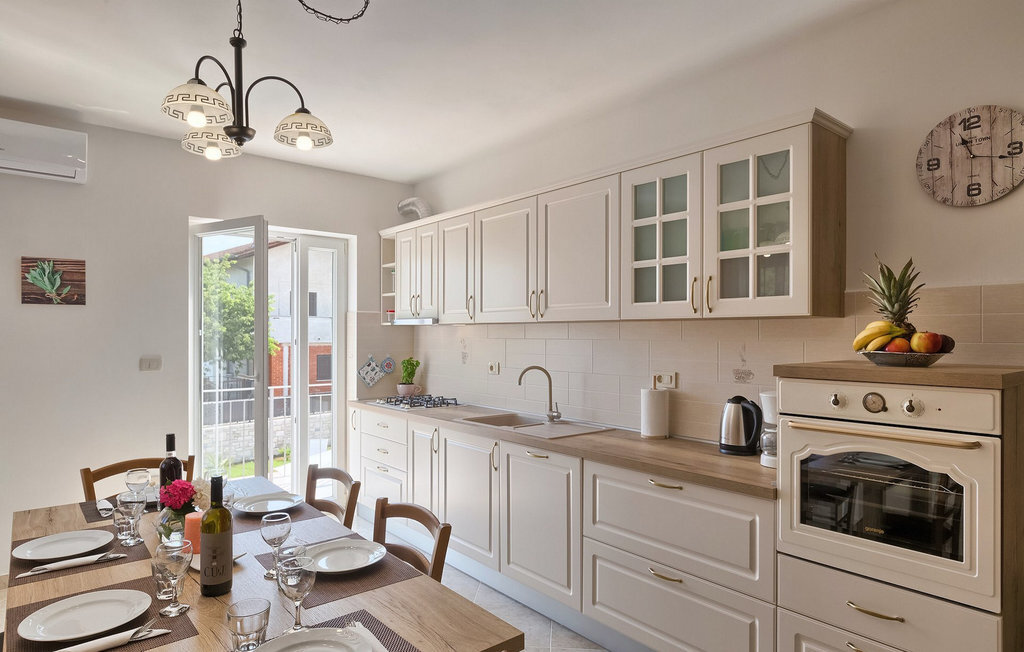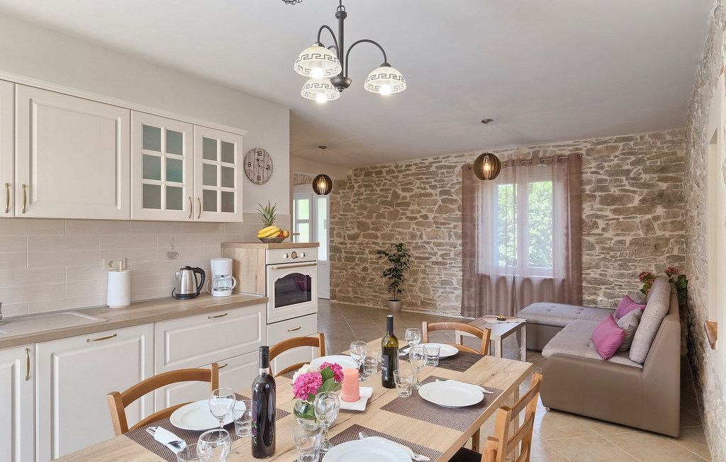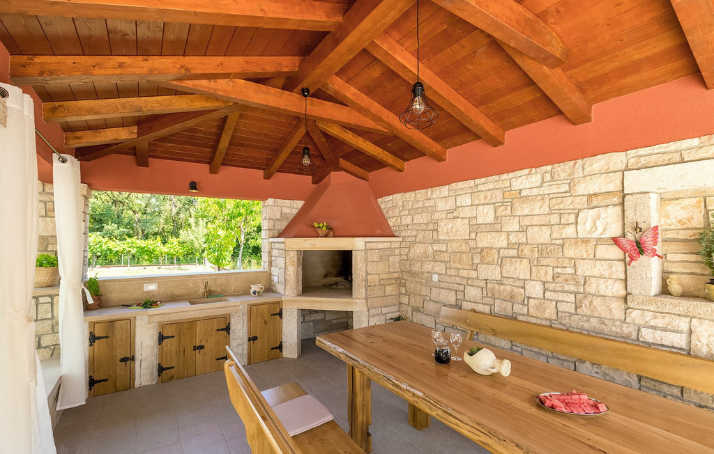 La charmante villa Quercus Alba, située dans la charmante ville de Buje, non loin d'Umag, offre des vacances familiales reposantes pour 8 hôtes. La villa, dont le nom signifie Chêne blanc, se compose de deux appartements dans lesquels vous trouverez 4 chambres à coucher, 3 salles de bain, 2 salons, 2 cuisines et 2 coins repas. Un salon / salle à manger avec cuisine ainsi que 2 chambres et une salle de bain se trouvent au premier étage. Au rez-de-chaussée, vous trouverez la salle de divertissement avec une table de billard et une table de ping-pong. Cette pièce est équipée d'une télévision et de grandes portes-fenêtres qui donnent directement sur la piscine privée. Vous pouvez faire de même depuis la salle de fitness. Deux autres chambres avec deux salles de bains, une cuisine et une salle à manger / salon se trouvent au deuxième étage. Depuis le salon, des portes-fenêtres mènent à une belle terrasse où vous pouvez profiter de votre matinée avec une tasse de café.