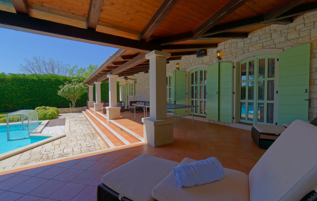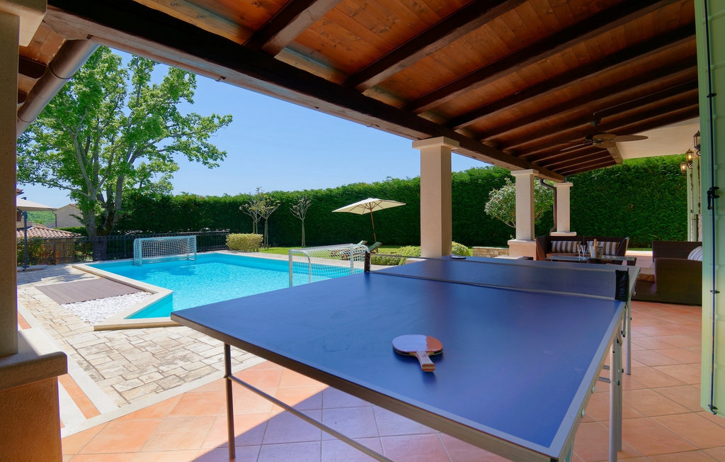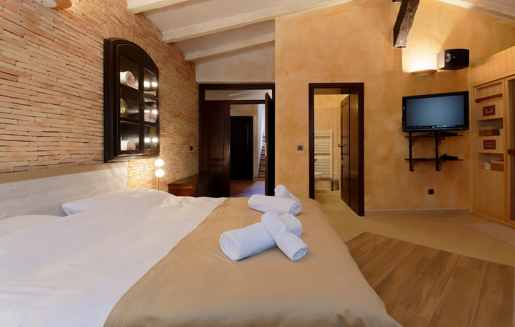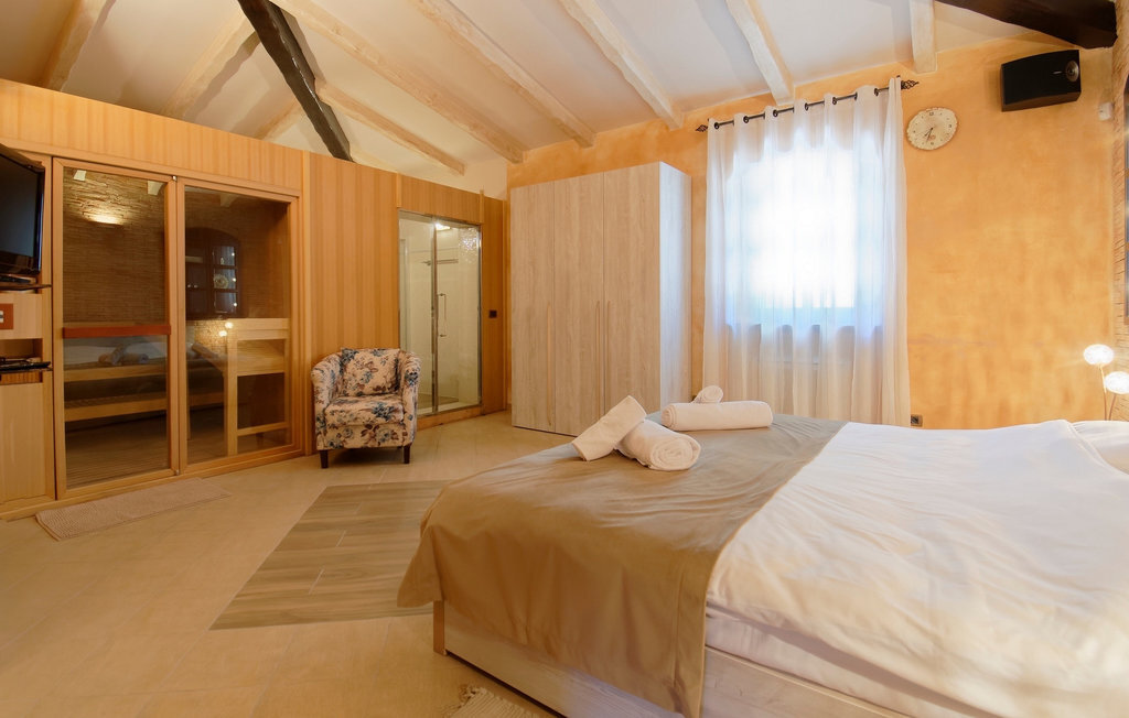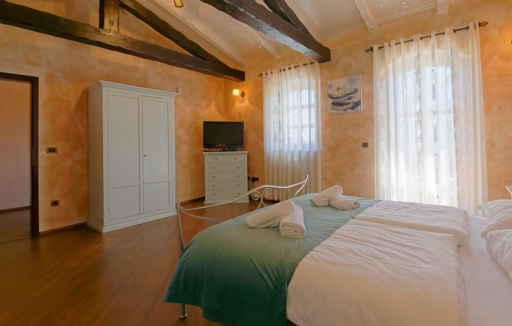 Cette magnifique villa de style provençal allie nature, détente et diverses activités de loisirs. La villa dispose d'une piscine privée accueillante. Le rez-de-chaussée est le point chaud pour toutes vos activités communes et familiales - de la cuisine, de la salle à manger et du salon aux deux chambres. Une chambre dispose même de son propre sauna. Une cuisine d'été supplémentaire a été ajoutée à la cuisine pour tous ceux qui aiment prendre leurs repas en plein air. Au premier étage de la Villa La Quercia, vous trouverez de belles chambres à coucher vintage qui, avec les chambres à coucher du rez-de-chaussée, offrent un hébergement pour 9+2 personnes. Toutes les chambres sont équipées de la climatisation, d'une télévision et d'une salle de bain en suite. Pour plus de détente et un vrai sentiment de vacances, reposez-vous dans le beau jardin bien entretenu, où vous trouverez 8 chaises longues, un kiosque et des herbes méditerranéennes locales. Vous pourrez également y admirer des olives et des chênes vieux de 3 siècles qui vous protégeront des coups de soleil à l'ombre naturelle. Toutes les chambres situées au rez-de-chaussée ont une sortie sur la piscine et le jardin. Si vous voyagez avec des enfants, il y a beaucoup d'activités pour tous - du ping-pong aux équipements sportifs pour le volley-ball dans la piscine ou le football. Pour les soirées spéciales et les réunions, la cave cache une taverne spacieuse avec un bar, une télévision et une cave à vin pour garder vos vins de bon goût au frais. Cet espace, avec une douche supplémentaire pour ceux qui souhaitent se rafraîchir de la piscine, se trouve dans la partie abaissée du rez-de-chaussée.