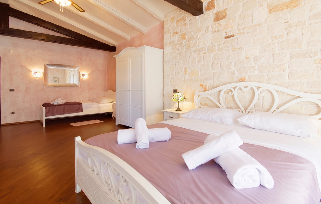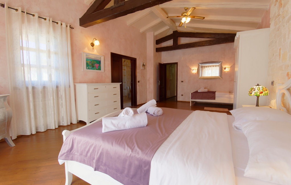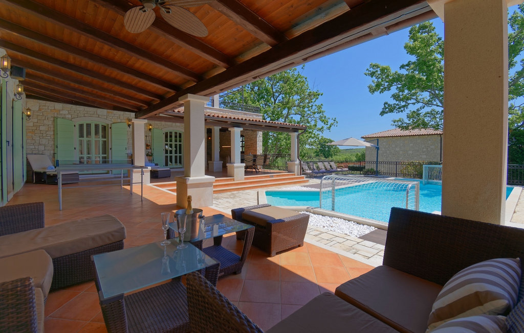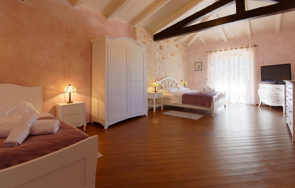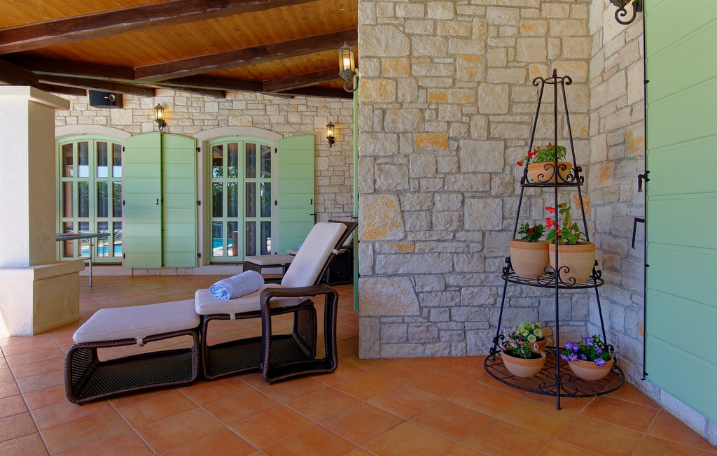 Cette magnifique villa de style provençal allie nature, détente et diverses activités de loisirs. La villa dispose d'une piscine privée accueillante. Le rez-de-chaussée est le point chaud pour toutes vos activités communes et familiales - de la cuisine, de la salle à manger et du salon aux deux chambres. Une chambre dispose même de son propre sauna. Une cuisine d'été supplémentaire a été ajoutée à la cuisine pour tous ceux qui aiment prendre leurs repas en plein air. Au premier étage de la Villa La Quercia, vous trouverez de belles chambres à coucher vintage qui, avec les chambres à coucher du rez-de-chaussée, offrent un hébergement pour 9+2 personnes. Toutes les chambres sont équipées de la climatisation, d'une télévision et d'une salle de bain en suite. Pour plus de détente et un vrai sentiment de vacances, reposez-vous dans le beau jardin bien entretenu, où vous trouverez 8 chaises longues, un kiosque et des herbes méditerranéennes locales. Vous pourrez également y admirer des olives et des chênes vieux de 3 siècles qui vous protégeront des coups de soleil à l'ombre naturelle. Toutes les chambres situées au rez-de-chaussée ont une sortie sur la piscine et le jardin. Si vous voyagez avec des enfants, il y a beaucoup d'activités pour tous - du ping-pong aux équipements sportifs pour le volley-ball dans la piscine ou le football. Pour les soirées spéciales et les réunions, la cave cache une taverne spacieuse avec un bar, une télévision et une cave à vin pour garder vos vins de bon goût au frais. Cet espace, avec une douche supplémentaire pour ceux qui souhaitent se rafraîchir de la piscine, se trouve dans la partie abaissée du rez-de-chaussée.