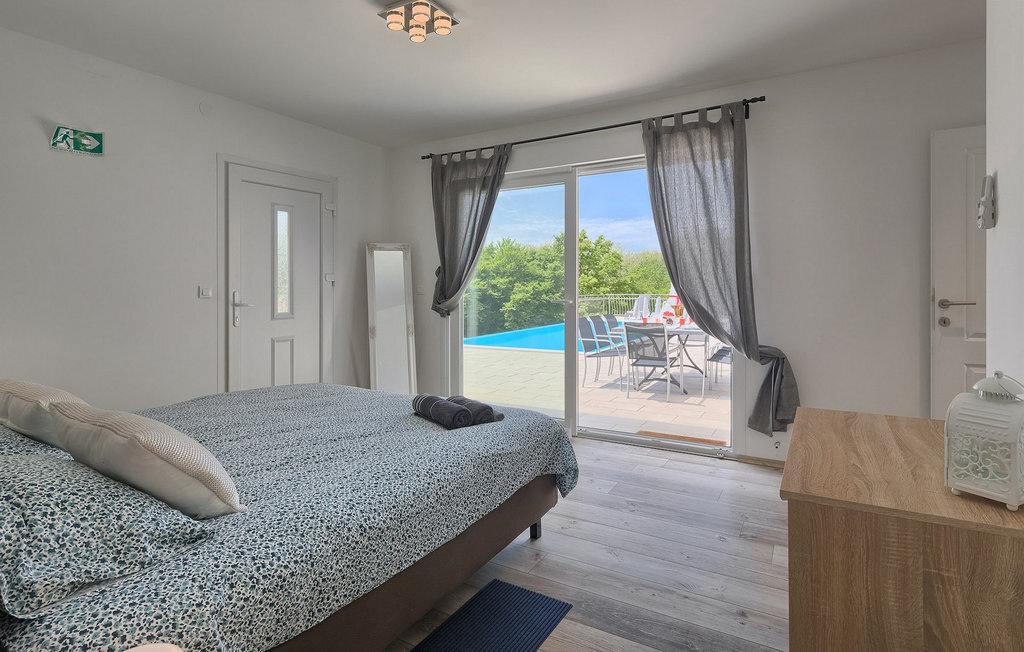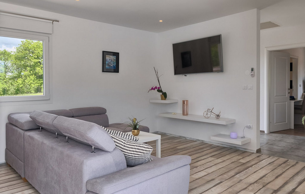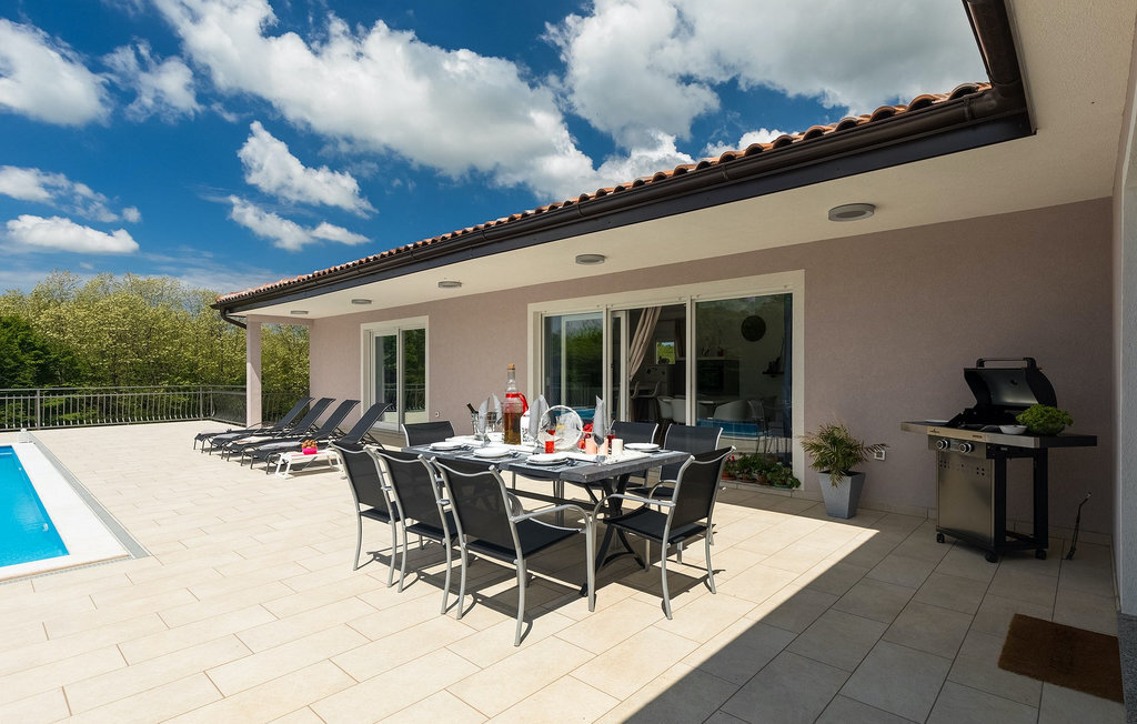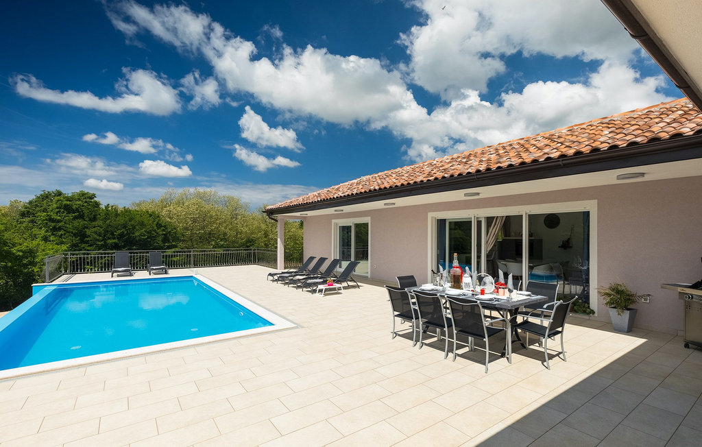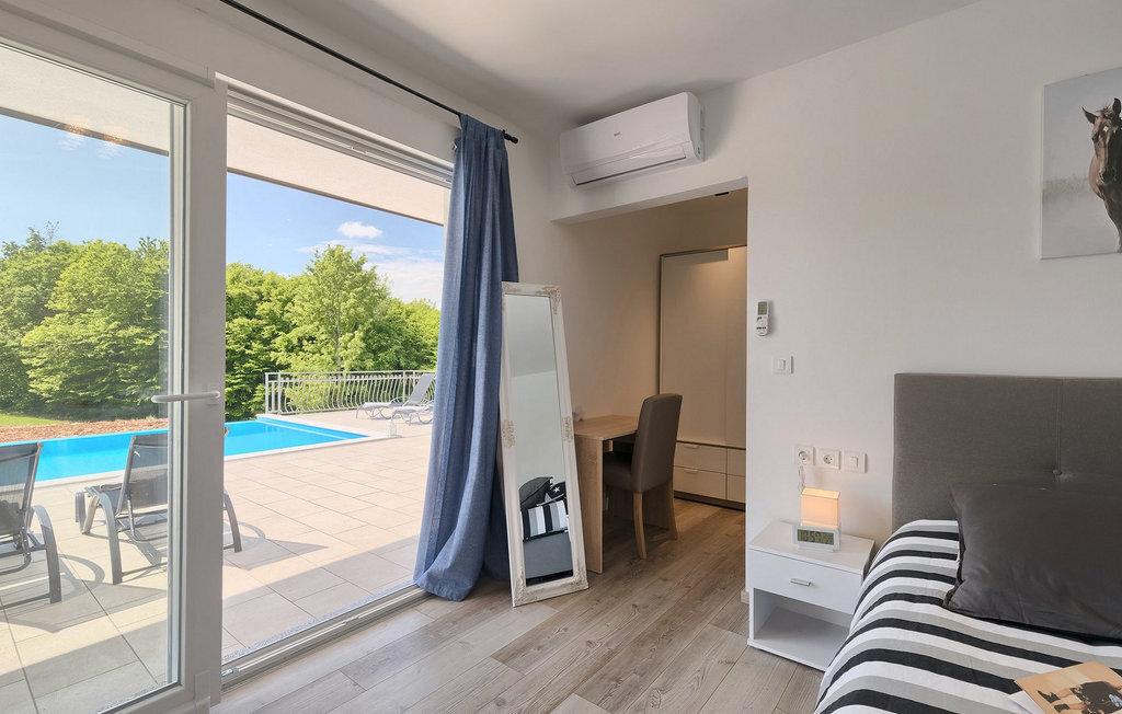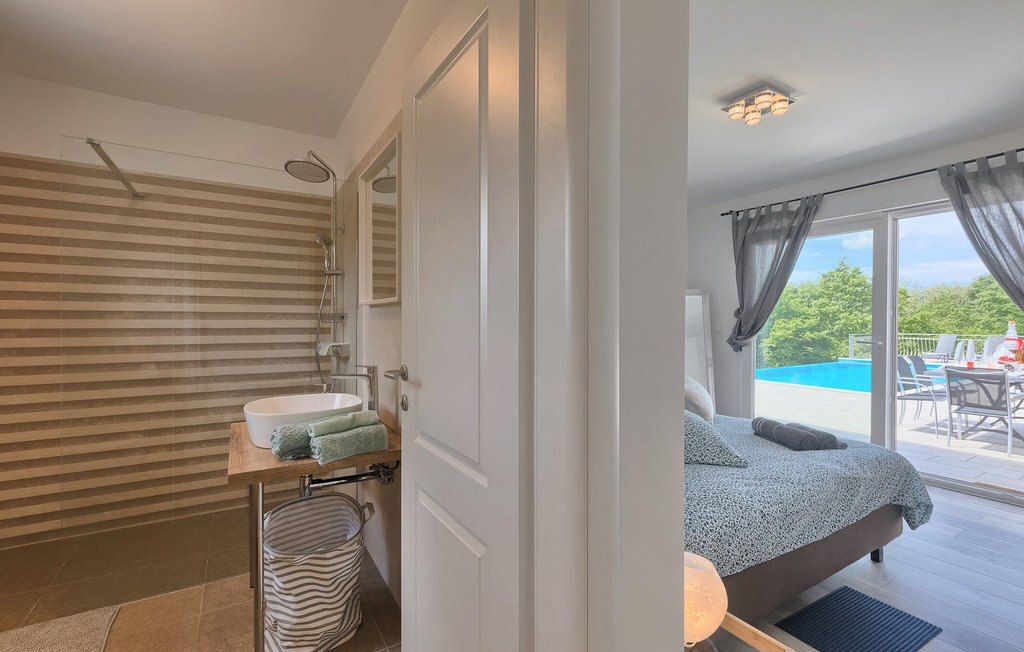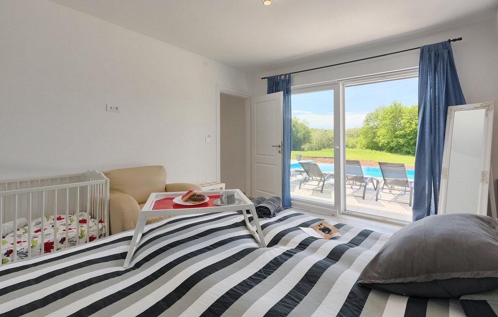 Cette magnifique villa familiale est située sur un terrain de 6000 m2 dans la pittoresque région de l'Istrie centrale, à proximité de la petite ville médiévale de Pazin. La villa peut accueillir jusqu'à 8 personnes et dispose de 3 chambres à coucher aménagées avec goût. Il s'agit d'une villa individuelle, sans voisins dans un rayon de 300m en vue. :) Chaque chambre est climatisée, offre une vue sur l'espace piscine et dispose d'une salle de bain privée pour plus de confort. Deux chambres ont un lit double et une chambre a deux lits simples. Un lit supplémentaire est disponible dans l'une des chambres. Le canapé-lit dans le salon est également disponible pour deux hôtes supplémentaires. Le grand espace ouvert salon-salle à manger avec cuisine entièrement équipée est très lumineux grâce aux grandes baies vitrées et a un accès direct à la terrasse et à l'espace piscine. Dehors, il y a une table à manger pour les repas en plein air et un barbecue à gaz / charbon de bois. Détendez-vous sur les chaises longues à côté de la piscine et profitez de la tranquillité de cette région divinement belle. La villa dispose d'un "jardin de méditation".Cette belle villa est située à l'intérieur de la péninsule d'Istrie à couper le souffle. La grotte de Pazin et le château de Pazin, qui ont inspiré l'écrivain français Jules Verne dans son roman "Mathias Sandorf", ne sont qu'à une courte distance en voiture de la villa. L'Istrie centrale est connue pour ses petites villes médiévales pittoresques qui rappellent irrésistiblement la Toscane ou la Provence. Pendant votre séjour en Istrie, visitez la basilique d'Euphrasius (patrimoine culturel de l'Unesco) dans la vieille ville de Porec, amphithéâtre romain bien conservé à Pula ou allez à la première plage et détendez-vous dans la mer cristalline. Pendant votre séjour à Villa Heaven, vous pourrez également déguster une cuisine régionale et un verre de bonne malvazija istrienne.