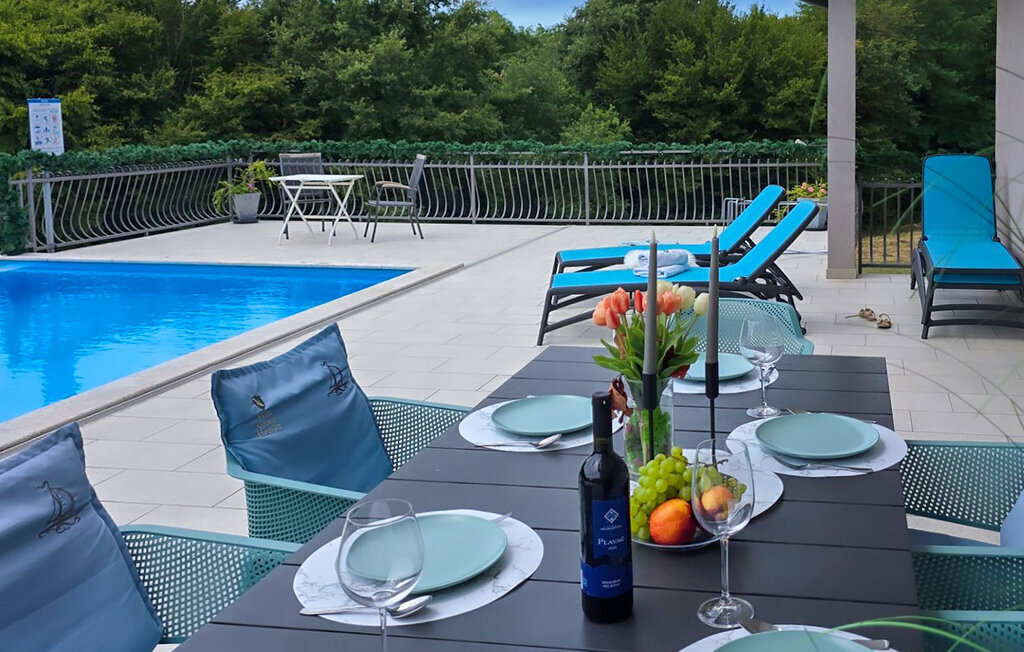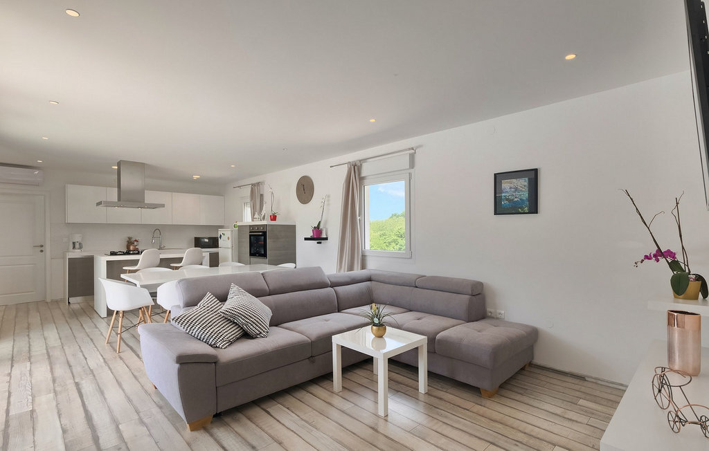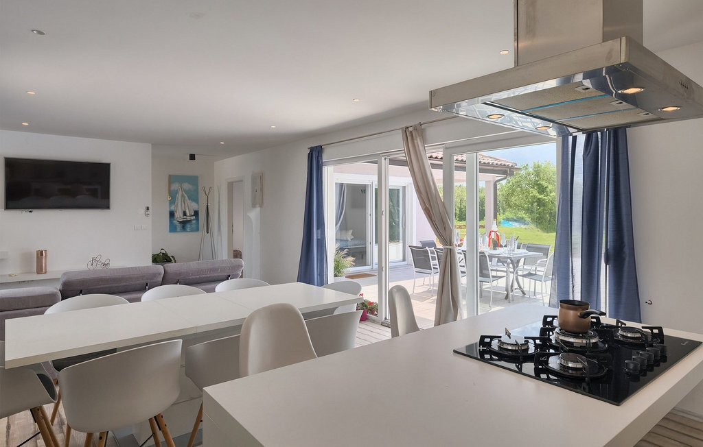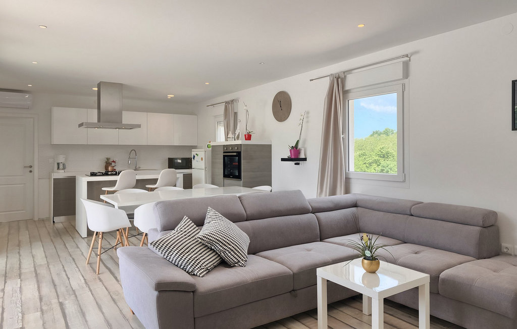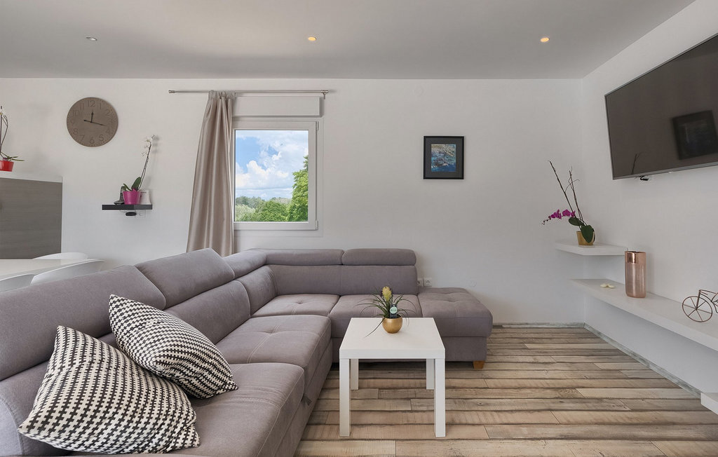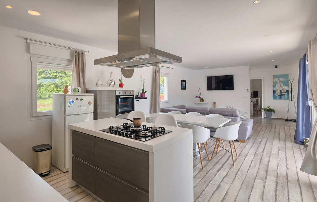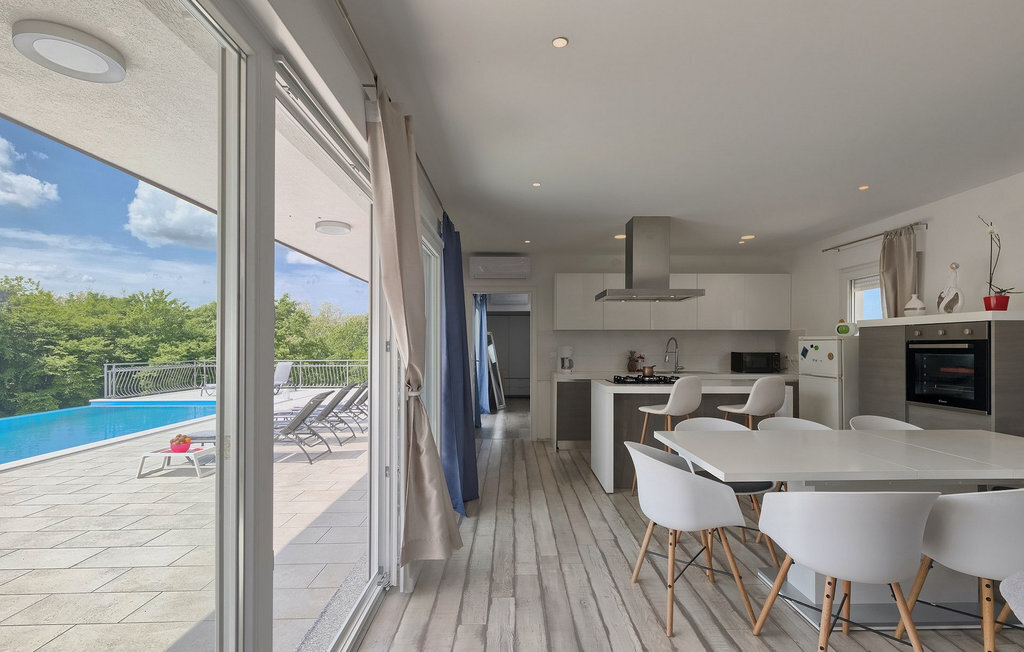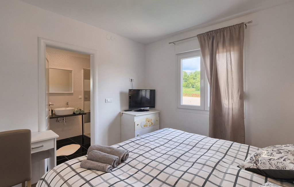Cette magnifique villa familiale est située sur un terrain de 6000 m2 dans la pittoresque région de l'Istrie centrale, à proximité de la petite ville médiévale de Pazin. La villa peut accueillir jusqu'à 8 personnes et dispose de 3 chambres à coucher aménagées avec goût. Il s'agit d'une villa individuelle, sans voisins dans un rayon de 300m en vue. :) Chaque chambre est climatisée, offre une vue sur l'espace piscine et dispose d'une salle de bain privée pour plus de confort. Deux chambres ont un lit double et une chambre a deux lits simples. Un lit supplémentaire est disponible dans l'une des chambres. Le canapé-lit dans le salon est également disponible pour deux hôtes supplémentaires. Le grand espace ouvert salon-salle à manger avec cuisine entièrement équipée est très lumineux grâce aux grandes baies vitrées et a un accès direct à la terrasse et à l'espace piscine. Dehors, il y a une table à manger pour les repas en plein air et un barbecue à gaz / charbon de bois. Détendez-vous sur les chaises longues à côté de la piscine et profitez de la tranquillité de cette région divinement belle. La villa dispose d'un "jardin de méditation".Cette belle villa est située à l'intérieur de la péninsule d'Istrie à couper le souffle. La grotte de Pazin et le château de Pazin, qui ont inspiré l'écrivain français Jules Verne dans son roman "Mathias Sandorf", ne sont qu'à une courte distance en voiture de la villa. L'Istrie centrale est connue pour ses petites villes médiévales pittoresques qui rappellent irrésistiblement la Toscane ou la Provence. Pendant votre séjour en Istrie, visitez la basilique d'Euphrasius (patrimoine culturel de l'Unesco) dans la vieille ville de Porec, amphithéâtre romain bien conservé à Pula ou allez à la première plage et détendez-vous dans la mer cristalline. Pendant votre séjour à Villa Heaven, vous pourrez également déguster une cuisine régionale et un verre de bonne malvazija istrienne.