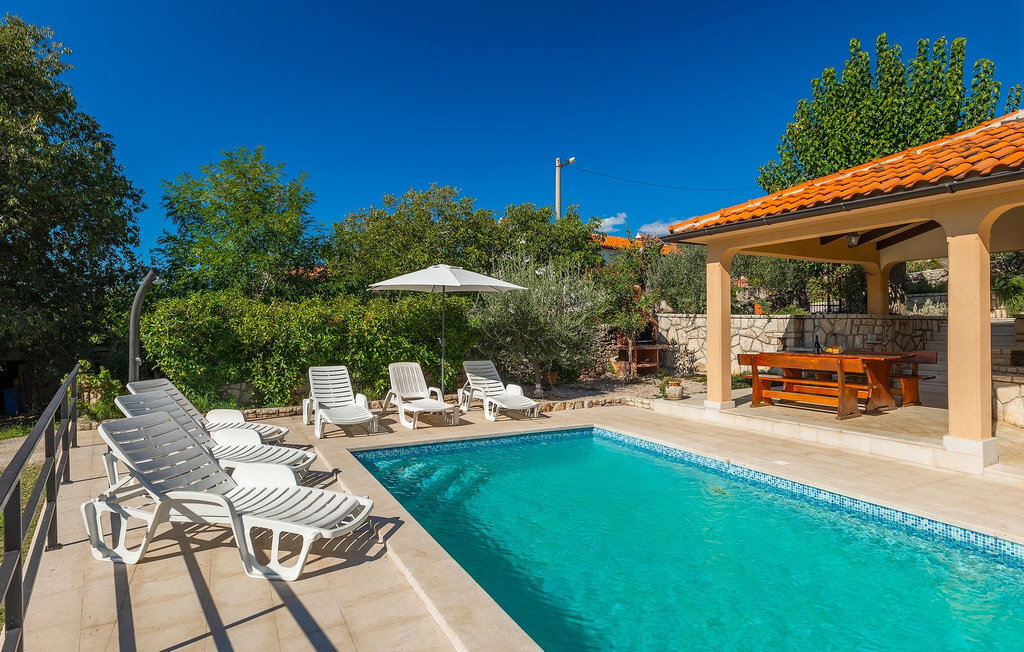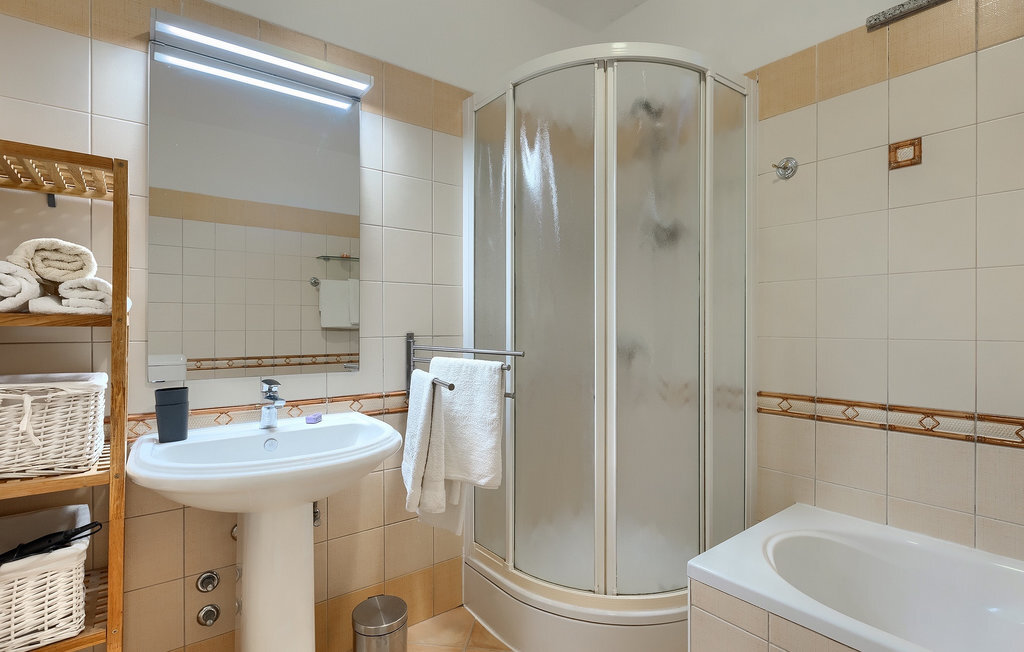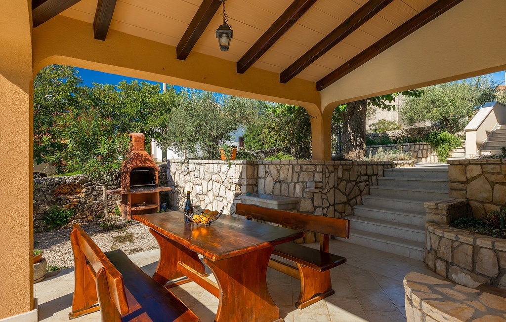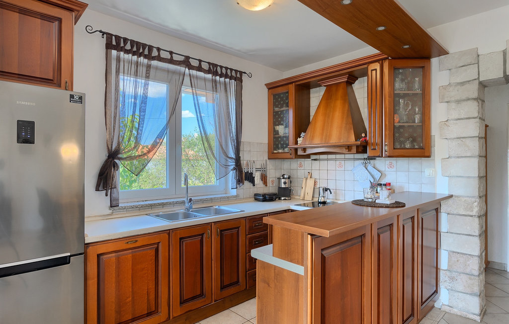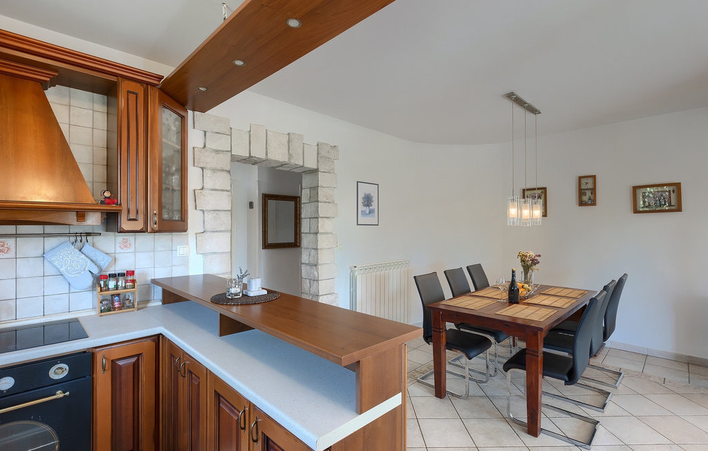Au rez-de-chaussée de la villa, une taverne traditionnelle avec cheminée et une salle de bain sont à disposition. La taverne vous invite à manger et à boire, afin que vous puissiez égayer vos proches avec des plats préparés sous le four (ispod peke). A l'étage, vous trouverez trois chambres, une salle de bain, une cuisine et une salle à manger ainsi qu'une terrasse couverte où vous pourrez vous détendre et vous reposer à l'ombre tout en contemplant la belle nature. La cuisine est entièrement équipée, ce qui vous permettra de préparer vos plats préférés ou des spécialités locales.