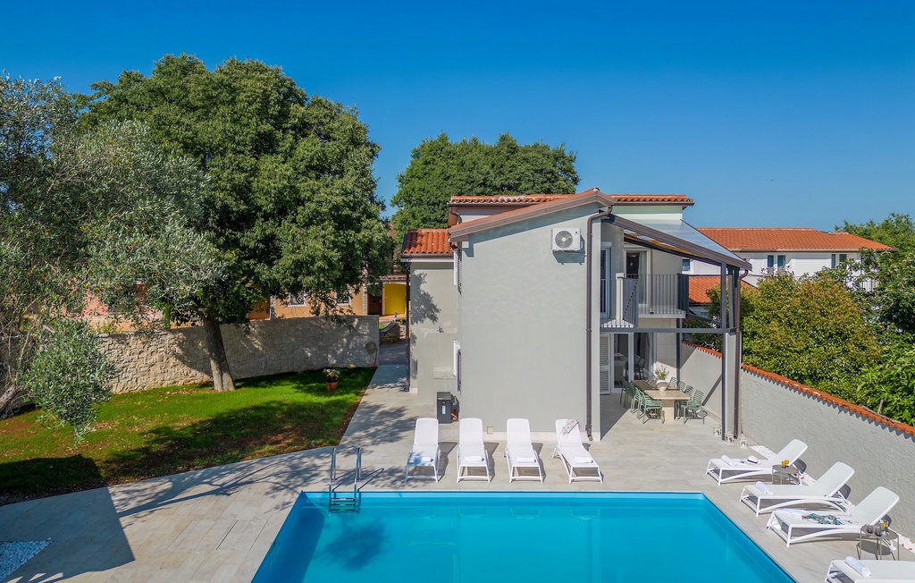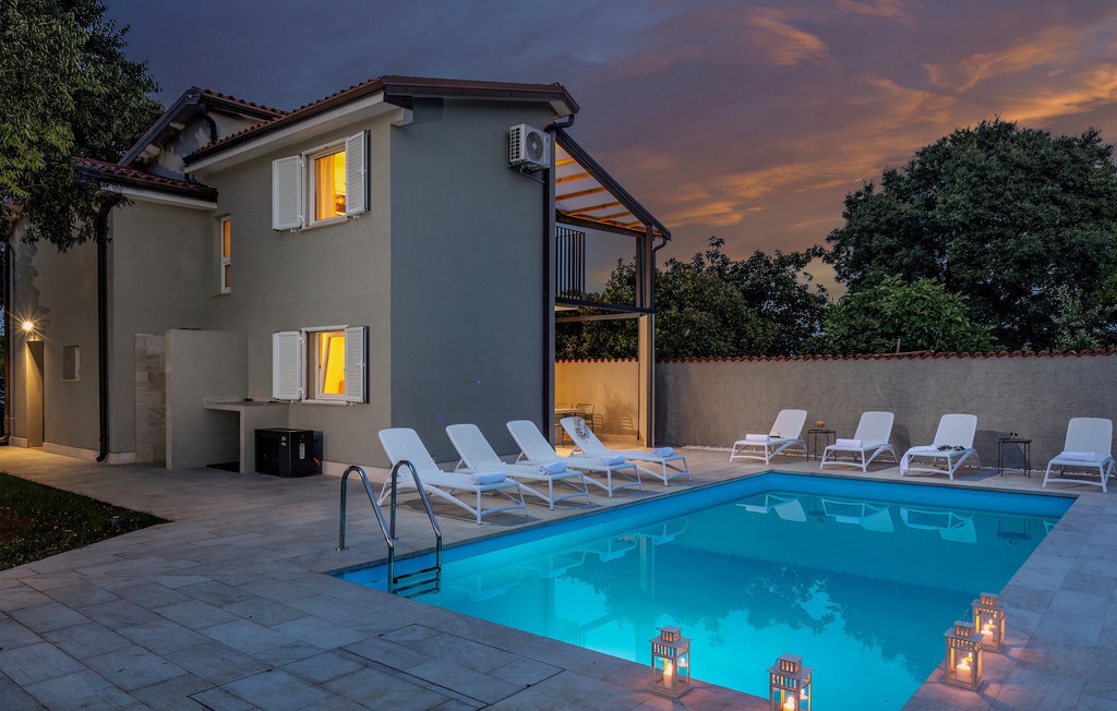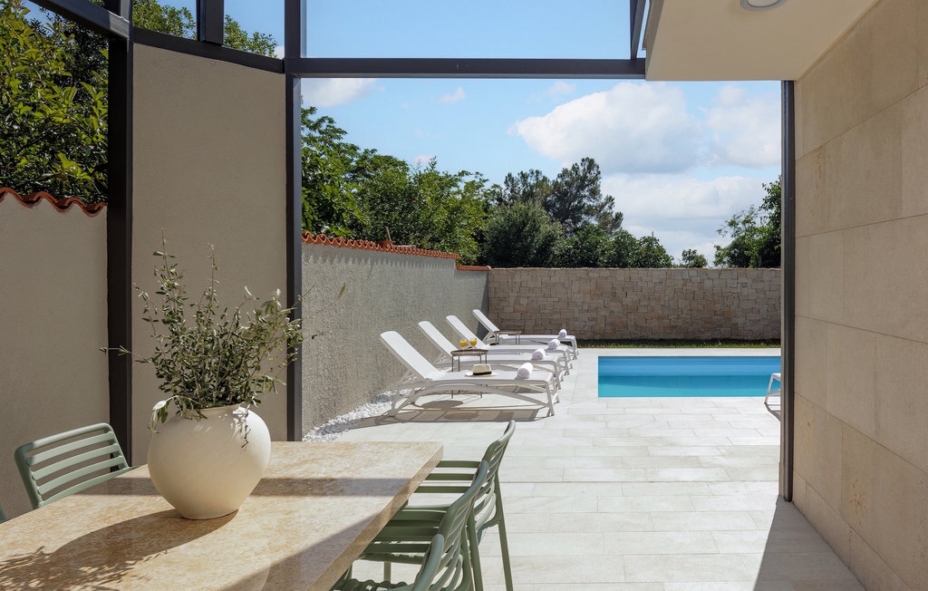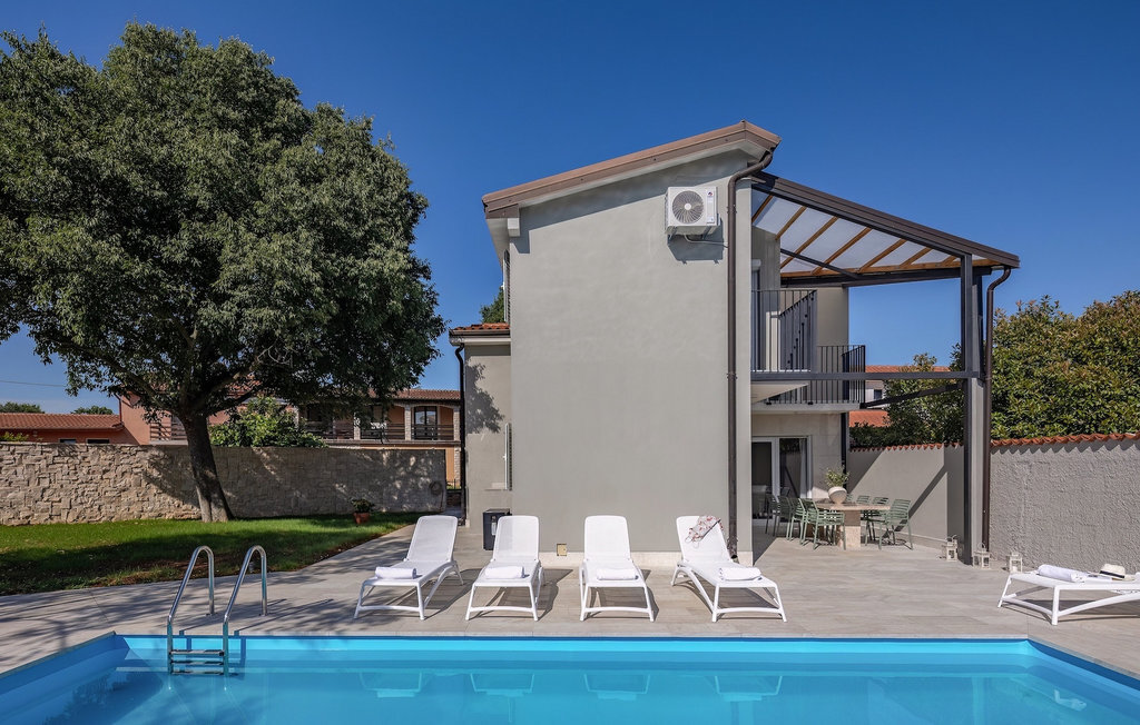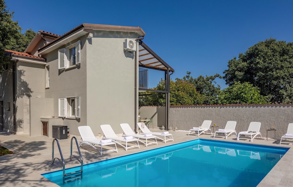 Bienvenue dans votre propre oasis de détente en Istrie ! Cette charmante villa vous offre des vacances inoubliables avec une piscine privée qui vous invite à vous détendre et à vous rafraîchir. Vous pourrez y profiter du soleil, faire des brasses rafraîchissantes et passer de merveilleux moments en famille ou entre amis. Le vaste espace extérieur invite à la détente, que ce soit sur l'une des confortables chaises longues ou dans les agréables zones de détente à l'ombre. La piscine privée sera le centre de vos vacances et vous offrira un rafraîchissement bienvenu lors des chaudes journées d'été. De plus, il y a un barbecue couvert et un coin repas, idéal pour les repas en plein air. À l'intérieur de la villa, une ambiance élégante et confortable vous attend. L'intérieur a été soigneusement conçu pour donner un sentiment de sérénité et de détente. La combinaison de couleurs neutres crée une ambiance calme et sophistiquée dans laquelle les hôtes peuvent se sentir à l'aise et se détendre. Au rez-de-chaussée de la villa, vous trouverez une cuisine entièrement équipée avec un coin repas, un salon spacieux avec accès à la terrasse, une chambre à coucher et une salle de bain. Au premier étage, trois autres chambres, deux salles de bains et deux terrasses offrant une vue magnifique sur les environs vous attendent. La Villa Pietra Cattunara vous offre une expérience incomparable et est l'endroit idéal pour passer des vacances de rêve. Découvrez la beauté de l'Istrie, explorez des villes et des plages pittoresques et revenez chaque jour dans votre oasis personnelle pour vous détendre et profiter du temps passé avec vos proches. Brtonigla est un charmant village niché au cœur de l'Istrie, une région pittoresque de Croatie. Connu pour son paysage paisible, sa riche histoire et ses excellents produits locaux, Brtonigla offre aux visiteurs une retraite paisible loin de l'agitation. Entourée de douces collines et de vignobles, Brtonigla est un paradis pour les amoureux de la nature et les passionnés de plein air. La région est célèbre pour ses paysages luxuriants, ses sentiers de randonnée et ses pistes cyclables pittoresques, ainsi que pour ses vues imprenables sur la mer Adriatique. L'exploration de la campagne permet aux visiteurs de s'immerger dans la beauté de l'Istrie et de profiter de l'air frais et de la tranquillité. Avec son paysage idyllique, son charme historique et ses délices culinaires, Brtonigla offre une expérience vraiment inoubliable. Que vous soyez à la recherche de détente, d'exploration culturelle ou d'aventures culinaires, ce joyau istrien a quelque chose à offrir à chacun. La température de la piscine chauffée dépend de facteurs extérieurs, y compris des conditions météorologiques, et la température de l'eau ne peut donc pas être garantie.