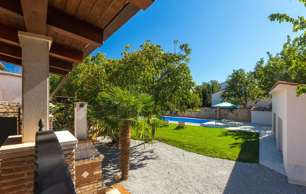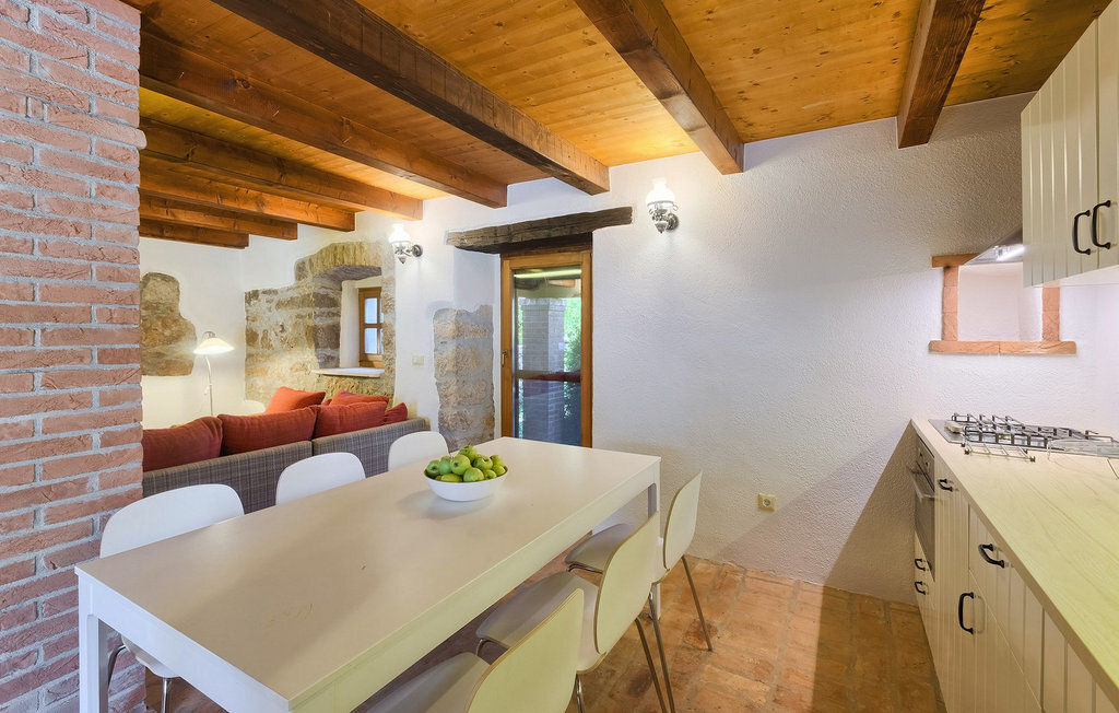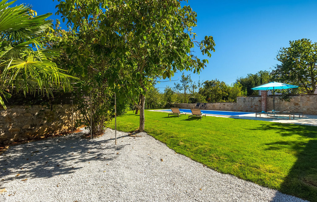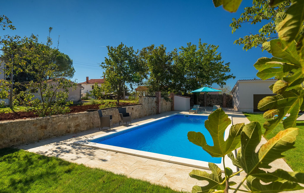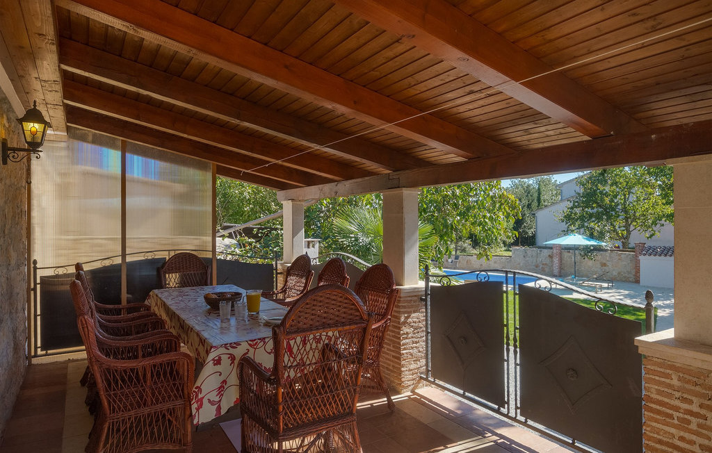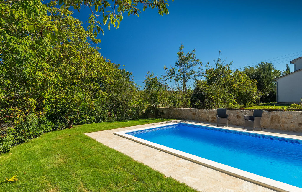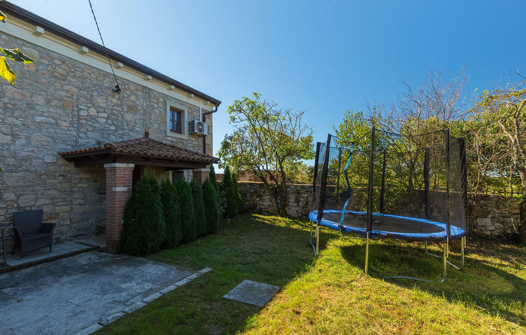La villa Casa Mira est située dans le quartier calme de Visnjan, à proximité des petites villes médiévales de l'Istrie centrale. La villa se trouve sur un terrain entièrement clôturé avec une magnifique piscine privée. Une caractéristique attrayante de cette villa est qu'elle se compose de deux appartements séparés, à l'étage et au rez-de-chaussée, chacun pour 4+1 personnes, ce qui est idéal pour deux familles ou deux groupes qui souhaitent passer leurs vacances ensemble, mais qui préfèrent l'intimité en ce qui concerne le logement. Les deux appartements ont leur propre entrée, une cuisine entièrement équipée, un salon, une salle de bain et deux chambres. À chaque étage, il y a une chambre avec un lit double et une chambre avec deux lits séparés. Des éléments en bois et en pierre confèrent à la maison une touche rustique particulière. L'étage supérieur dispose d'une véranda, tandis que la terrasse du rez-de-chaussée offre un coin repas en plein air et un barbecue au charbon de bois où vous pourrez préparer vos plats préférés. Sur la plus grande partie du jardin, orientée vers le sud, se trouve la piscine privée, tandis qu'une plus petite partie du jardin est réservée au trampoline, pour que les plus petits puissent s'amuser davantage.La Villa Casa Mira se trouve dans les environs de Vinjan, à environ 17 km de Pore. Dans les rues de la vieille ville de Vinjan, on retrouve l'esprit du riche patrimoine historique. Dans les environs de Vinjan, vous pourrez déguster de délicieux mets et des spécialités typiques de l'Istrie dans des tavernes istriennes. Vinjan est également connu pour son observatoire astronomique de renommée internationale et pour être l'un des derniers endroits d'Istrie où l'on trouve des bovins autochtones d'Istrie (bokarin). La magnifique ville de Pore est connue pour sa culture, son tourisme, ses sports et ses loisirs. Pendant votre séjour en Istrie, visitez la basilique d'Euphrasius (patrimoine culturel de l'Unesco) dans la vieille ville de Pore ou profitez simplement de la première plage. L'emplacement de la villa est le point de départ idéal pour découvrir les belles petites villes de l'Istrie centrale - Viinada, Motovun, Gronjan et bien d'autres.