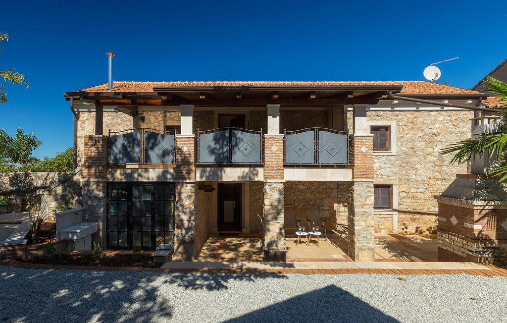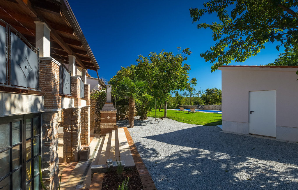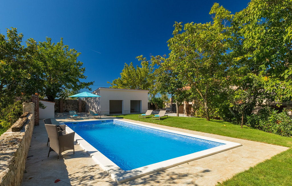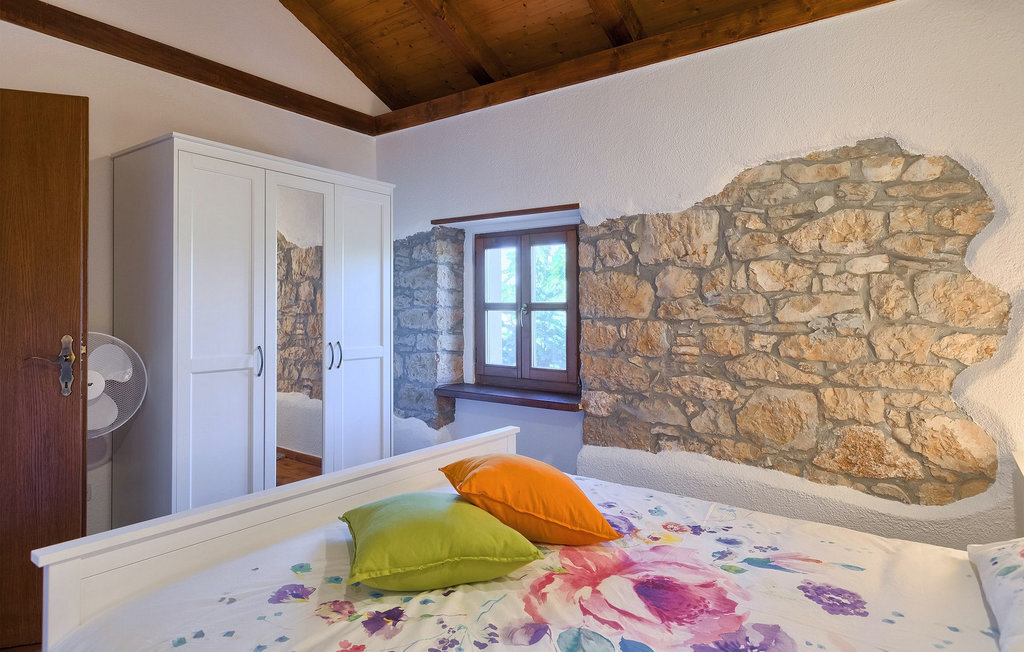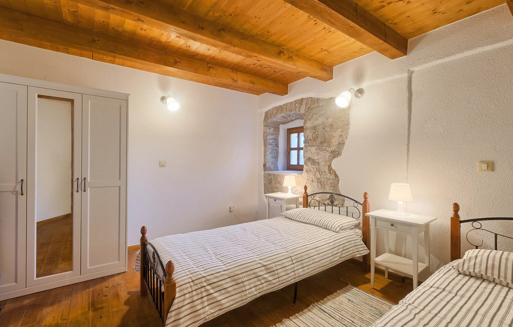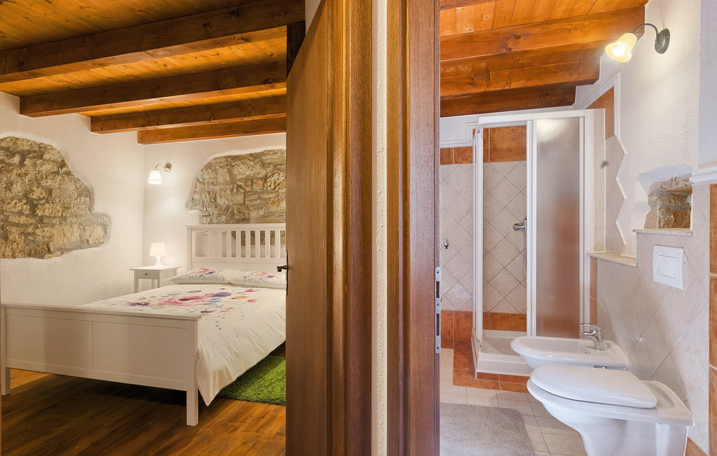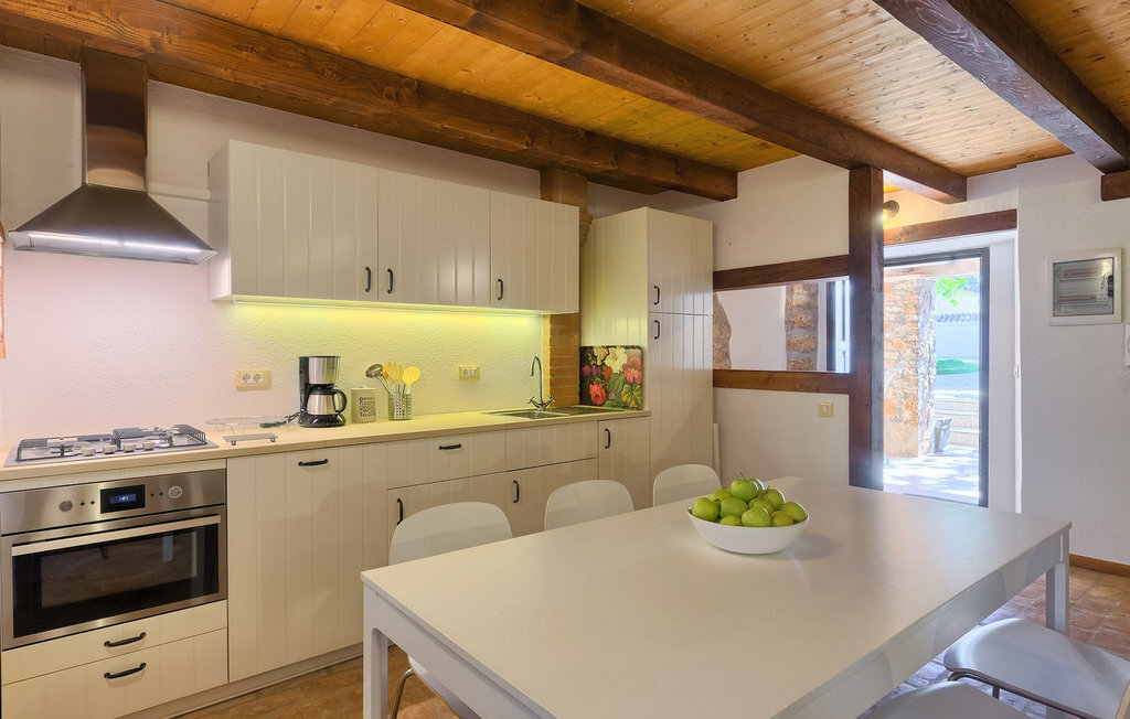 La villa Casa Mira est située dans le quartier calme de Visnjan, à proximité des petites villes médiévales de l'Istrie centrale. La villa se trouve sur un terrain entièrement clôturé avec une magnifique piscine privée. Une caractéristique attrayante de cette villa est qu'elle se compose de deux appartements séparés, à l'étage et au rez-de-chaussée, chacun pour 4+1 personnes, ce qui est idéal pour deux familles ou deux groupes qui souhaitent passer leurs vacances ensemble, mais qui préfèrent l'intimité en ce qui concerne le logement. Les deux appartements ont leur propre entrée, une cuisine entièrement équipée, un salon, une salle de bain et deux chambres. À chaque étage, il y a une chambre avec un lit double et une chambre avec deux lits séparés. Des éléments en bois et en pierre confèrent à la maison une touche rustique particulière. L'étage supérieur dispose d'une véranda, tandis que la terrasse du rez-de-chaussée offre un coin repas en plein air et un barbecue au charbon de bois où vous pourrez préparer vos plats préférés. Sur la plus grande partie du jardin, orientée vers le sud, se trouve la piscine privée, tandis qu'une plus petite partie du jardin est réservée au trampoline, pour que les plus petits puissent s'amuser davantage.La Villa Casa Mira se trouve dans les environs de Vinjan, à environ 17 km de Pore. Dans les rues de la vieille ville de Vinjan, on retrouve l'esprit du riche patrimoine historique. Dans les environs de Vinjan, vous pourrez déguster de délicieux mets et des spécialités typiques de l'Istrie dans des tavernes istriennes. Vinjan est également connu pour son observatoire astronomique de renommée internationale et pour être l'un des derniers endroits d'Istrie où l'on trouve des bovins autochtones d'Istrie (bokarin). La magnifique ville de Pore est connue pour sa culture, son tourisme, ses sports et ses loisirs. Pendant votre séjour en Istrie, visitez la basilique d'Euphrasius (patrimoine culturel de l'Unesco) dans la vieille ville de Pore ou profitez simplement de la première plage. L'emplacement de la villa est le point de départ idéal pour découvrir les belles petites villes de l'Istrie centrale - Viinada, Motovun, Gronjan et bien d'autres.