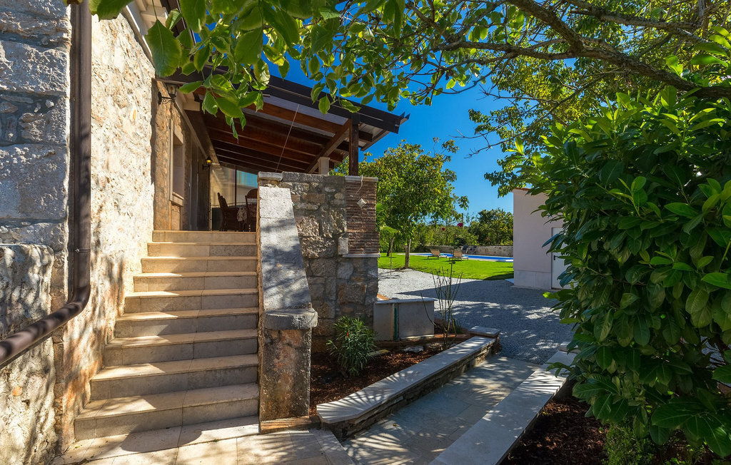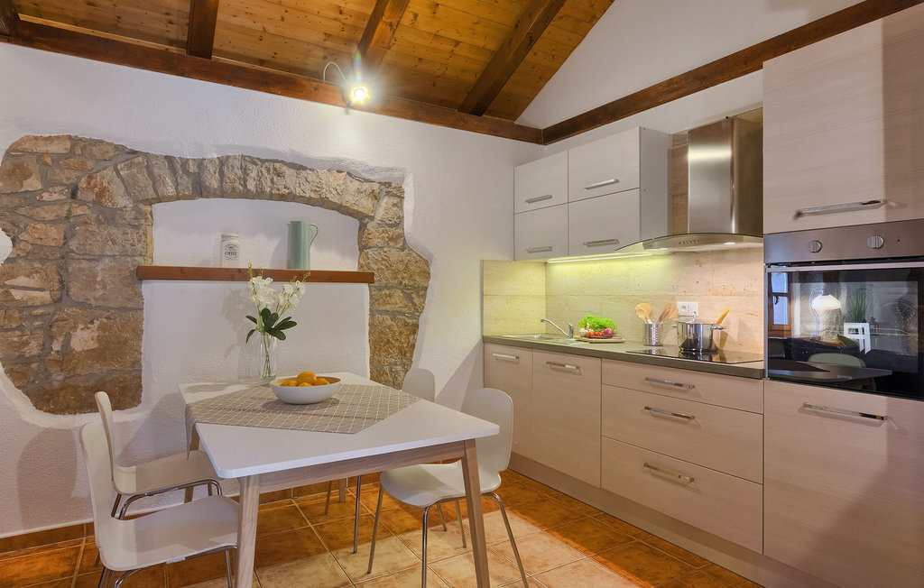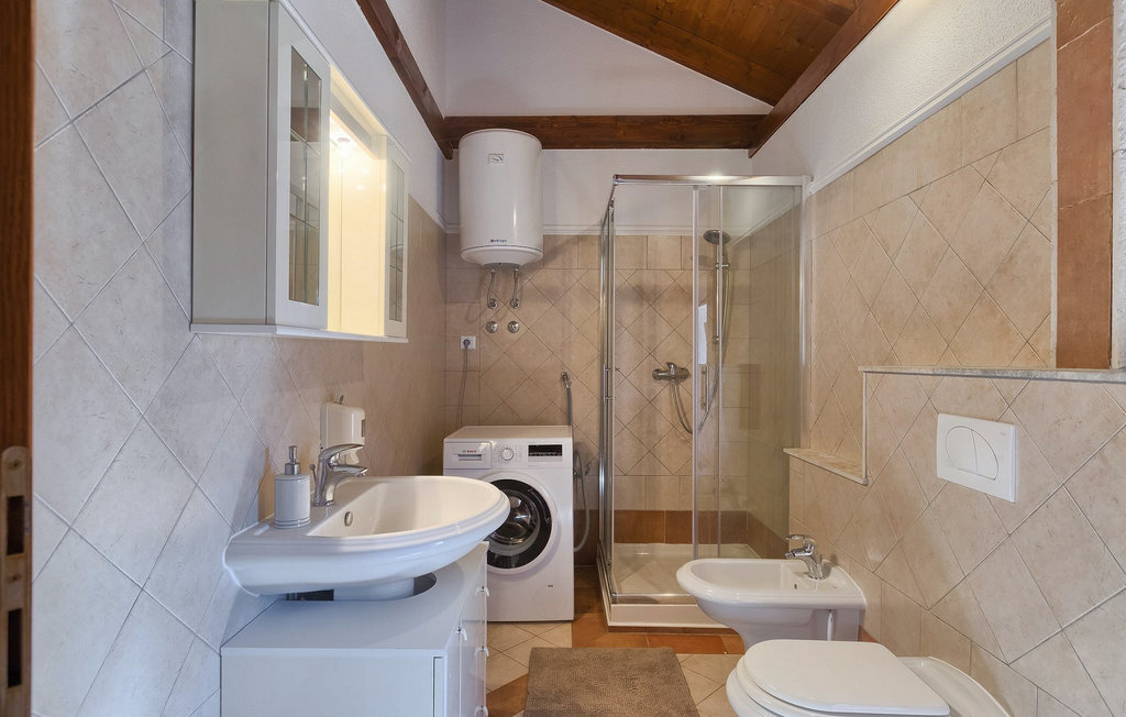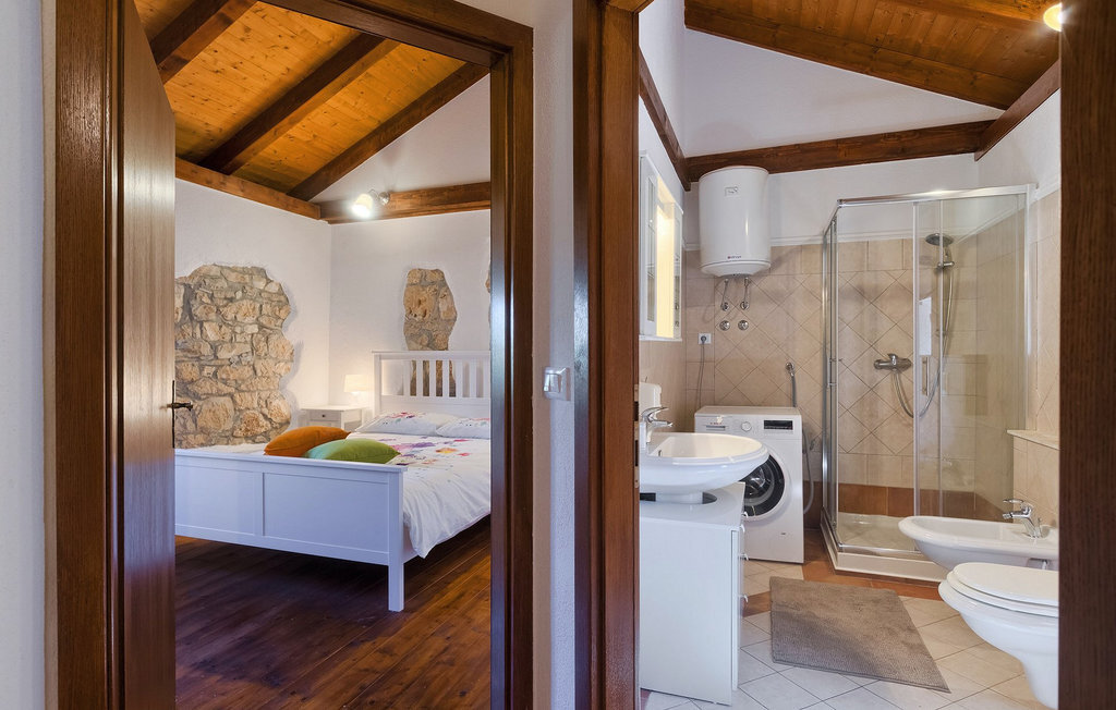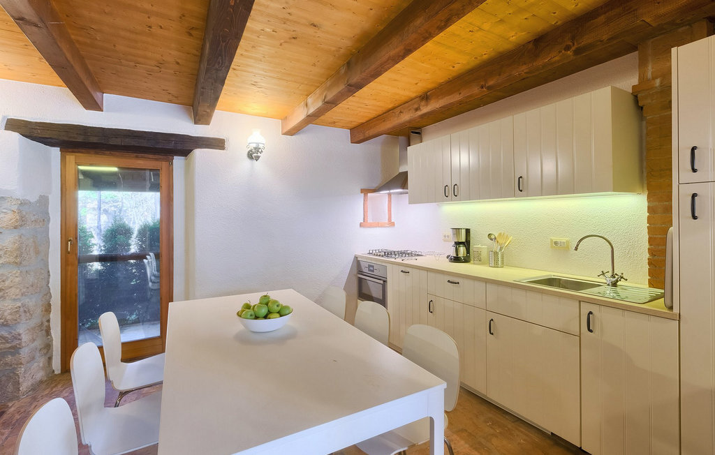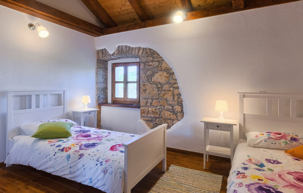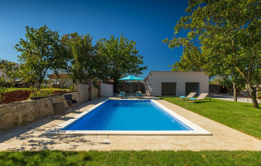 La villa Casa Mira est située dans le quartier calme de Visnjan, à proximité des petites villes médiévales de l'Istrie centrale. La villa se trouve sur un terrain entièrement clôturé avec une magnifique piscine privée. Une caractéristique attrayante de cette villa est qu'elle se compose de deux appartements séparés, à l'étage et au rez-de-chaussée, chacun pour 4+1 personnes, ce qui est idéal pour deux familles ou deux groupes qui souhaitent passer leurs vacances ensemble, mais qui préfèrent l'intimité en ce qui concerne le logement. Les deux appartements ont leur propre entrée, une cuisine entièrement équipée, un salon, une salle de bain et deux chambres. À chaque étage, il y a une chambre avec un lit double et une chambre avec deux lits séparés. Des éléments en bois et en pierre confèrent à la maison une touche rustique particulière. L'étage supérieur dispose d'une véranda, tandis que la terrasse du rez-de-chaussée offre un coin repas en plein air et un barbecue au charbon de bois où vous pourrez préparer vos plats préférés. Sur la plus grande partie du jardin, orientée vers le sud, se trouve la piscine privée, tandis qu'une plus petite partie du jardin est réservée au trampoline, pour que les plus petits puissent s'amuser davantage.La Villa Casa Mira se trouve dans les environs de Vinjan, à environ 17 km de Pore. Dans les rues de la vieille ville de Vinjan, on retrouve l'esprit du riche patrimoine historique. Dans les environs de Vinjan, vous pourrez déguster de délicieux mets et des spécialités typiques de l'Istrie dans des tavernes istriennes. Vinjan est également connu pour son observatoire astronomique de renommée internationale et pour être l'un des derniers endroits d'Istrie où l'on trouve des bovins autochtones d'Istrie (bokarin). La magnifique ville de Pore est connue pour sa culture, son tourisme, ses sports et ses loisirs. Pendant votre séjour en Istrie, visitez la basilique d'Euphrasius (patrimoine culturel de l'Unesco) dans la vieille ville de Pore ou profitez simplement de la première plage. L'emplacement de la villa est le point de départ idéal pour découvrir les belles petites villes de l'Istrie centrale - Viinada, Motovun, Gronjan et bien d'autres.