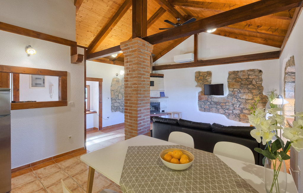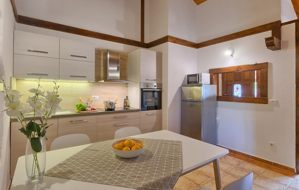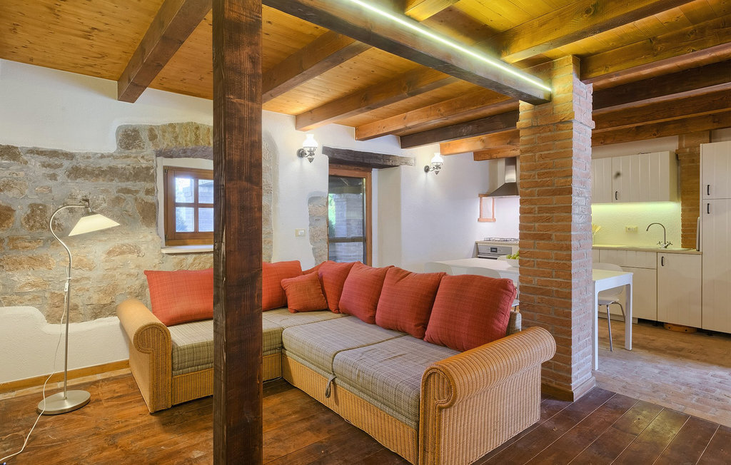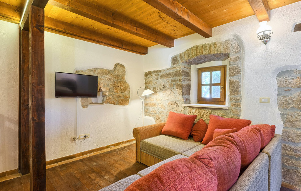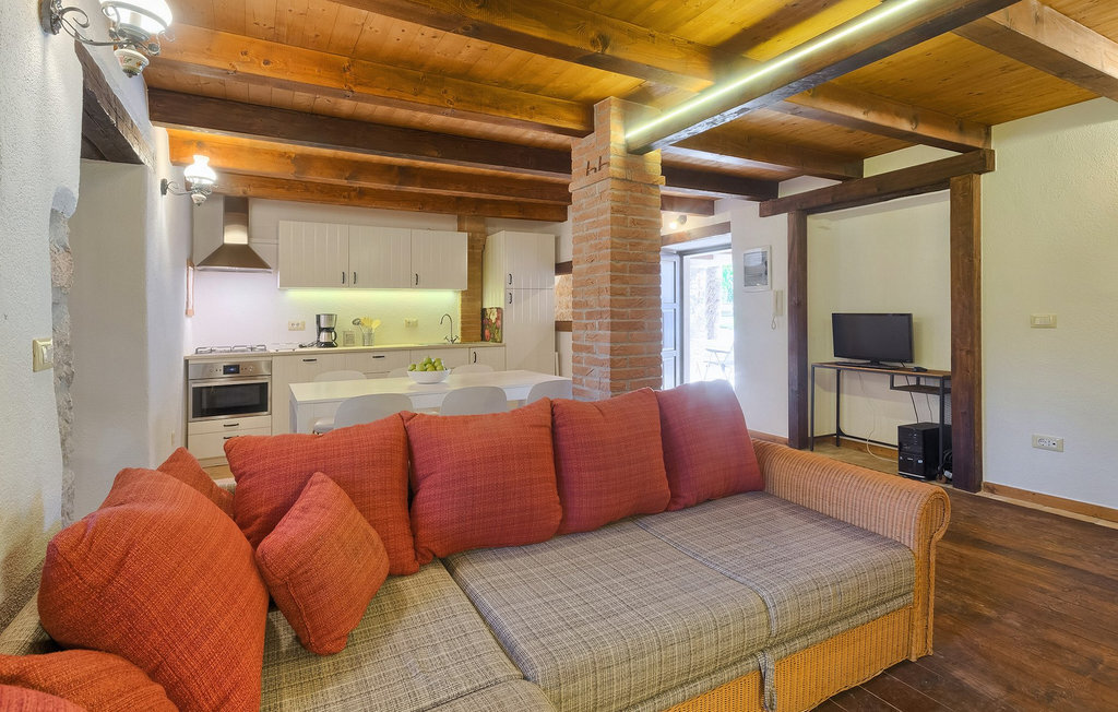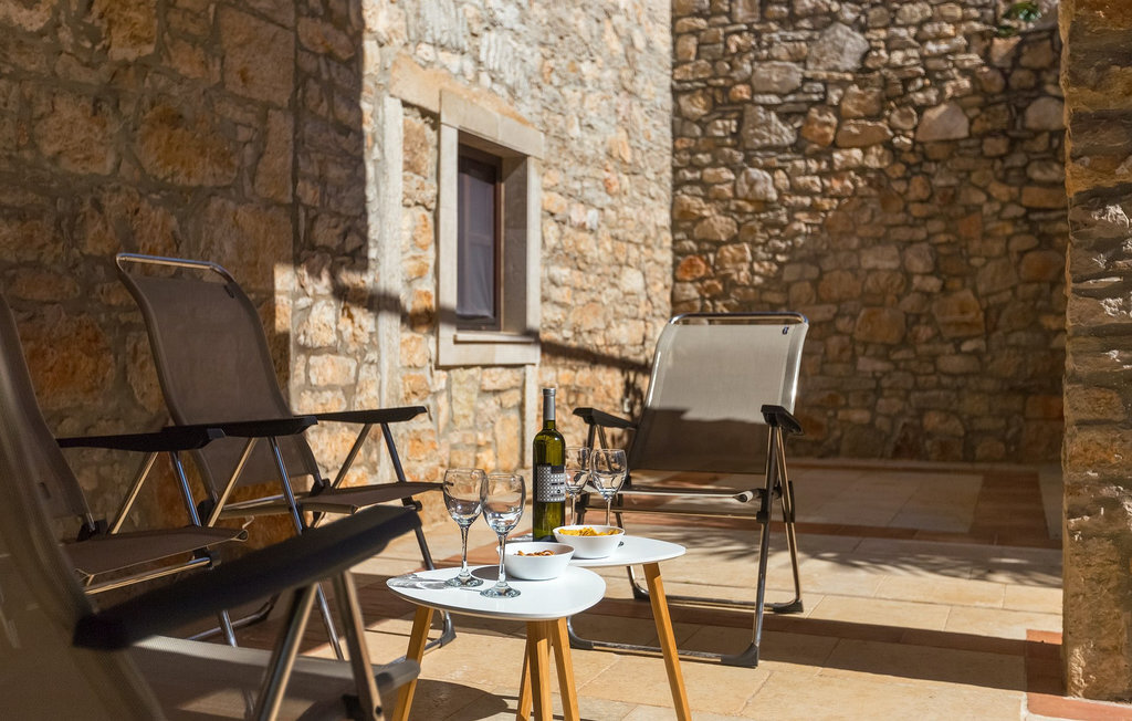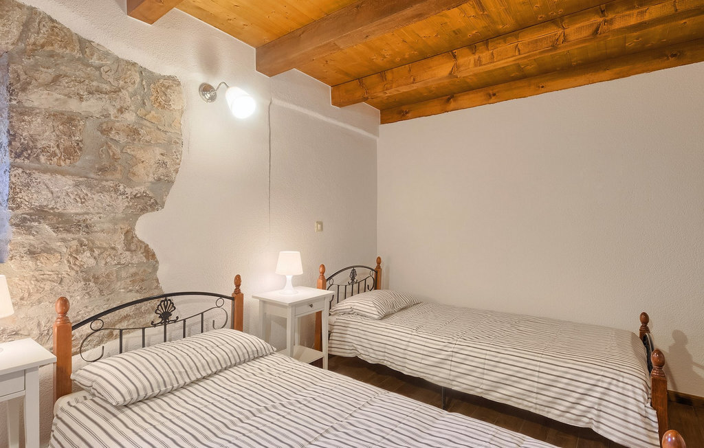 La villa Casa Mira est située dans le quartier calme de Visnjan, à proximité des petites villes médiévales de l'Istrie centrale. La villa se trouve sur un terrain entièrement clôturé avec une magnifique piscine privée. Une caractéristique attrayante de cette villa est qu'elle se compose de deux appartements séparés, à l'étage et au rez-de-chaussée, chacun pour 4+1 personnes, ce qui est idéal pour deux familles ou deux groupes qui souhaitent passer leurs vacances ensemble, mais qui préfèrent l'intimité en ce qui concerne le logement. Les deux appartements ont leur propre entrée, une cuisine entièrement équipée, un salon, une salle de bain et deux chambres. À chaque étage, il y a une chambre avec un lit double et une chambre avec deux lits séparés. Des éléments en bois et en pierre confèrent à la maison une touche rustique particulière. L'étage supérieur dispose d'une véranda, tandis que la terrasse du rez-de-chaussée offre un coin repas en plein air et un barbecue au charbon de bois où vous pourrez préparer vos plats préférés. Sur la plus grande partie du jardin, orientée vers le sud, se trouve la piscine privée, tandis qu'une plus petite partie du jardin est réservée au trampoline, pour que les plus petits puissent s'amuser davantage.La Villa Casa Mira se trouve dans les environs de Vinjan, à environ 17 km de Pore. Dans les rues de la vieille ville de Vinjan, on retrouve l'esprit du riche patrimoine historique. Dans les environs de Vinjan, vous pourrez déguster de délicieux mets et des spécialités typiques de l'Istrie dans des tavernes istriennes. Vinjan est également connu pour son observatoire astronomique de renommée internationale et pour être l'un des derniers endroits d'Istrie où l'on trouve des bovins autochtones d'Istrie (bokarin). La magnifique ville de Pore est connue pour sa culture, son tourisme, ses sports et ses loisirs. Pendant votre séjour en Istrie, visitez la basilique d'Euphrasius (patrimoine culturel de l'Unesco) dans la vieille ville de Pore ou profitez simplement de la première plage. L'emplacement de la villa est le point de départ idéal pour découvrir les belles petites villes de l'Istrie centrale - Viinada, Motovun, Gronjan et bien d'autres.