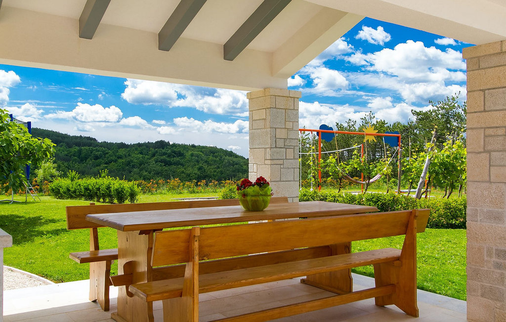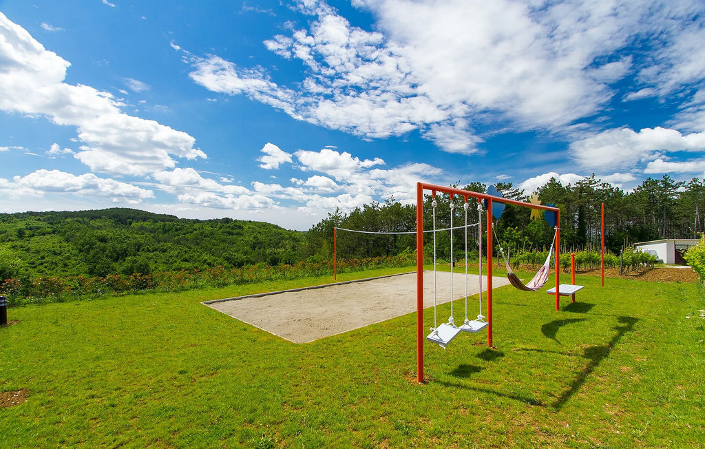 L'espace extérieur se distingue par sa magnifique piscine avec chaises longues. Rafraîchissez-vous dans la piscine, installez-vous dans l'une des chaises longues ou dans le hamac et détendez-vous. La villa vous propose de nombreuses activités supplémentaires sur place. Vos enfants peuvent jouer sur le trampoline ou sur l'aire de jeux pendant que vous préparez de délicieux plats sur le barbecue au charbon de bois. La grande salle à manger couverte permet d'organiser des dîners d'été inoubliables en plein air. Savourez de délicieux repas en famille et offrez-vous une boisson fraîche le soirLa villa est située dans le village de Motovunski Novaki en Istrie centrale, l'une des plus belles régions au monde. À une courte distance en voiture de la villa, avec vue sur la vallée de la rivière Mirna, se trouve certainement la plus célèbre et la plus belle ville médiévale istrienne, Motovun. Cette charmante ville de montagne est l'un des symboles les plus caractéristiques du paysage istrien. Des fêtes locales traditionnelles ainsi qu'un festival international de cinéma renommé y sont organisés et donnent vie à cette petite ville paisible. Les principales attractions touristiques de la côte comme Umag, Novigrad et Porec sont rapidement accessibles. Ces villes sont connues pour leurs magnifiques plages ainsi que pour une multitude d'activités de loisirs. La ville de Porec, avec son riche patrimoine culturel, est vraiment un must pour tous ceux qui s'intéressent à la culture et à l'histoire. La basilique d'Euphrasius, située dans la vieille ville, est reconnue comme un site du patrimoine mondial de l'UNESCO.